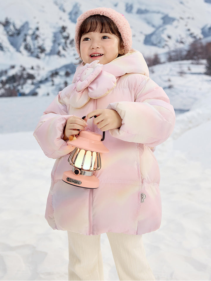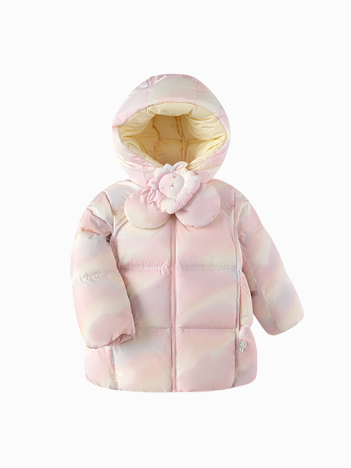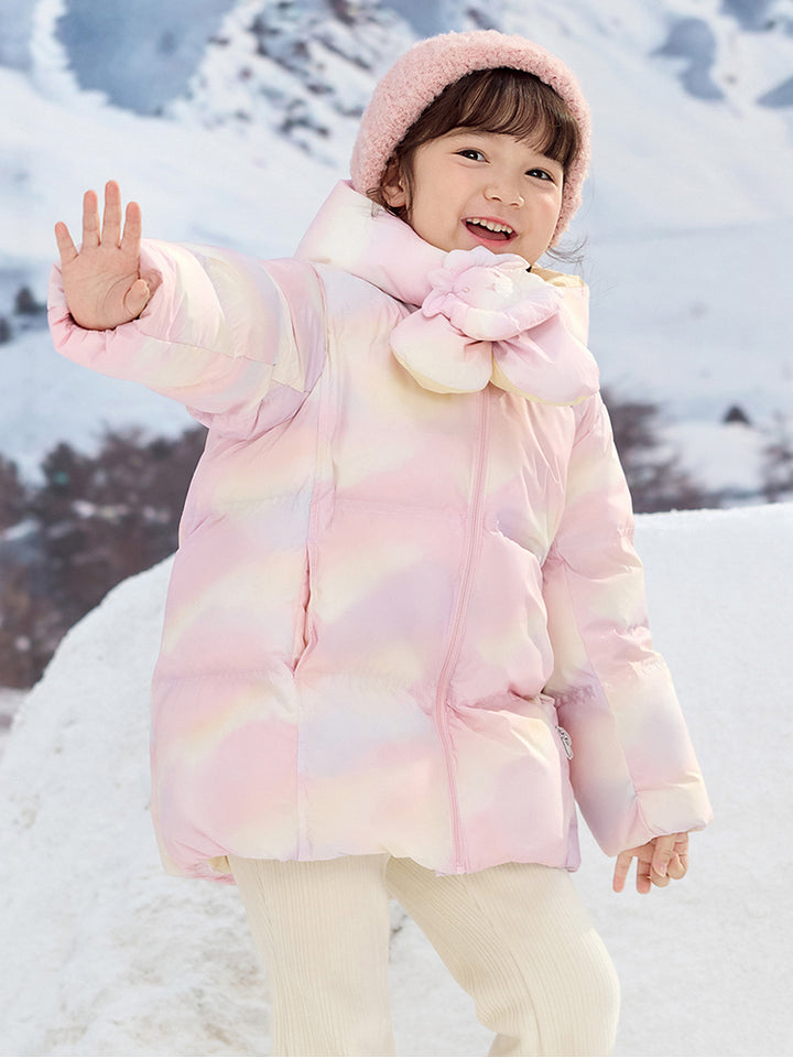 معطف شتوي بأكمام طويلة، مزين بنمط ملون على كامل التصميم، يأتي بسحاب للإغلاق، جيوب أمامية وياقة هودي متصلة