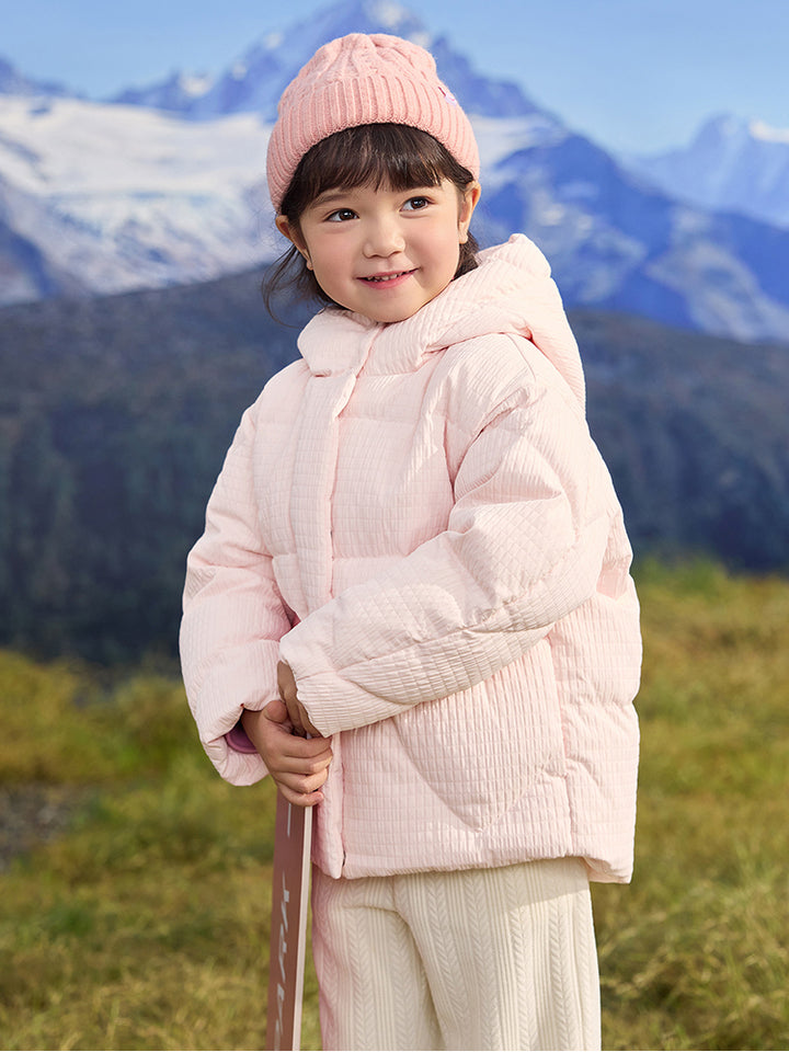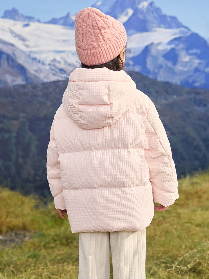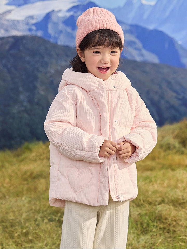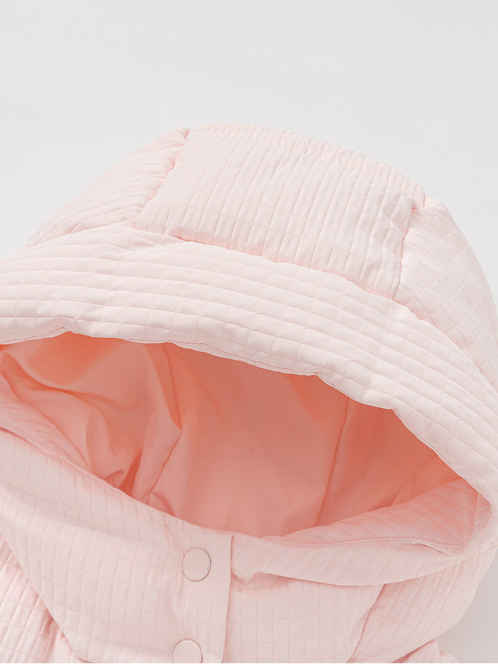 معطف شتوي بأكمام طويلة، بنط لون موحد مزين بخامة نسيج منقوشة، يأتي بسحاب للإغلاق، جيوب أمامية وياقة هودي متصلة