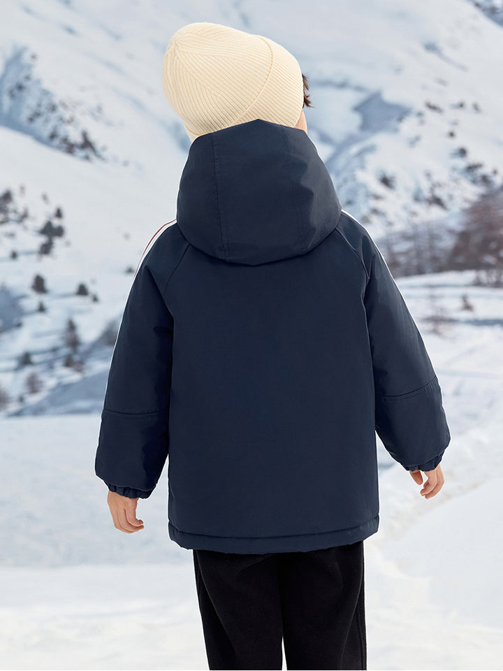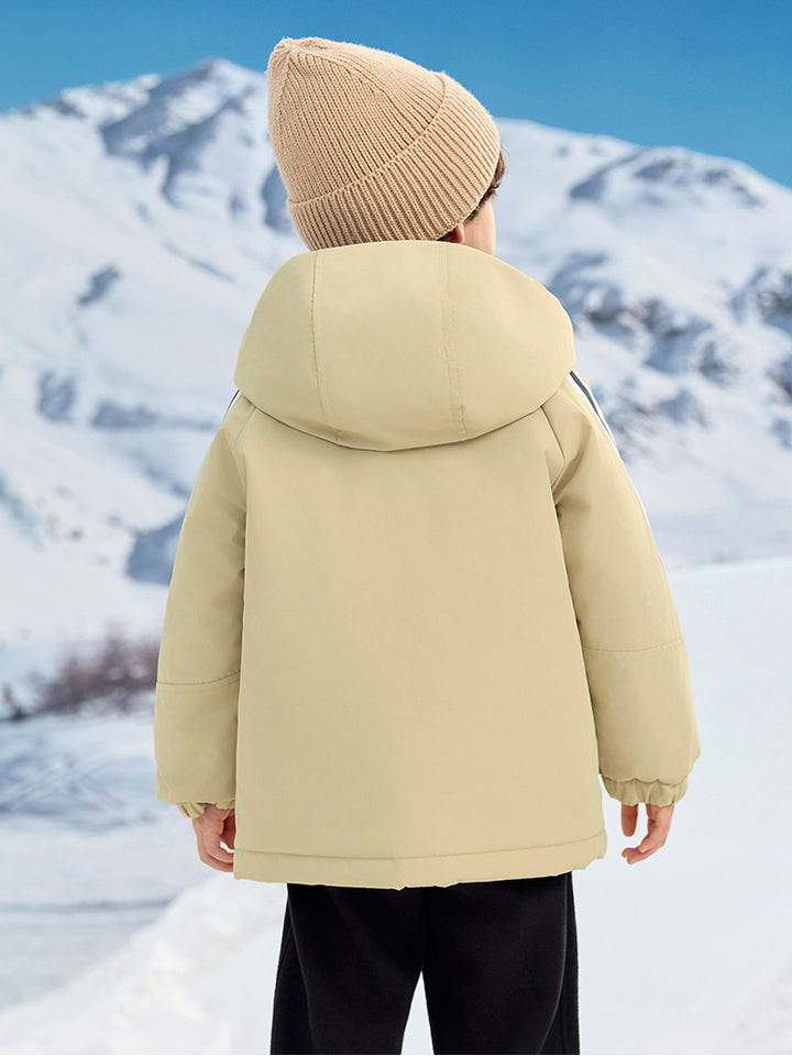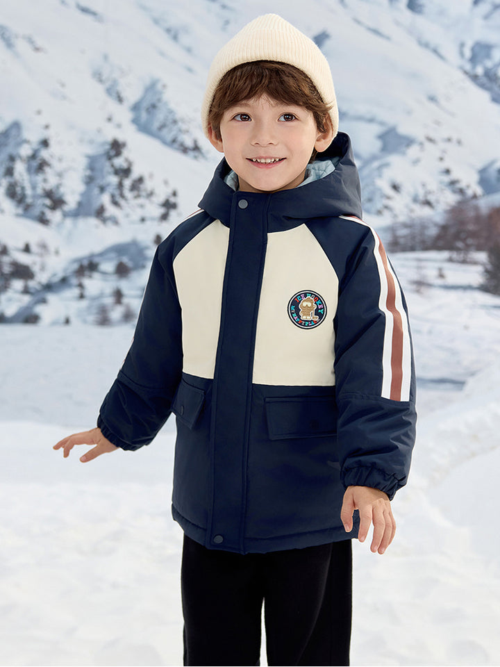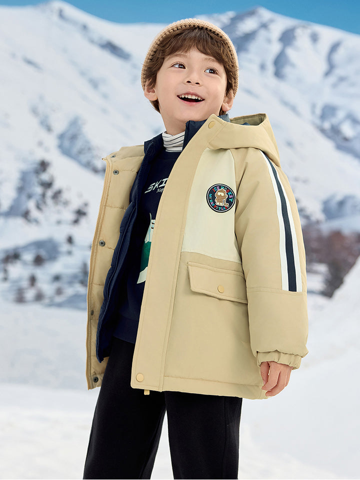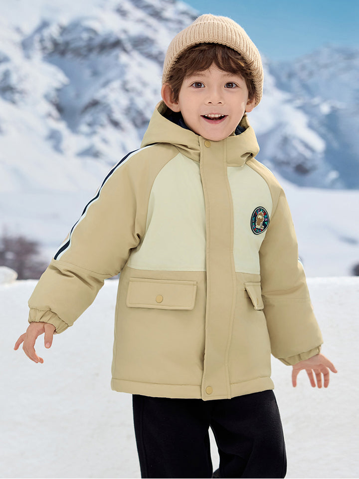 طقم جاكيت شتوي مكون من قطعتين، جاكيت داخلي بأكمام طويلة وخامة مبطنة بلون موحد، يأتي بسحاب للإغلاق من الجهة الأمامية وبياقة مرتفعة، وجاكيت شتوي خارجي بأكمام طويلة بستايل ذو تفاصيل ثنائية اللون، يأتي بسحاب أمامي للإغلاق، جيوب من الجهة الأمامية وبياقة هودي متصلة