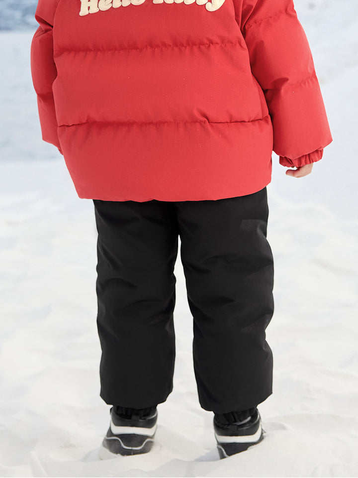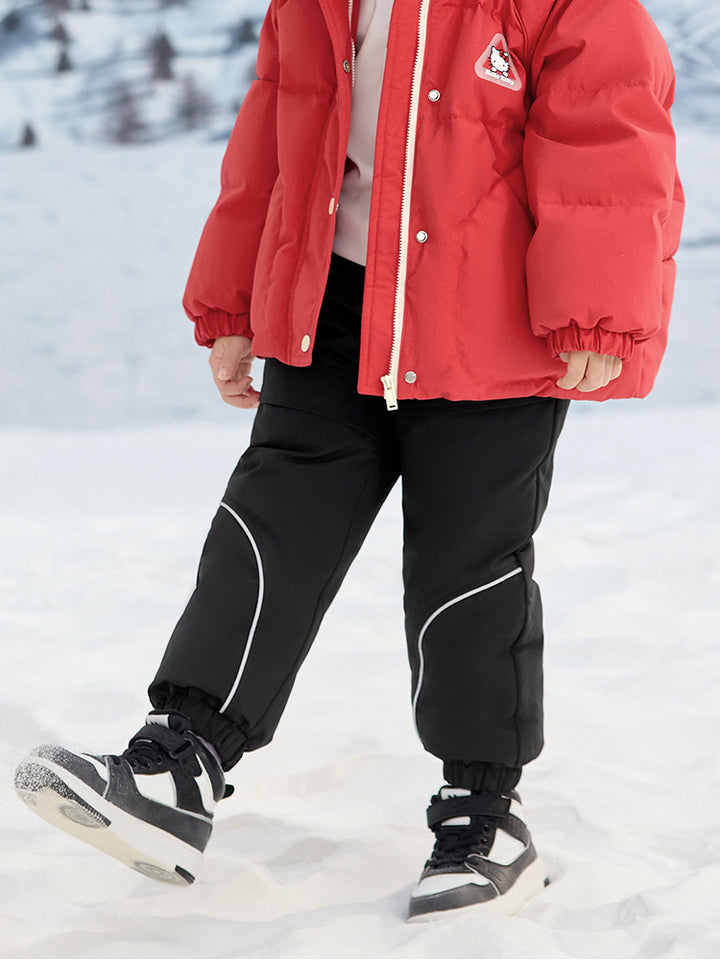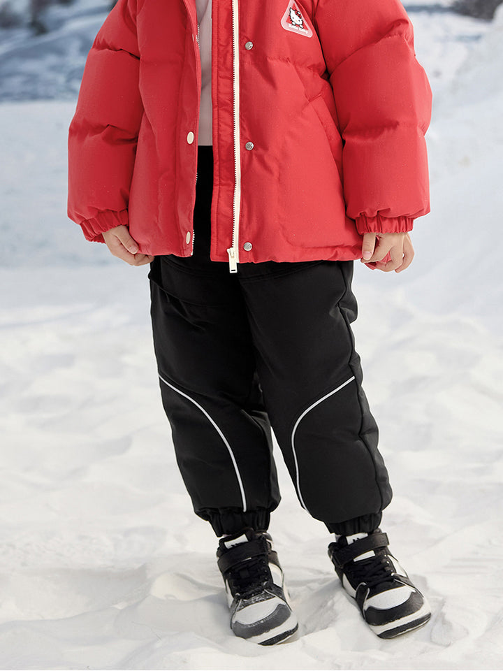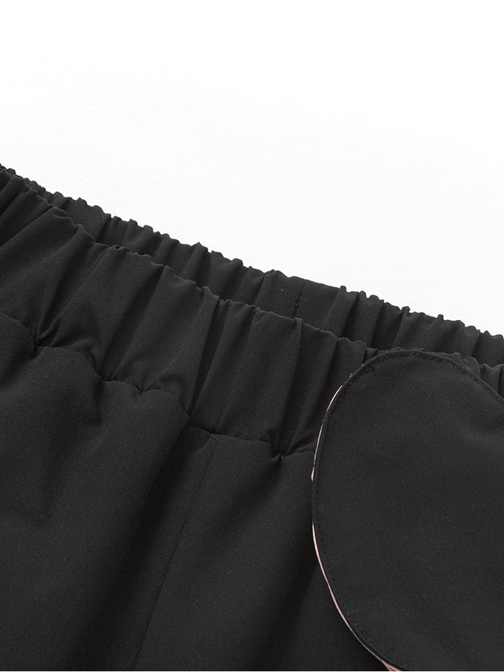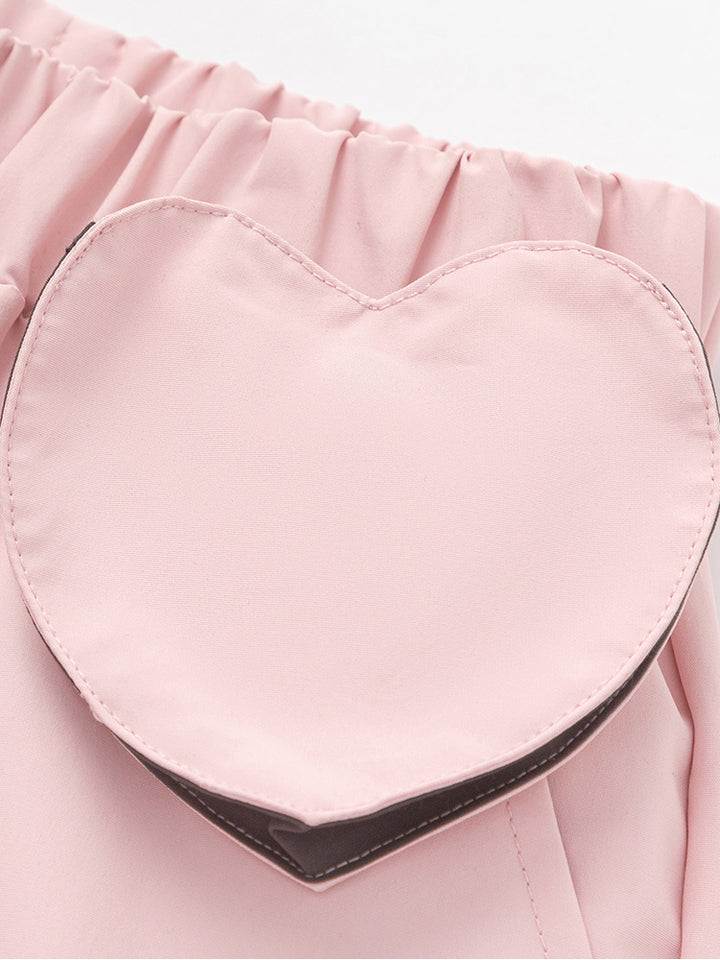 بنطلون كاجوال بنمط ذو لون موحد، مزين بخطوط أسفل الساقين وجيب على الخصر على شكل قلب، يأتي بجيوب أمامية وخصر مطاطي مريح