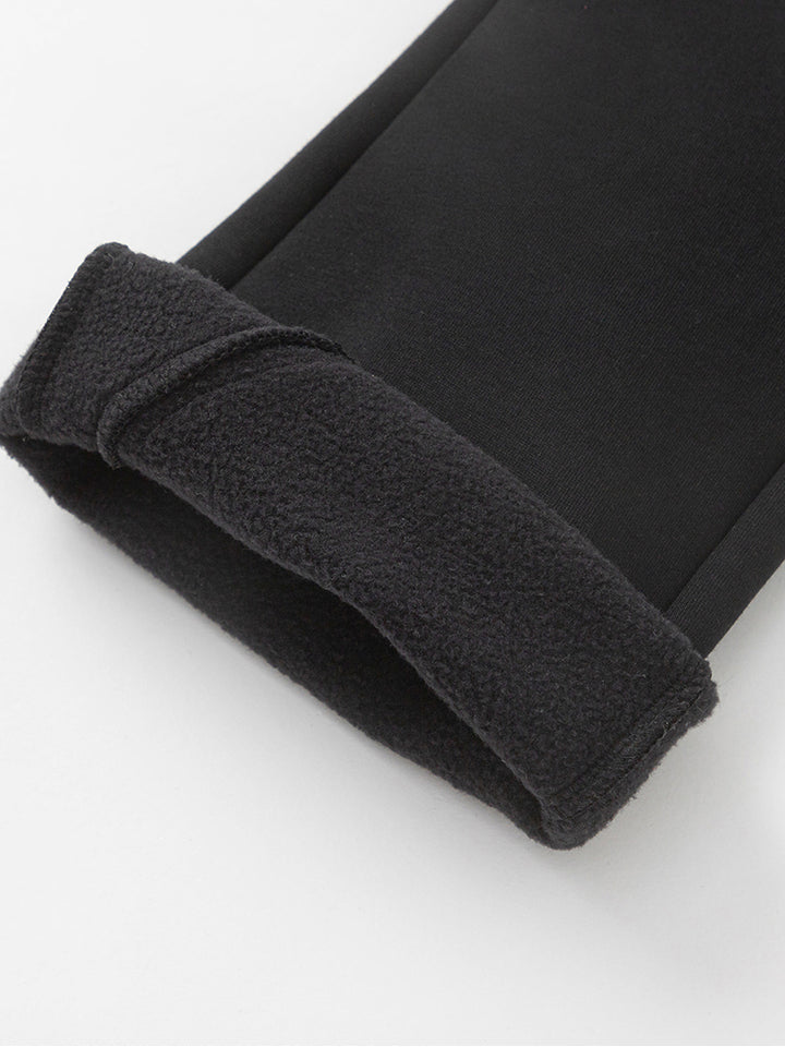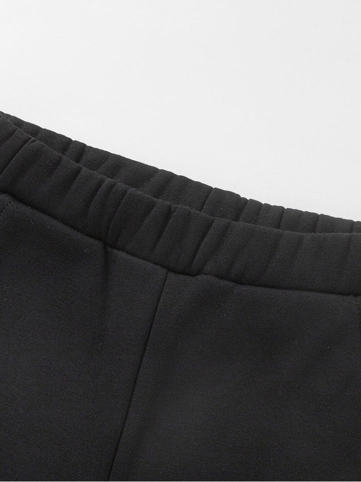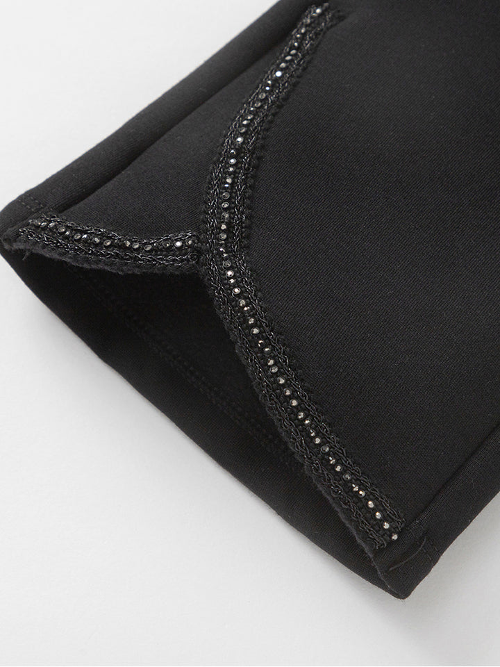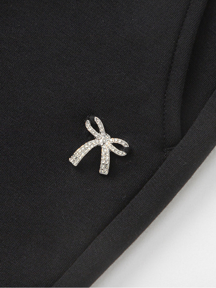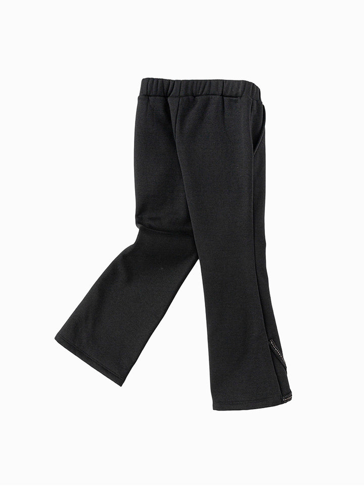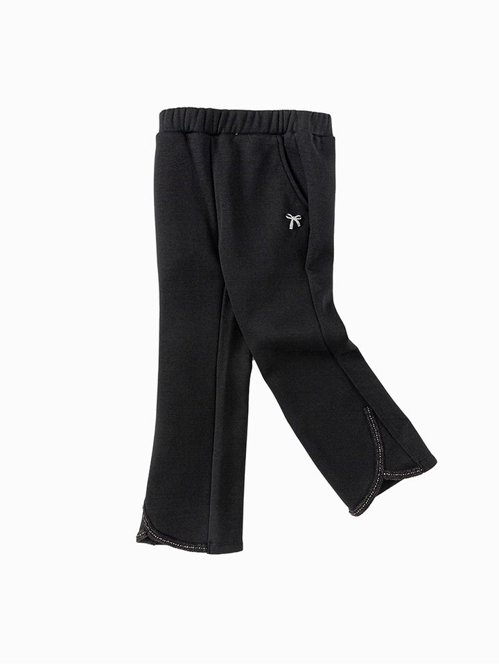 بنطلون كاجوال بنمط ذو لون موحد، مزين بتفاصيل حجارة مرصعة أسفل الساقين، يأتي بجيوب أمامية وبخصر مطاطي مريح