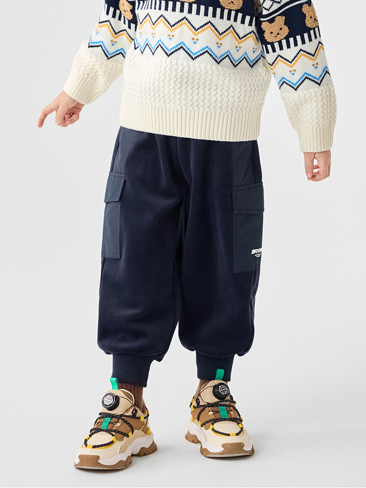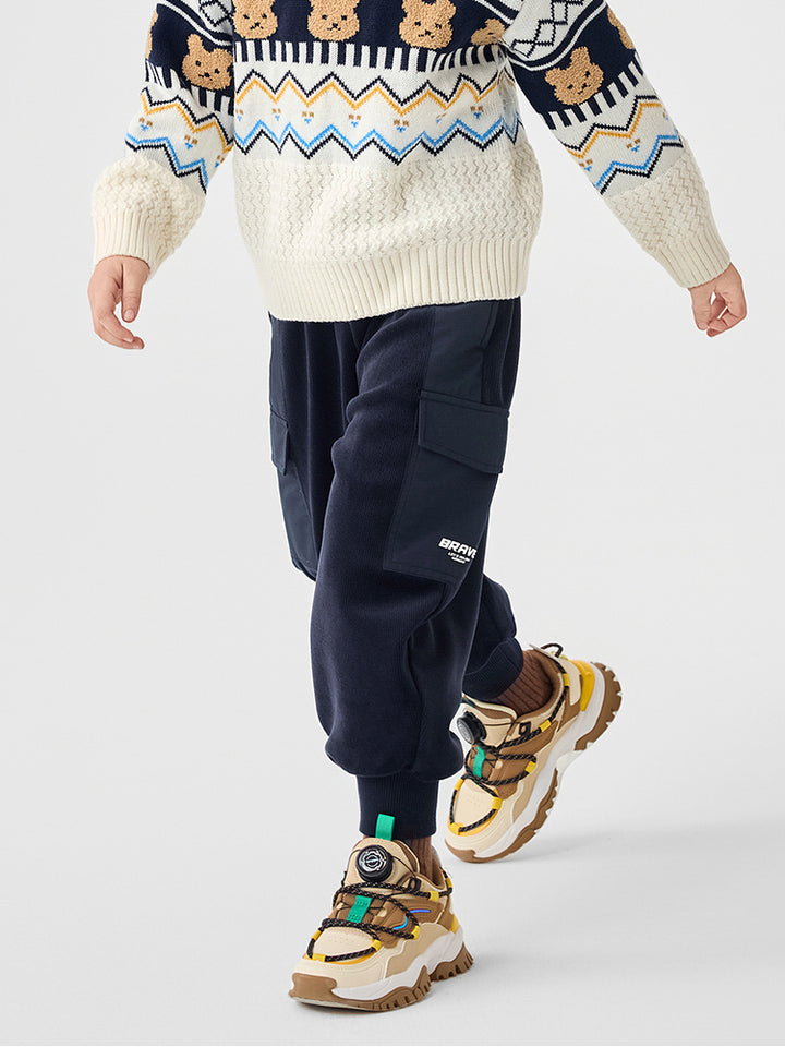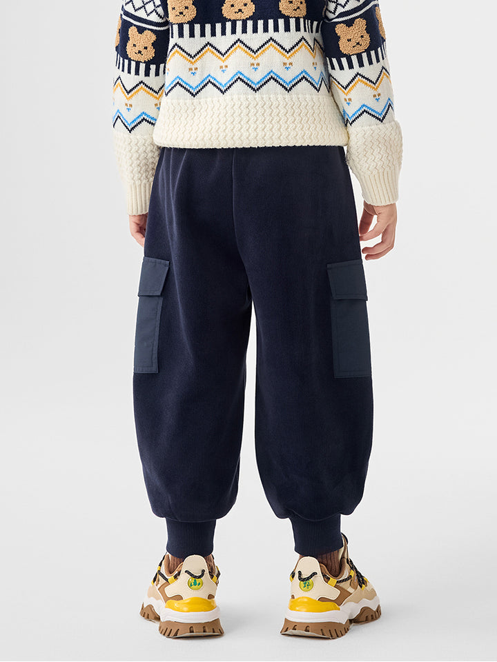 بنطلون رياضي كاجوال بنمط ذو لون موحد، يأتي بجيوب أمامية، جيوب قلاب متباينة على جانب الساقين وخصر مطاطي مريح