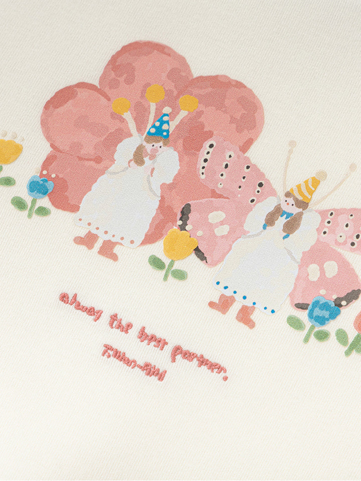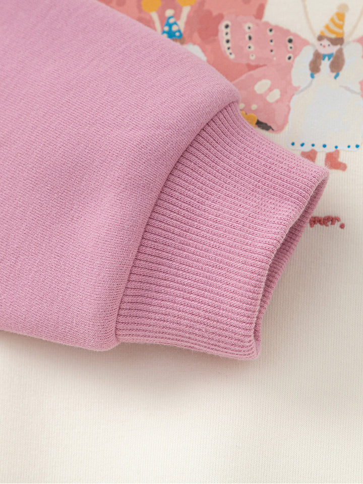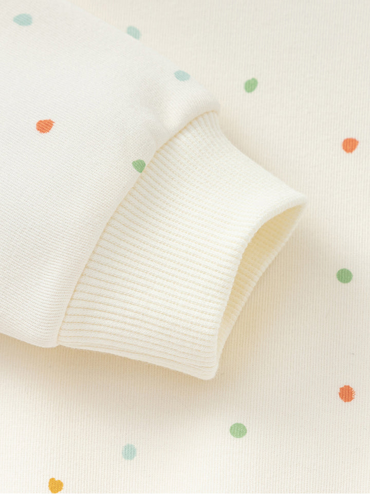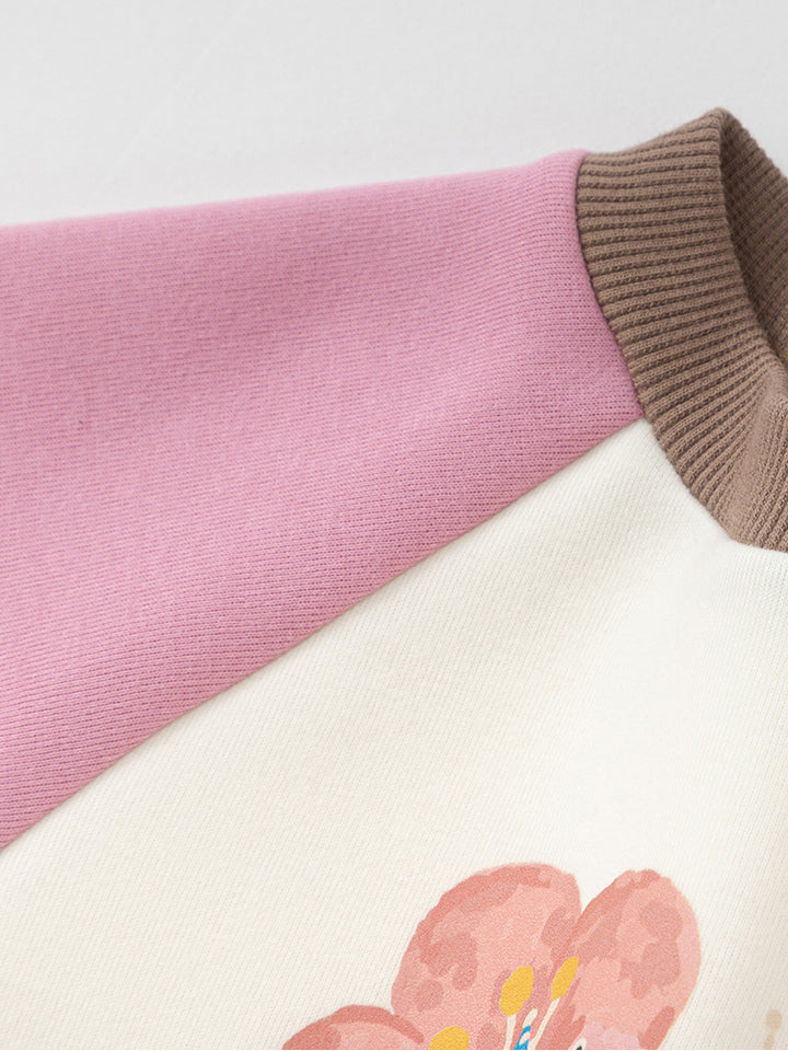 بلوزة سويت شيرت بأكمام طويلة، مزينة بنمط طبعات، وتأتي بياقة مدورة الشكل
