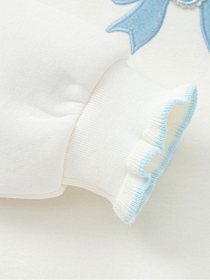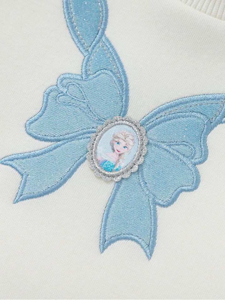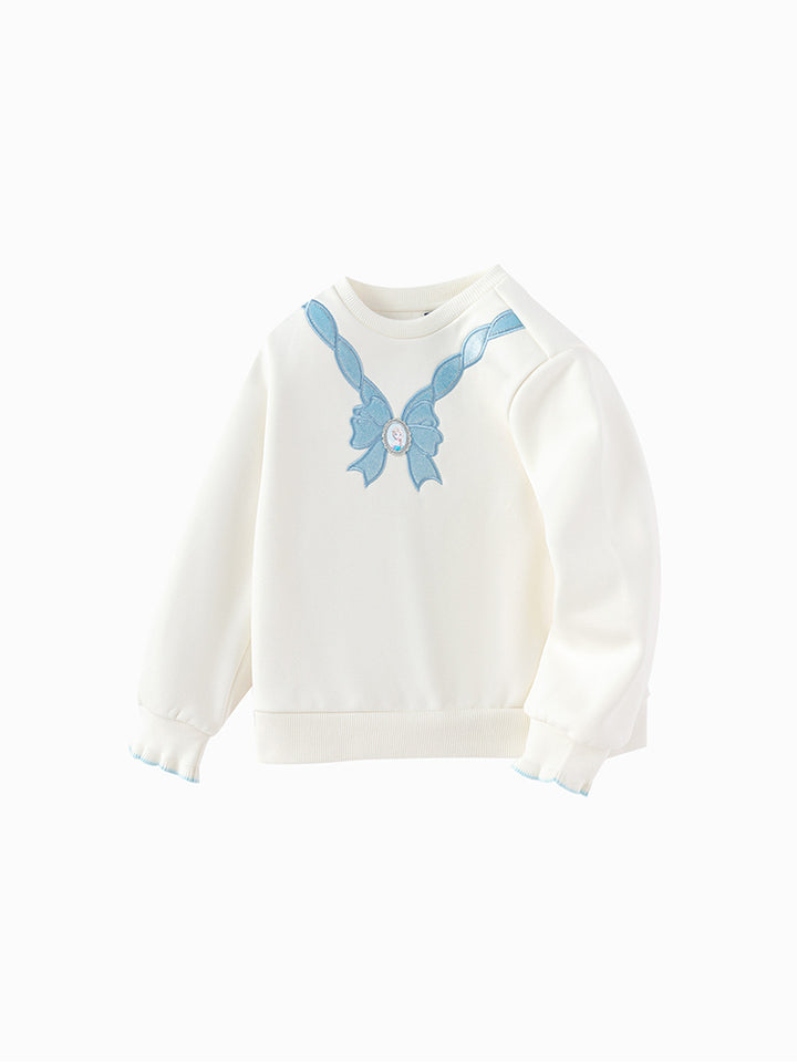 بلوزة سويت شيرت بأكمام طويلة، مزينة بتطريز من الجهة الأمامية، وتأتي بياقة مدورة الشكل