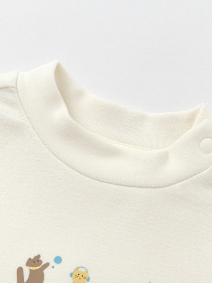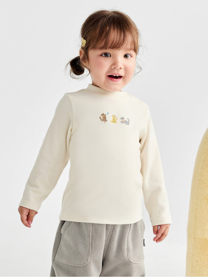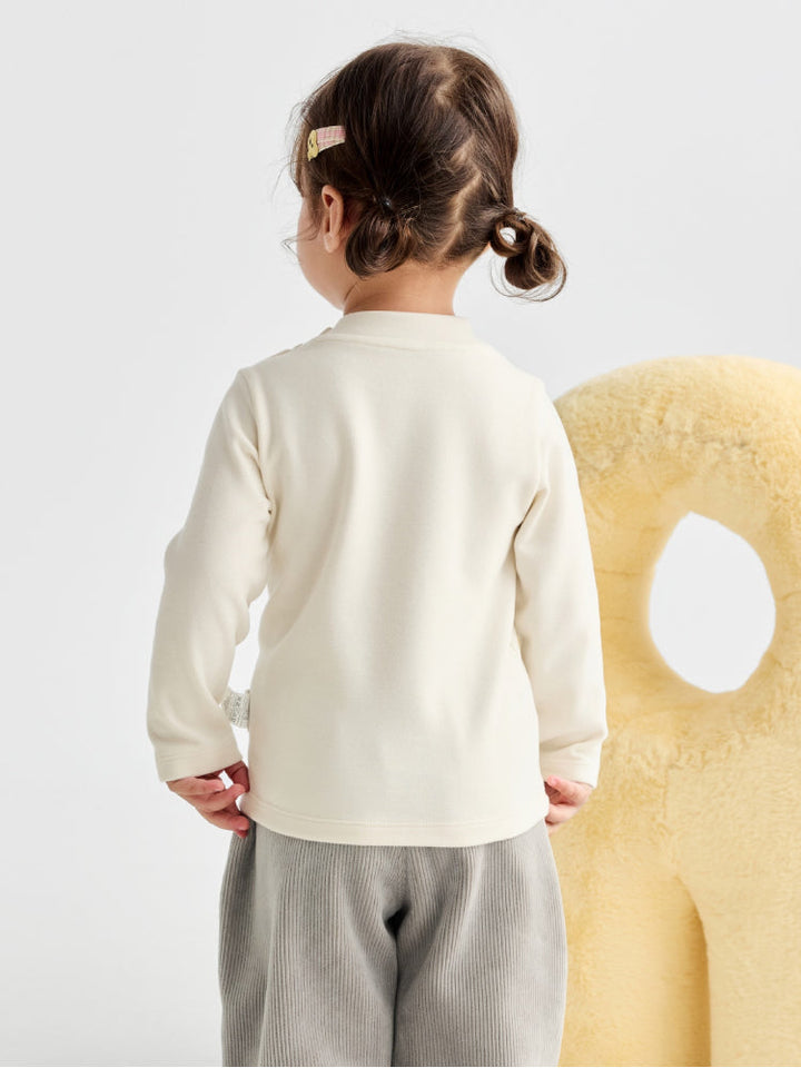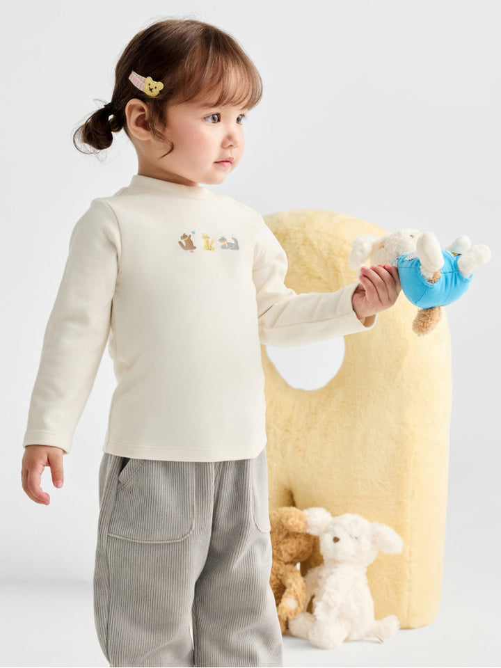 بلوزة أطفال مريحة بأكمام طويلة مصنوعة من قماش ناعم. تأتي بتصميم بسيط مزين بتطريز صغير في الأمام يمنح لمسة مرحة. سهلة التنسيق للاستخدام اليومي.