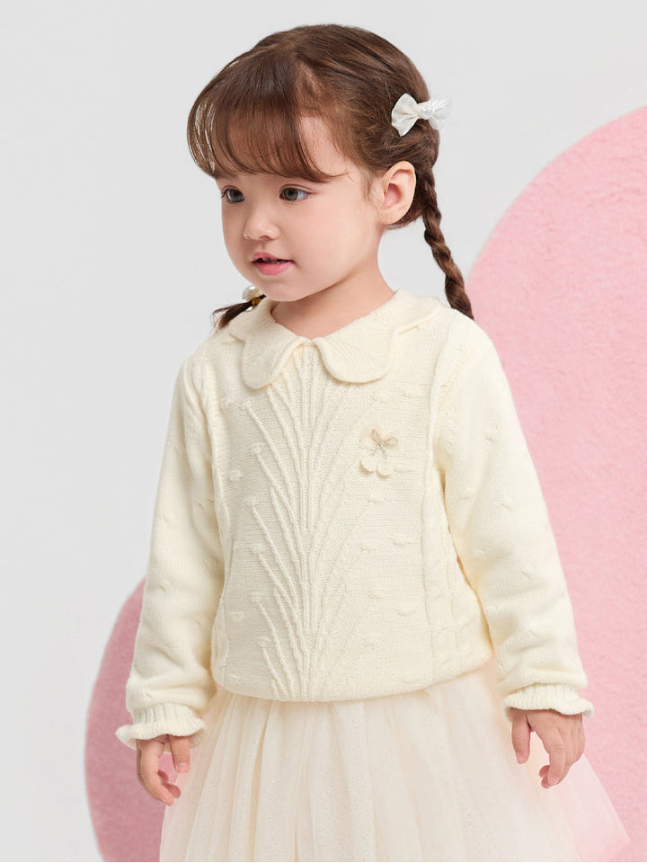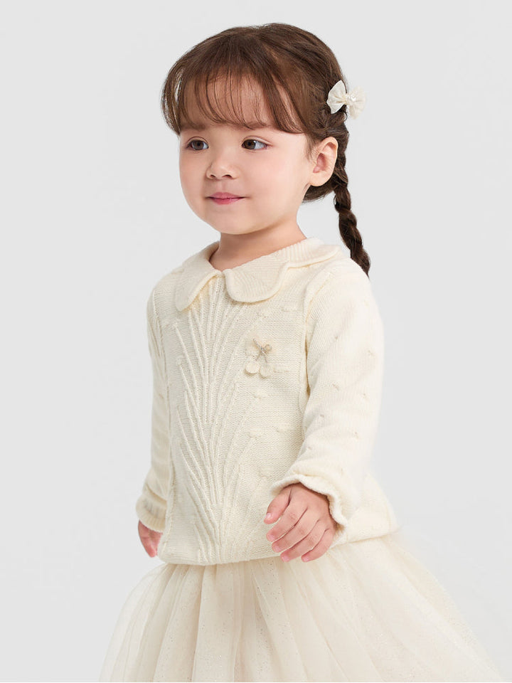 كنزة محبوكة بياقة وتفاصيل بارزة للبنات