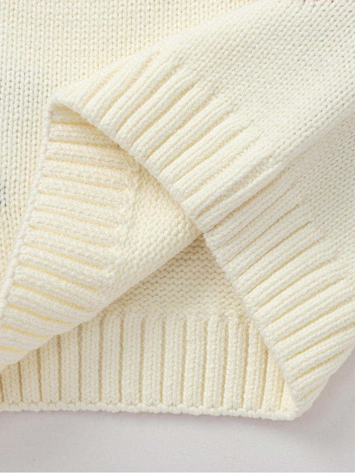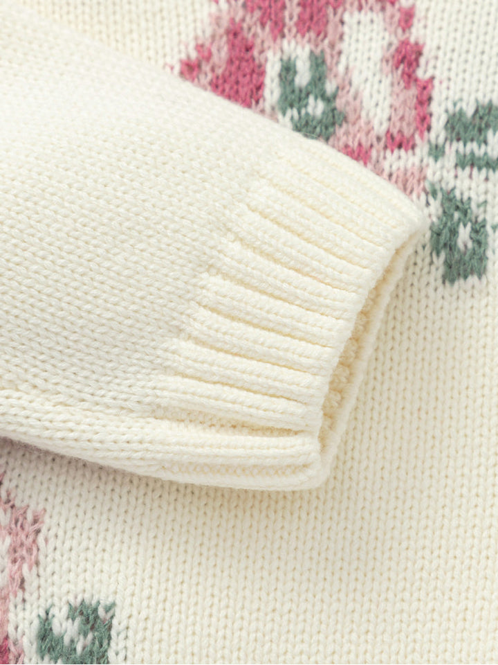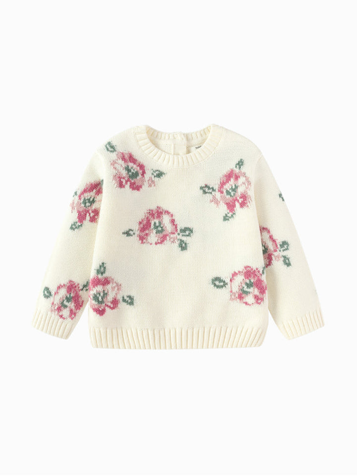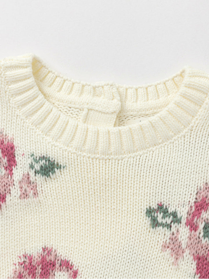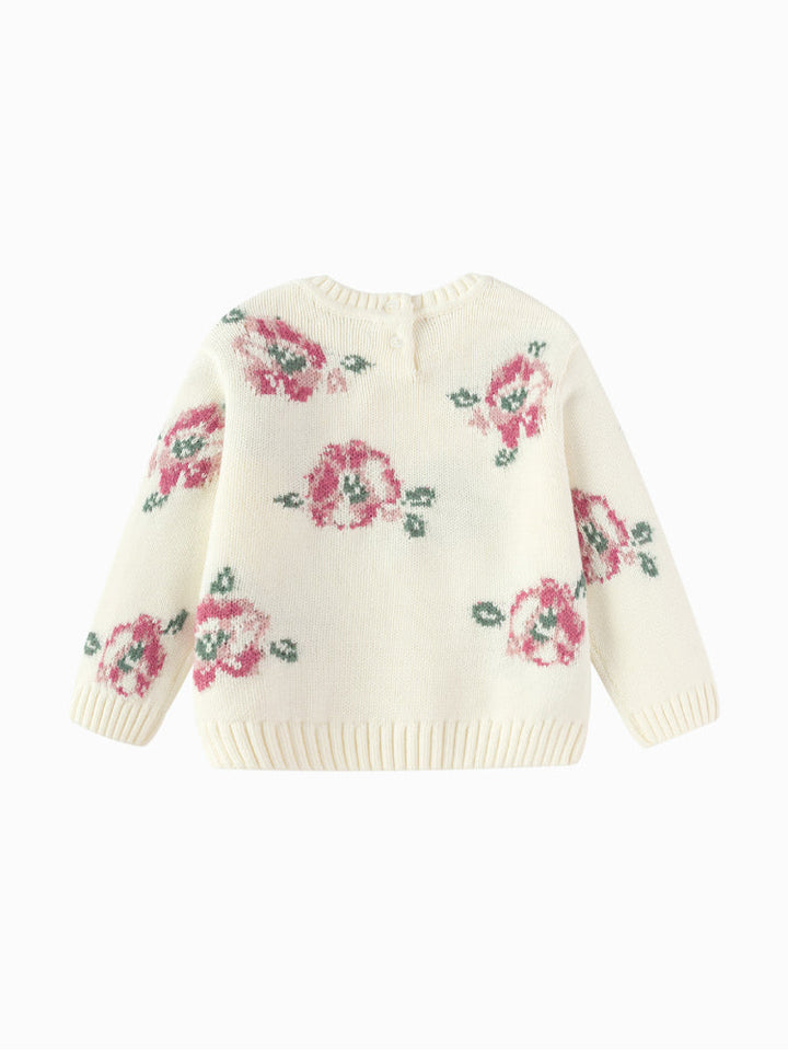 كنزة محبوكة ناعمة للأطفال بتصميم عملي مع أكمام طويلة، مزينة بنقشات ورود تضفي لمسة أنيقة وجميلة على الإطلالة اليومية.