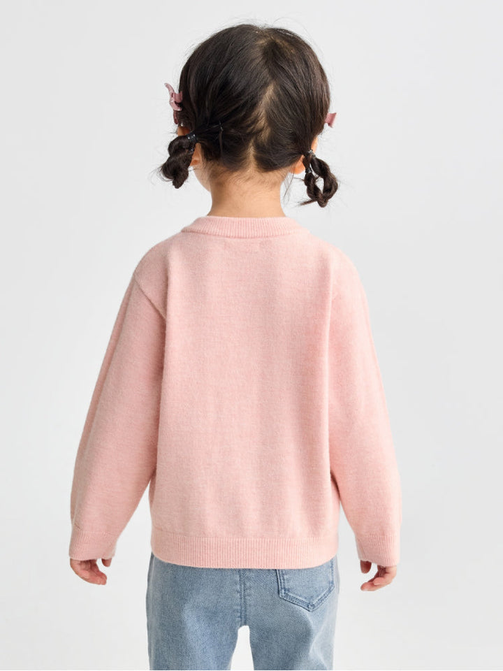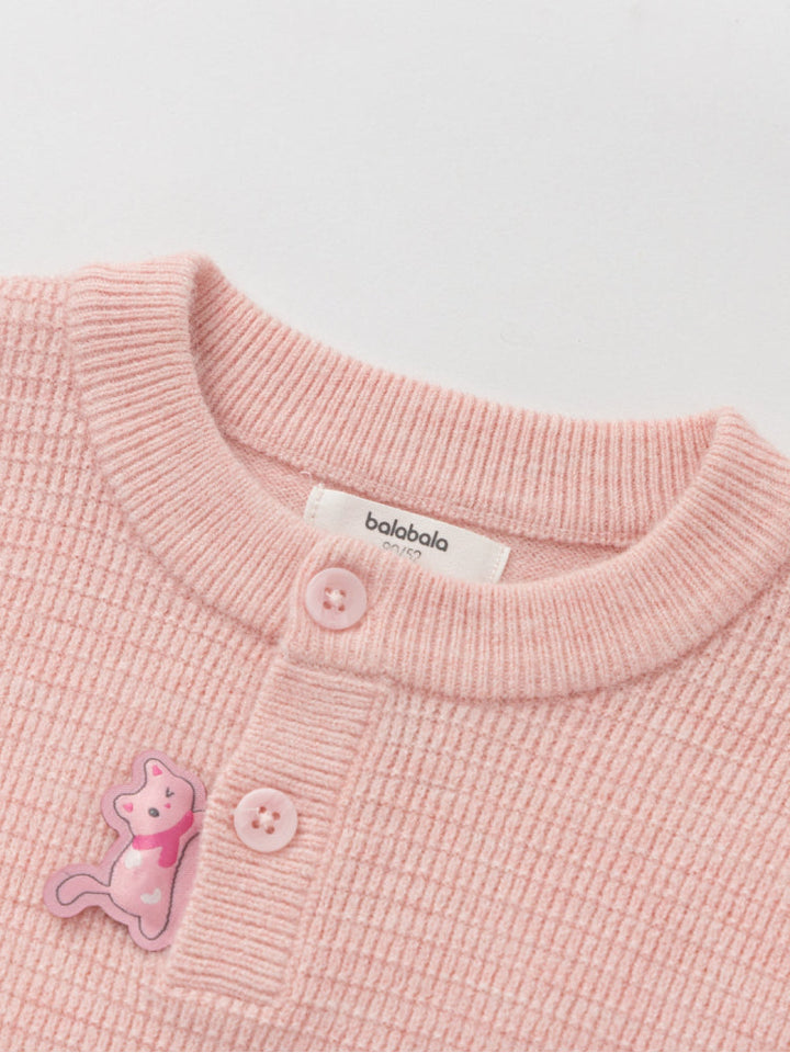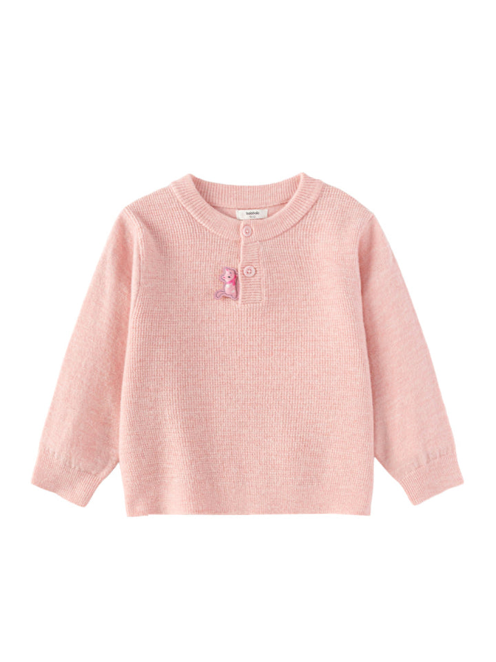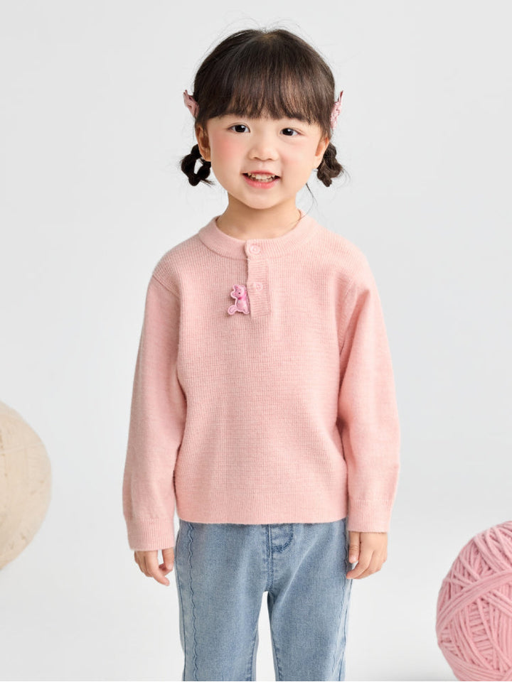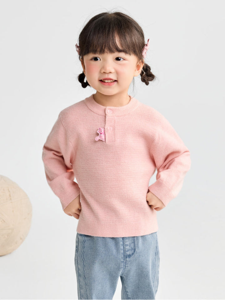 كنزة محبوكة بياقة هنلي وتفاصيل أمامية للبنات