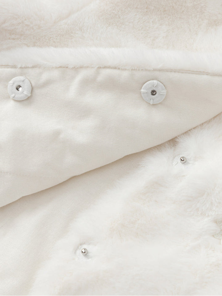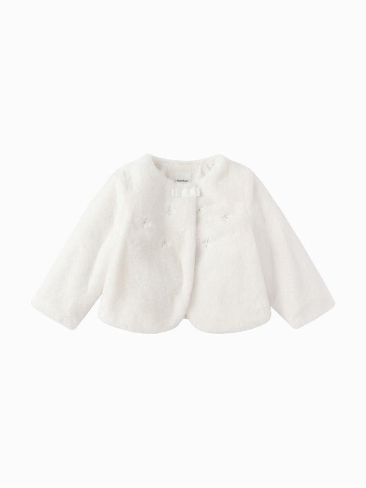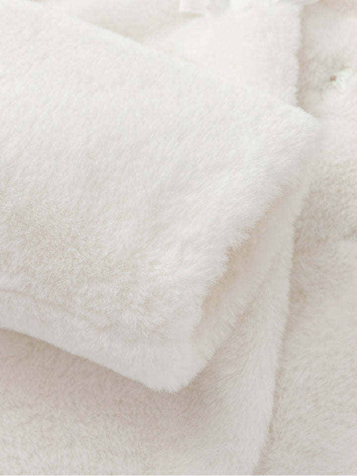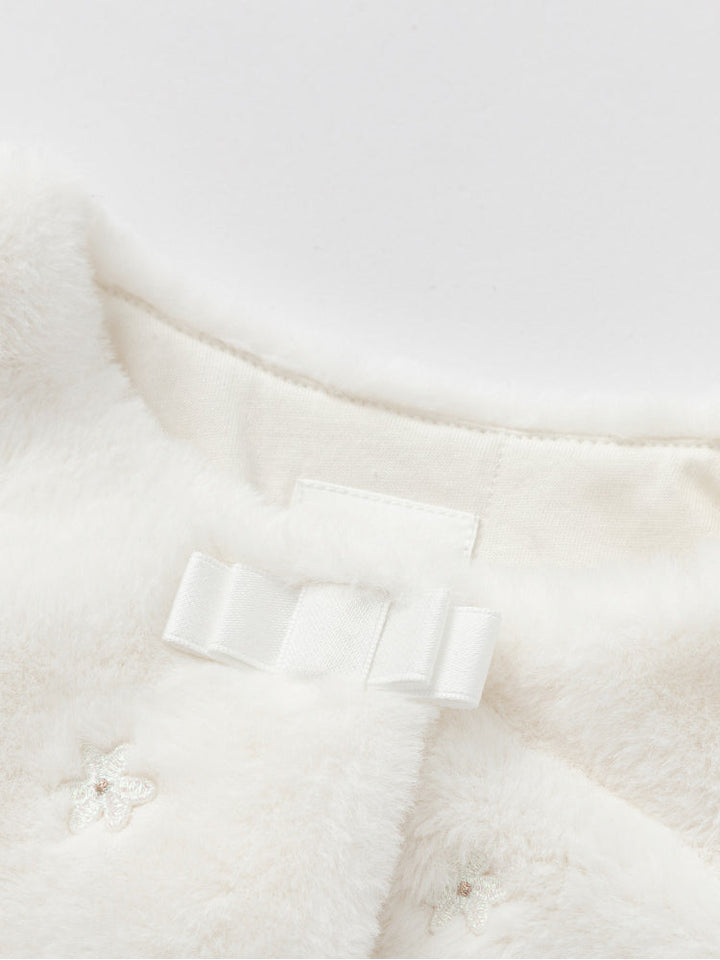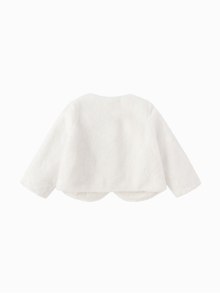 جاكيت فرو صناعي ناعم للأطفال بأكمام طويلة وتفصيلة ربطة أنيقة. مثالي لتدفئة الصغار بأسلوب أنيق وراقي.