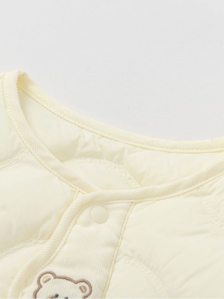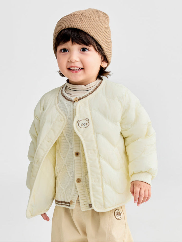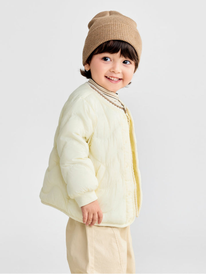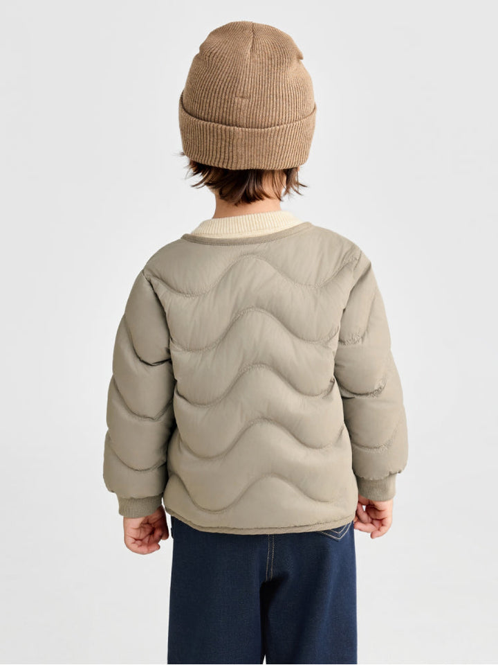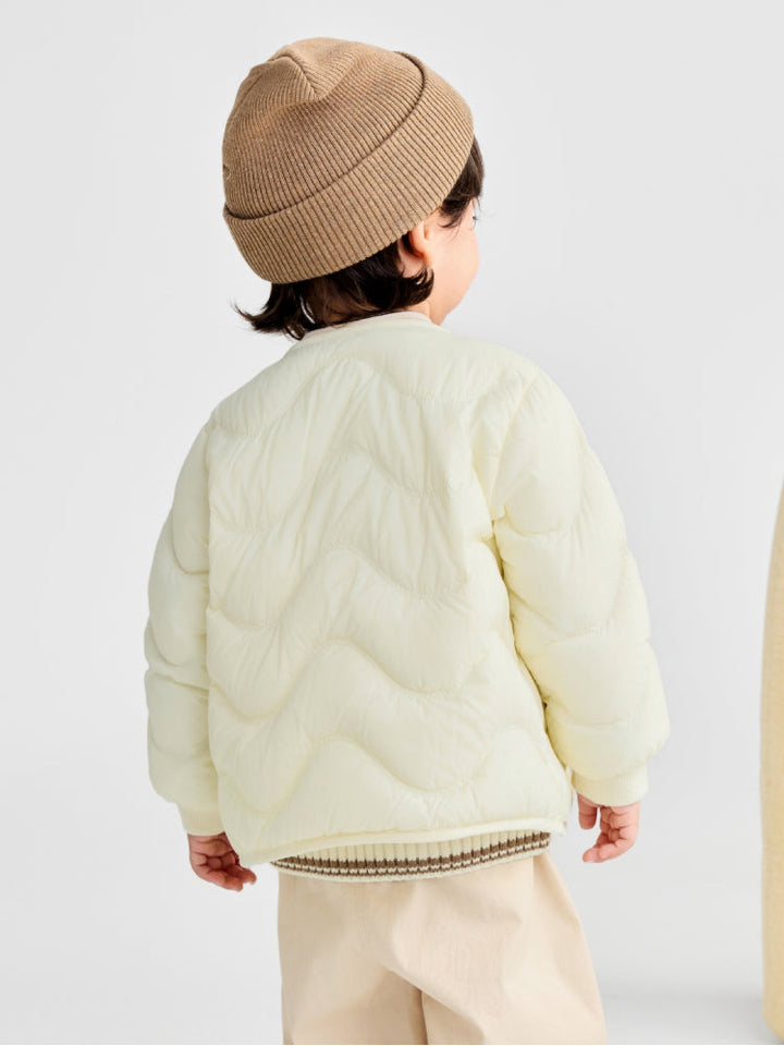 جاكيت مبطن للأطفال بتصميم خفيف، مزود بأزرار كبس مع حياكة ناعمة لمزيد من الراحة. مثالي للارتداء الطبقي والحفاظ على دفء الصغار في الأجواء الباردة.