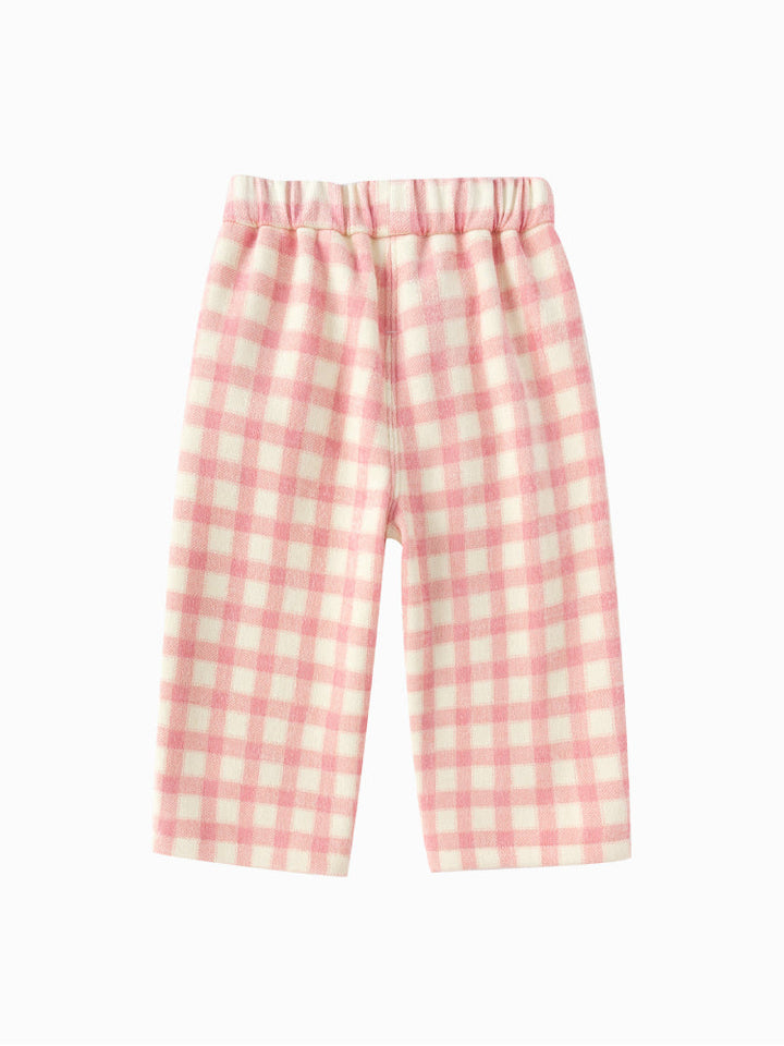 بنطلون بنقشة مربعات وحواف مطرزة بقطة للبنات