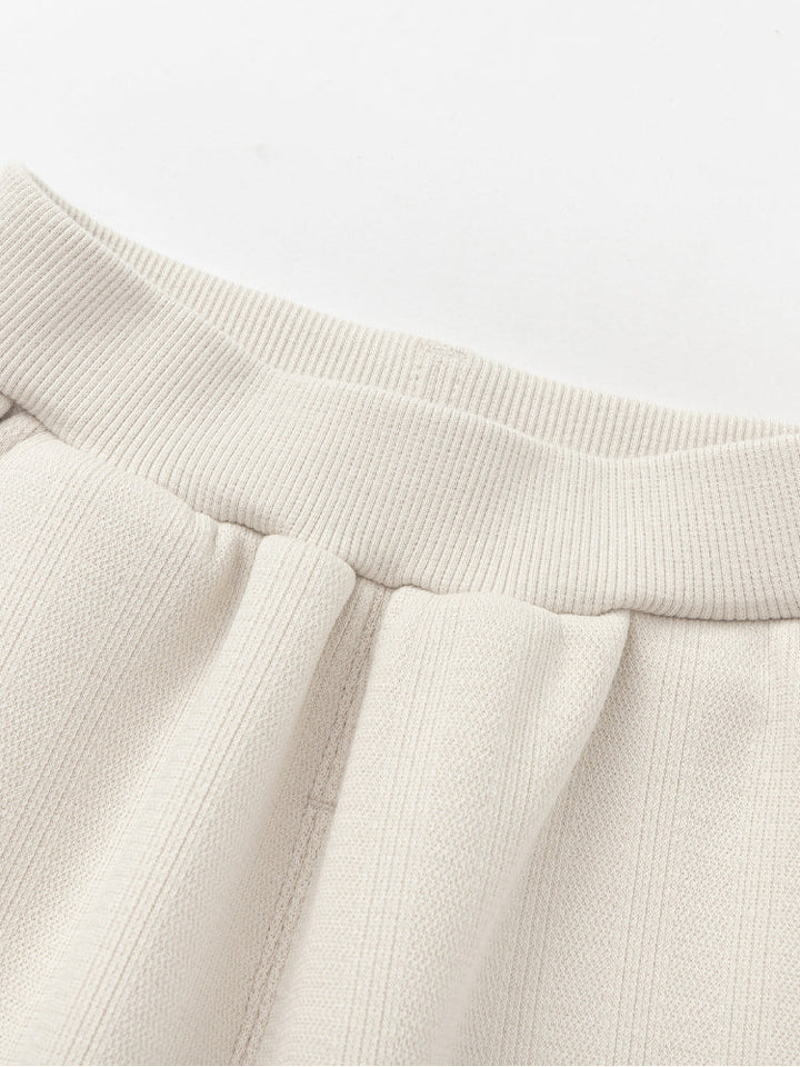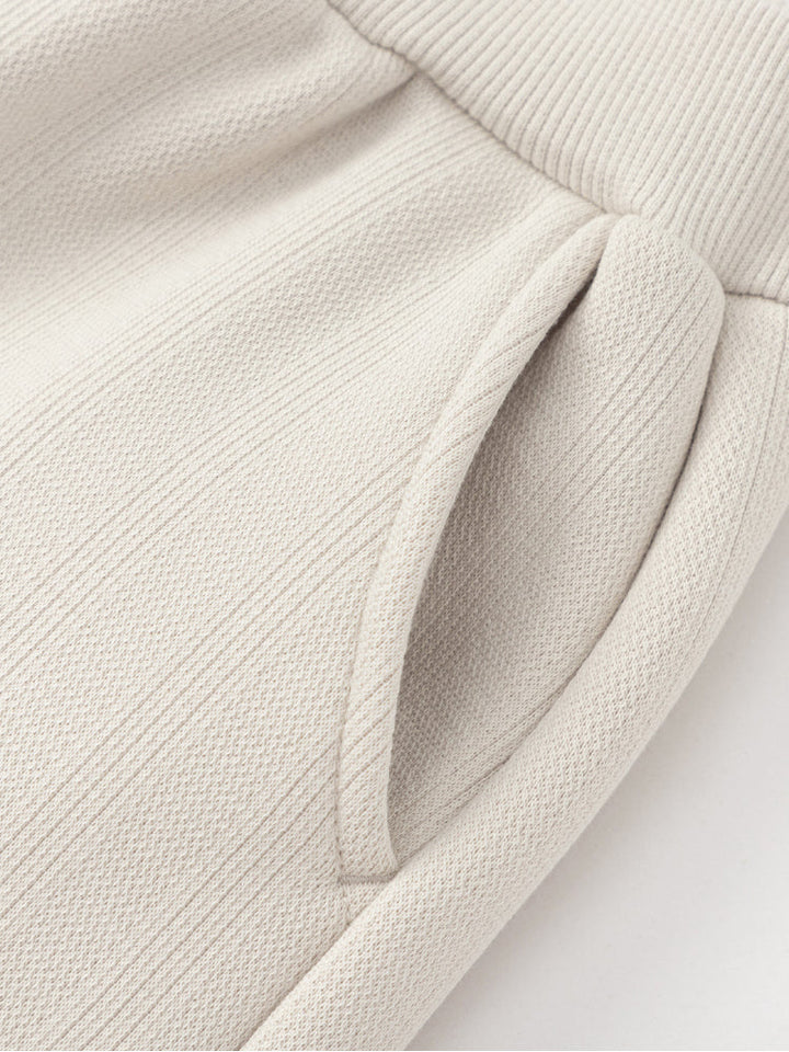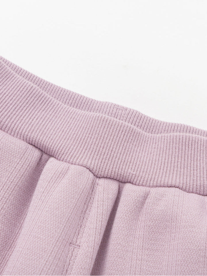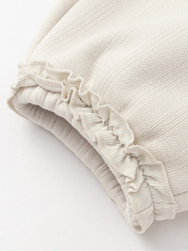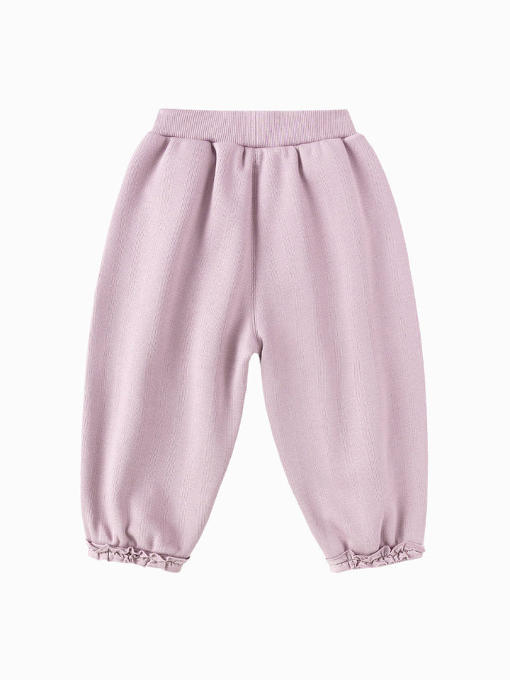 بنطلون أنيق للأطفال مصنوع من قماش ناعم مع خصر مطاطي يمنح راحة في الارتداء. مزين بفيونكات صغيرة قرب الركبتين، وتفاصيل مطاطية مع كشكشة خفيفة عند الأطراف. خيار لطيف ومريح للإطلالات اليومية.