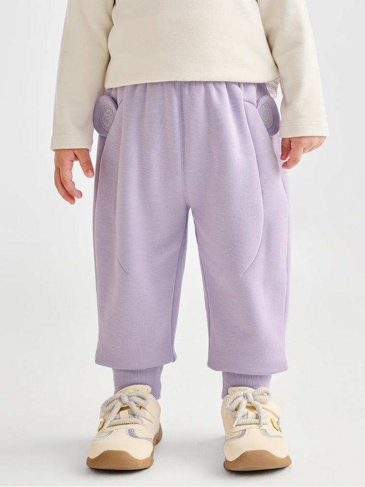 بنطلون رياضي للأطفال يتميز بخصر مطاطي وحواف مطاطية لمزيد من الثبات والراحة. مزين بتفصيلة زهرة جانبية تضفي لمسة مرحة على الإطلالة اليومية.