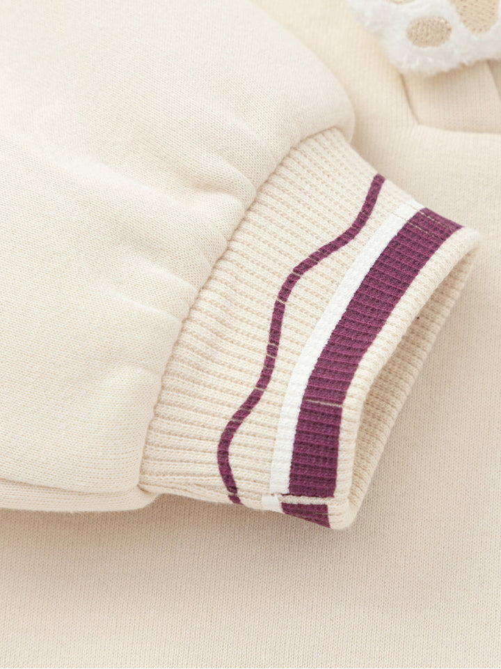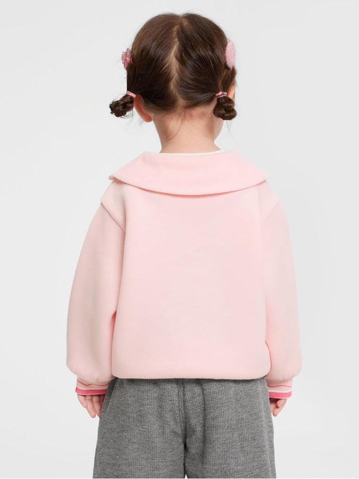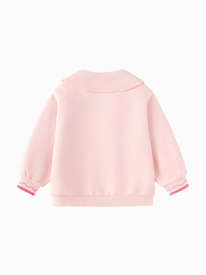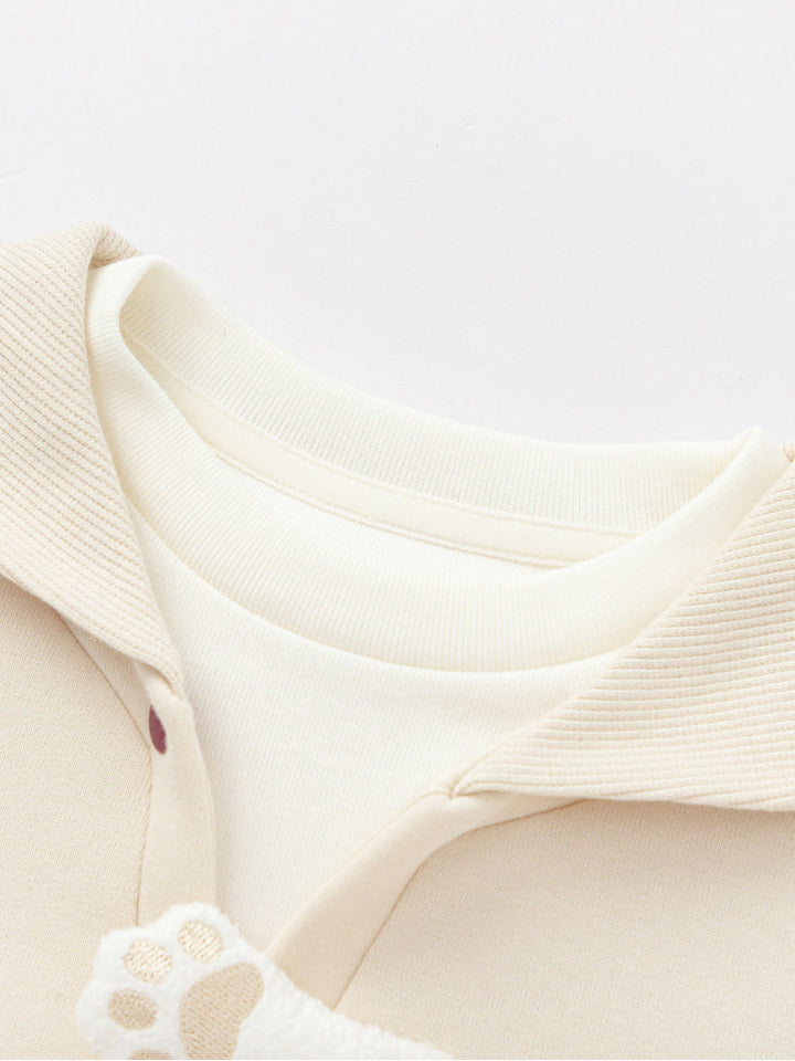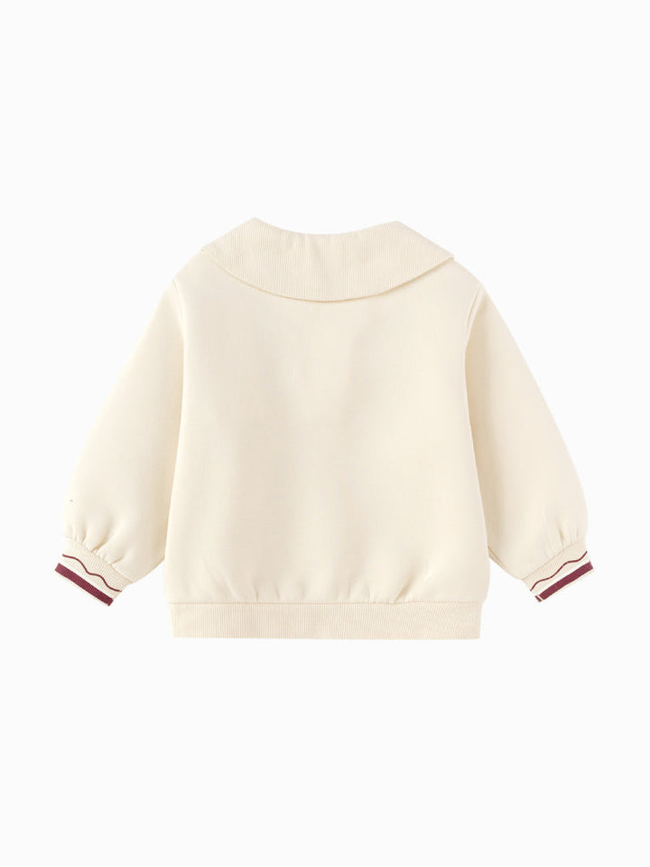 سويت شيرت أنيق للأطفال مزود بياقة بحرية وتصميم لطيف على شكل كف عند الرقبة. يأتي بأساور مطاطية وقماش ناعم يمنح الدفء والراحة، مثالي للارتداء اليومي.