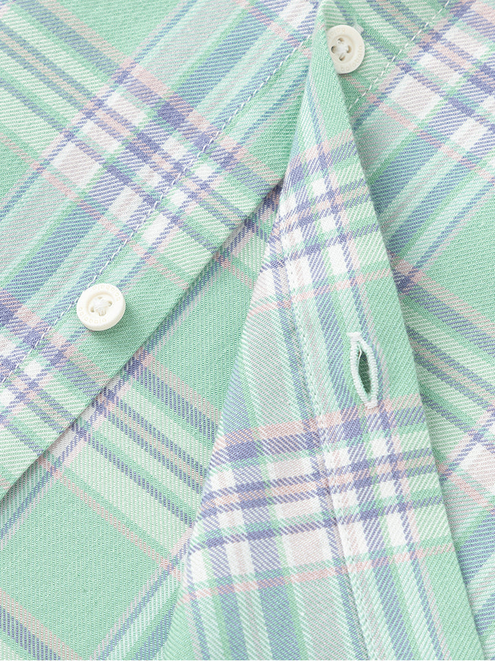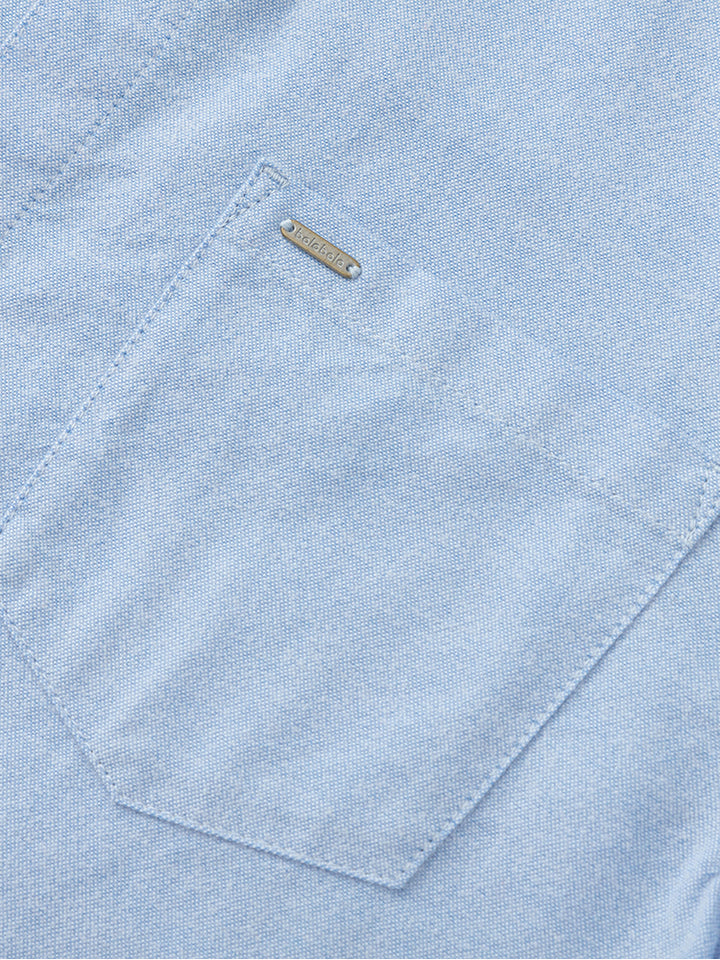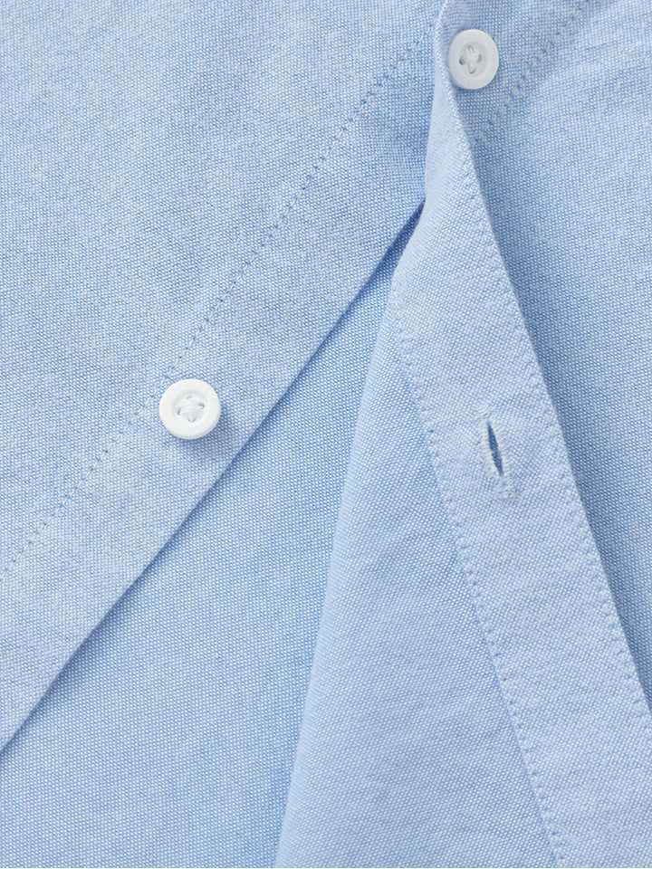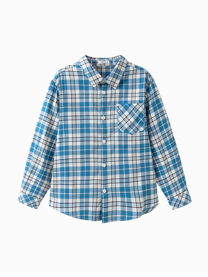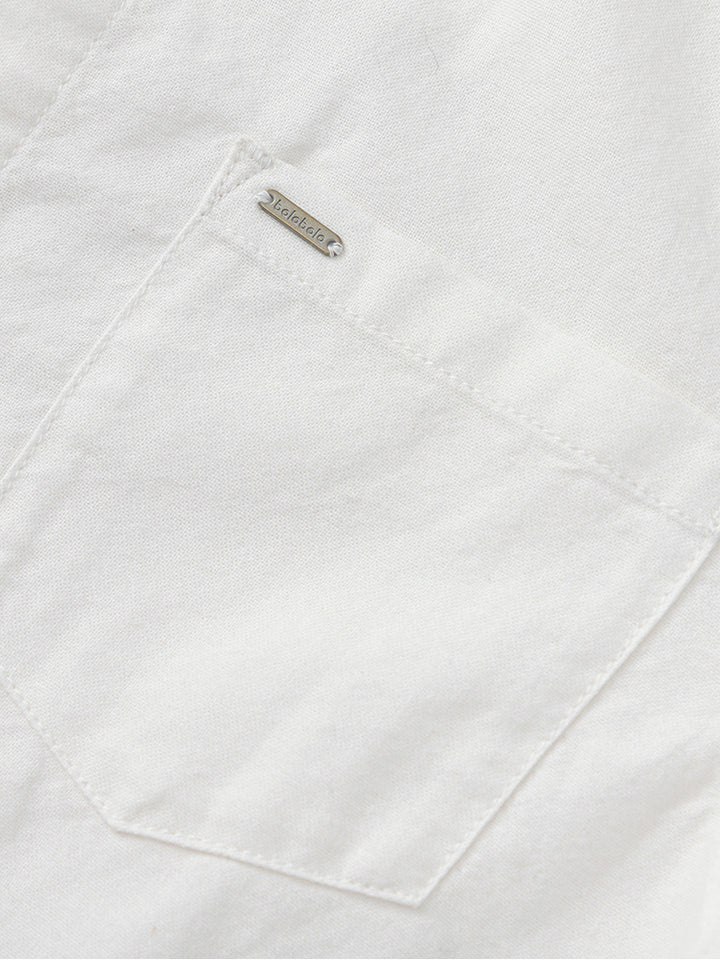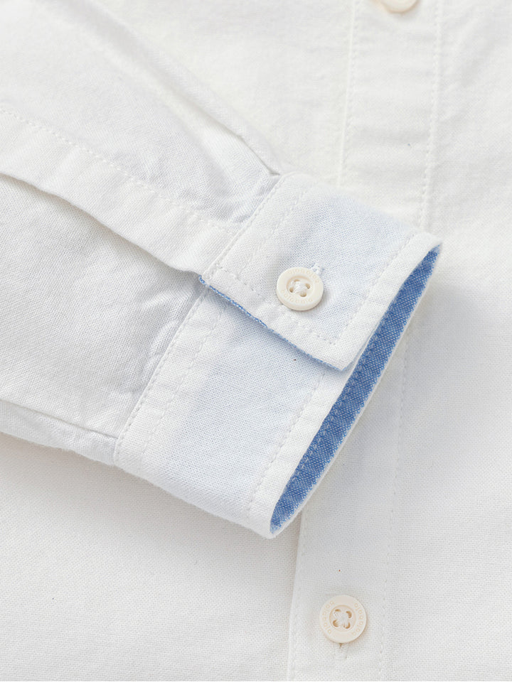 قميص بأكمام طويلة بنمط ذو لون موحد سادة، يأتي بجيب أمامي، أزرار أمامية للإغلاق، وبياقة كلاسيكية مطوية