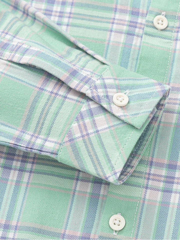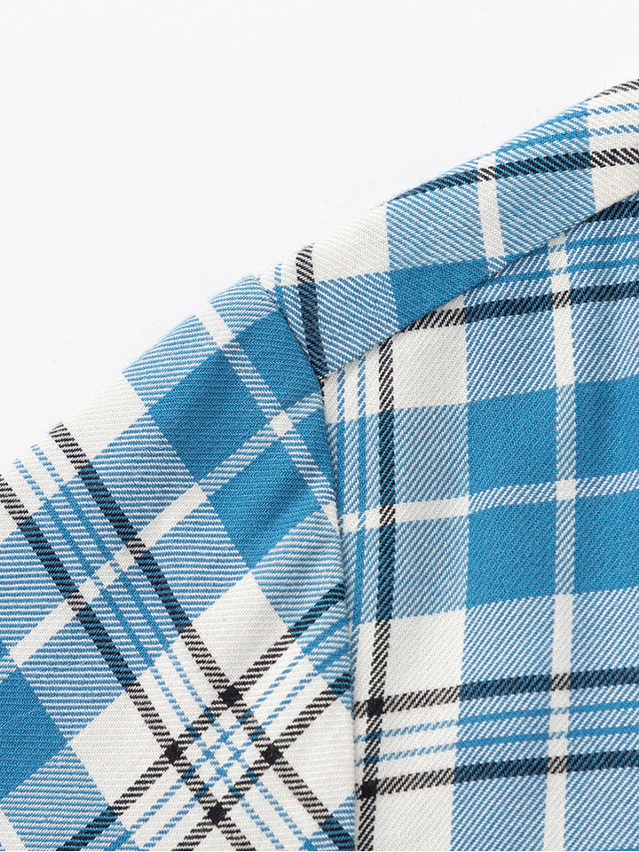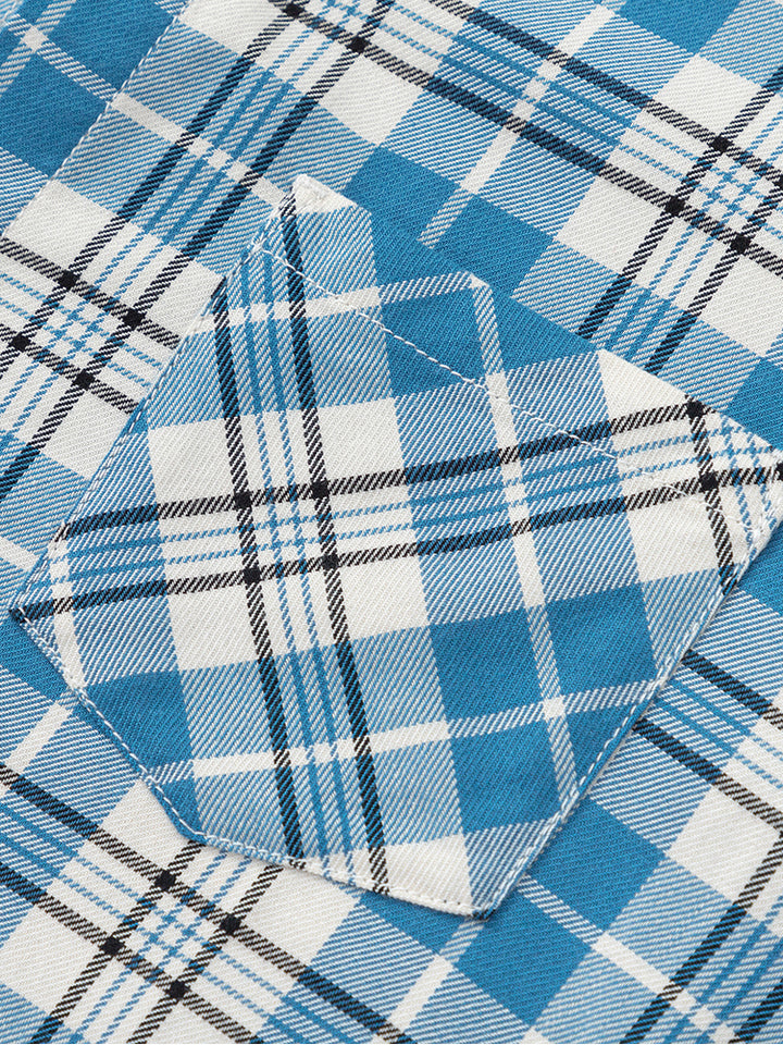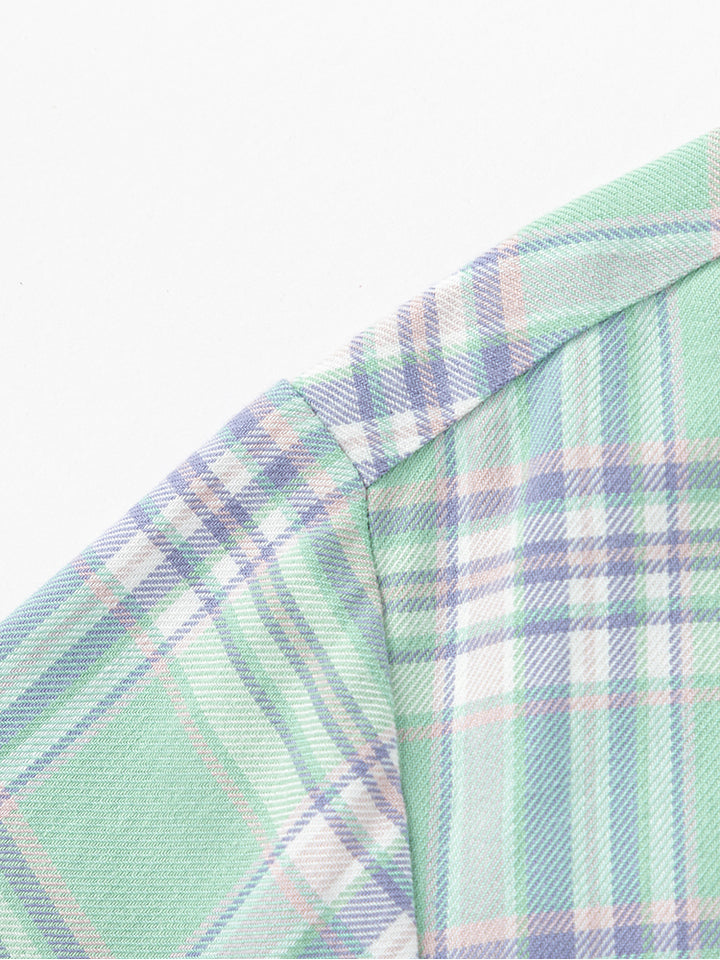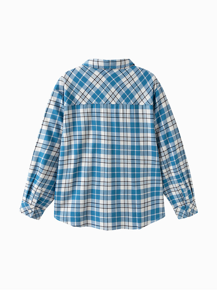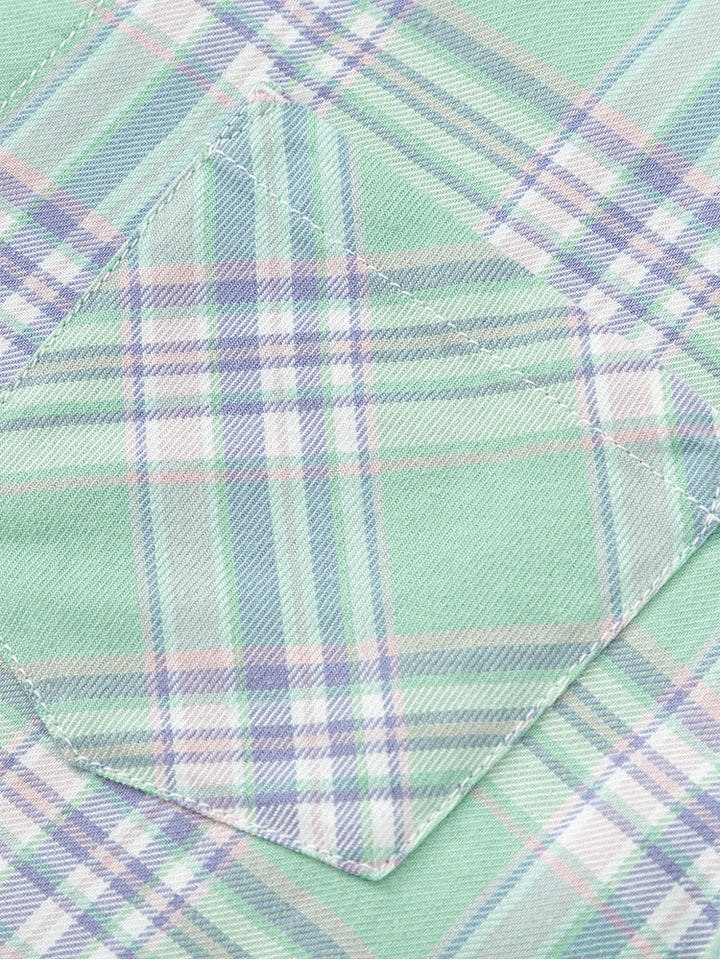 قميص بأكمام طويلة بنمط ذو لون موحد سادة، يأتي بجيب أمامي، أزرار أمامية للإغلاق، وبياقة كلاسيكية مطوية