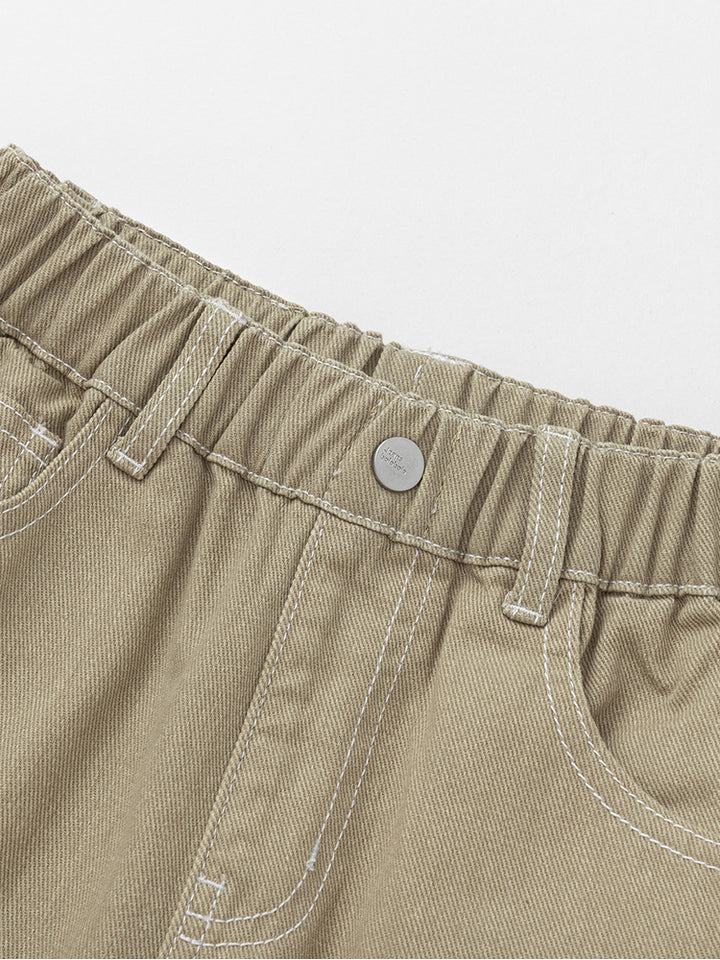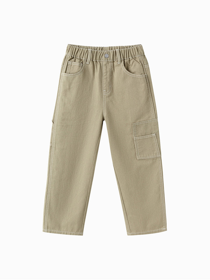 بنطلون كاجوال بنمط ذو لون موحد، يأتي بجيوب أمامية وخلفية وخصر مطاطي مريح