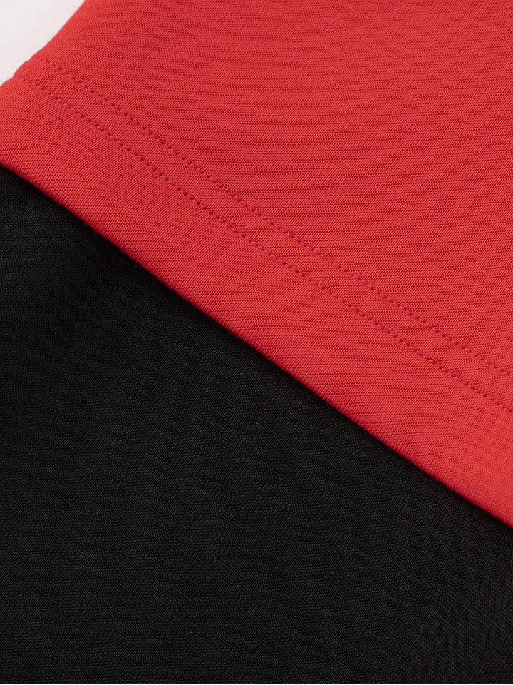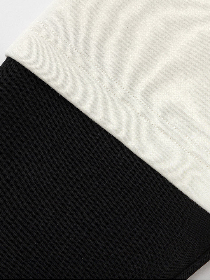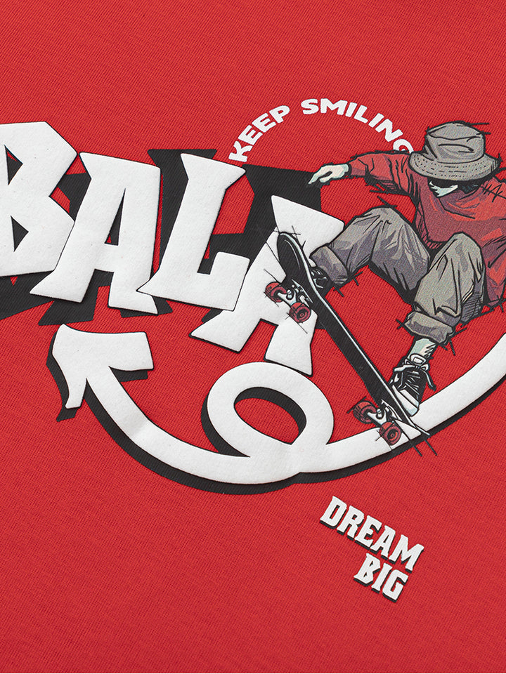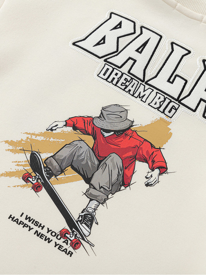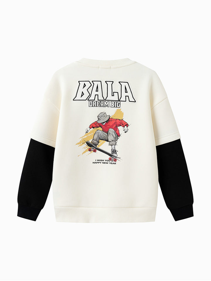 بلوزة سويت شيرت بأكمام طويلة، مزينة بطبع أمامية وخلفية وأكمام متباينة اللون وتأتي بياقة مدورة الشكل