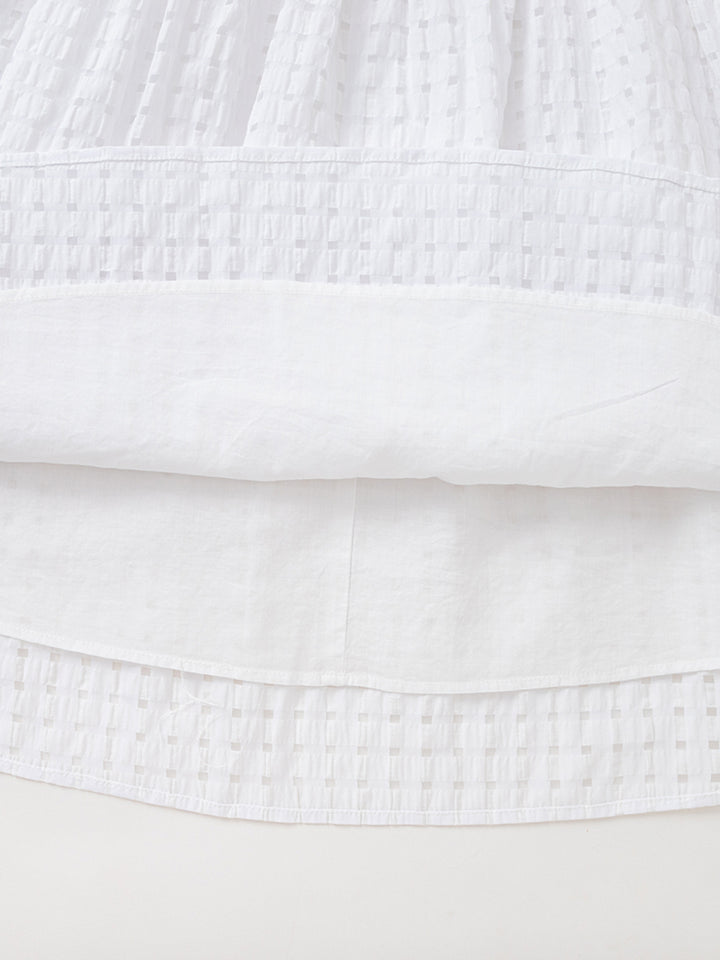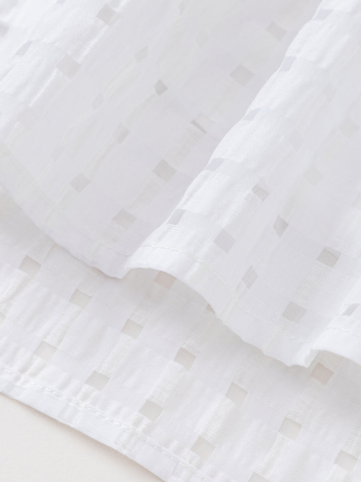 فستان بأكمام قصيرة، مزين بستايل مطبع بطبعة مربعات، يأتي بقبة مستقيمة الشكل