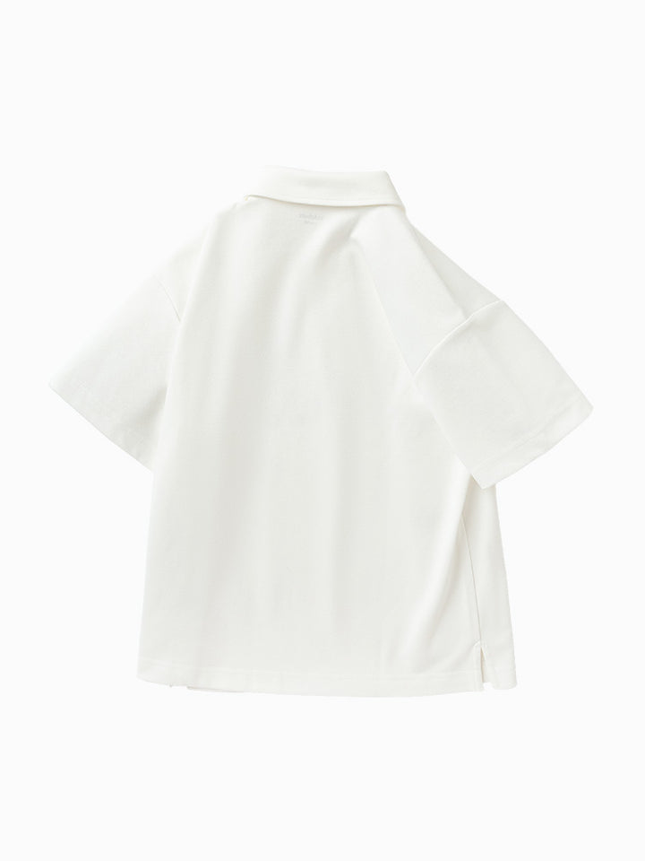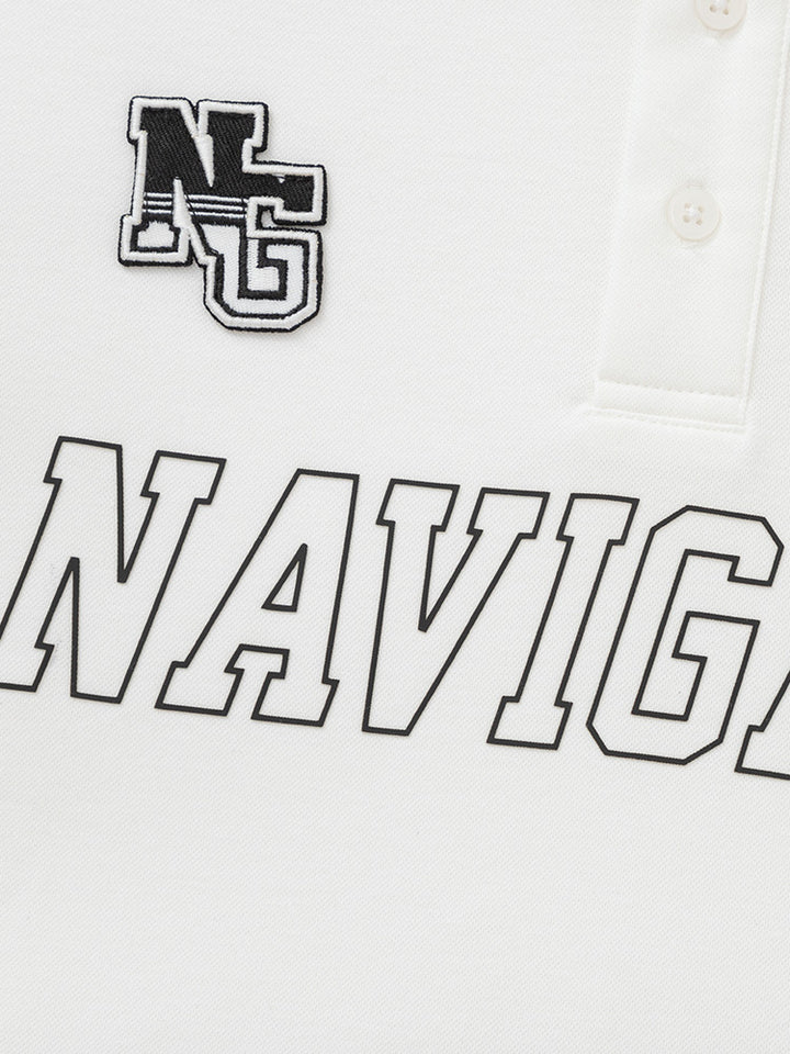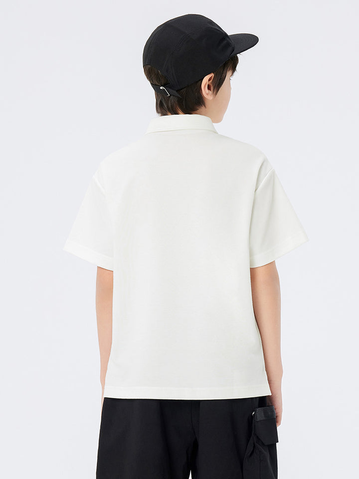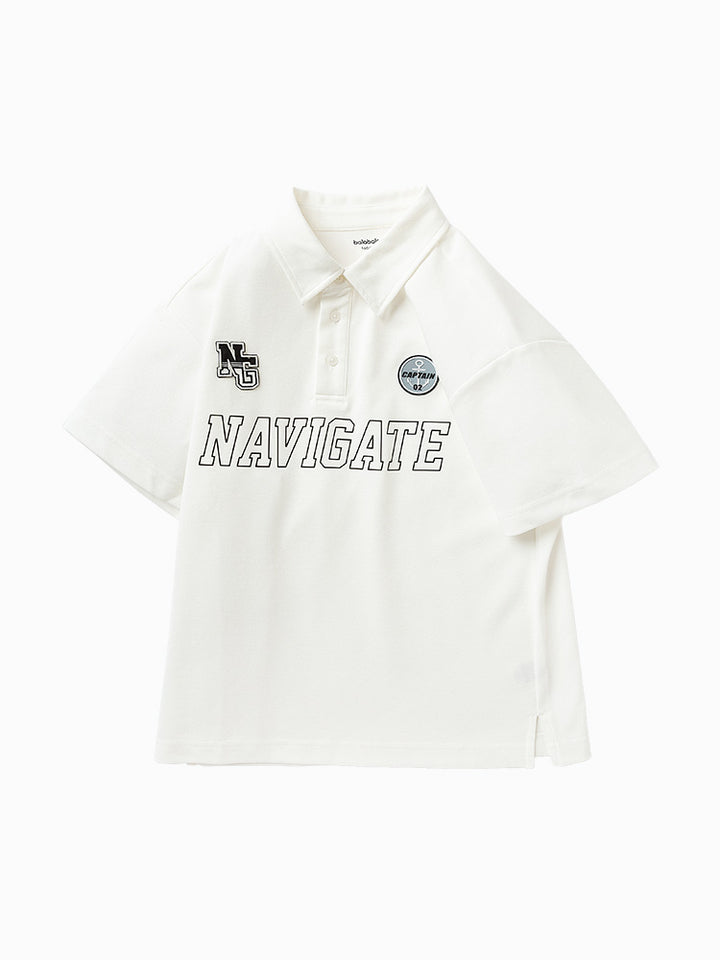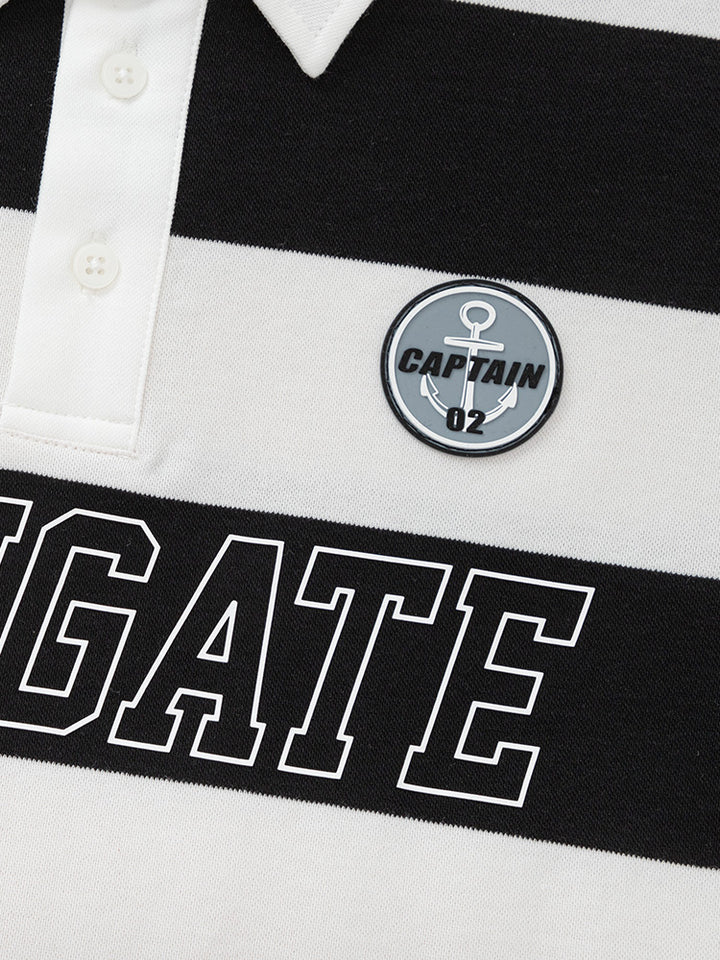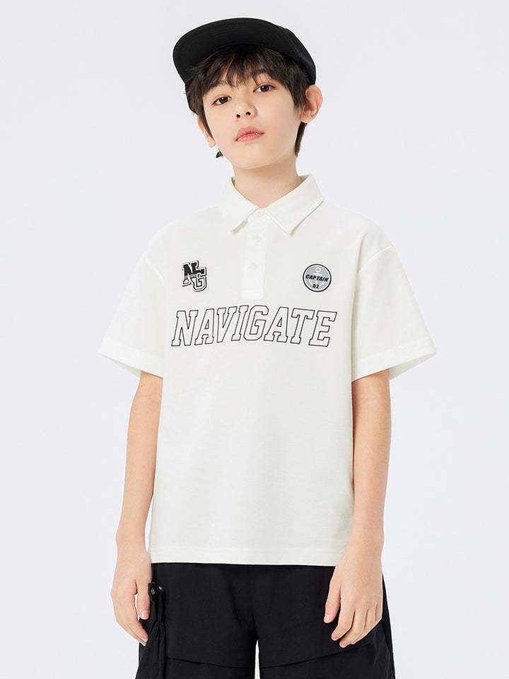 تيشيرت بولو بأكمام قصيرة، مزين بستايل مخطط وطبع من الجهة الأمامية، يأتي بأزرار عند جهة القبة وبياقة عادية
