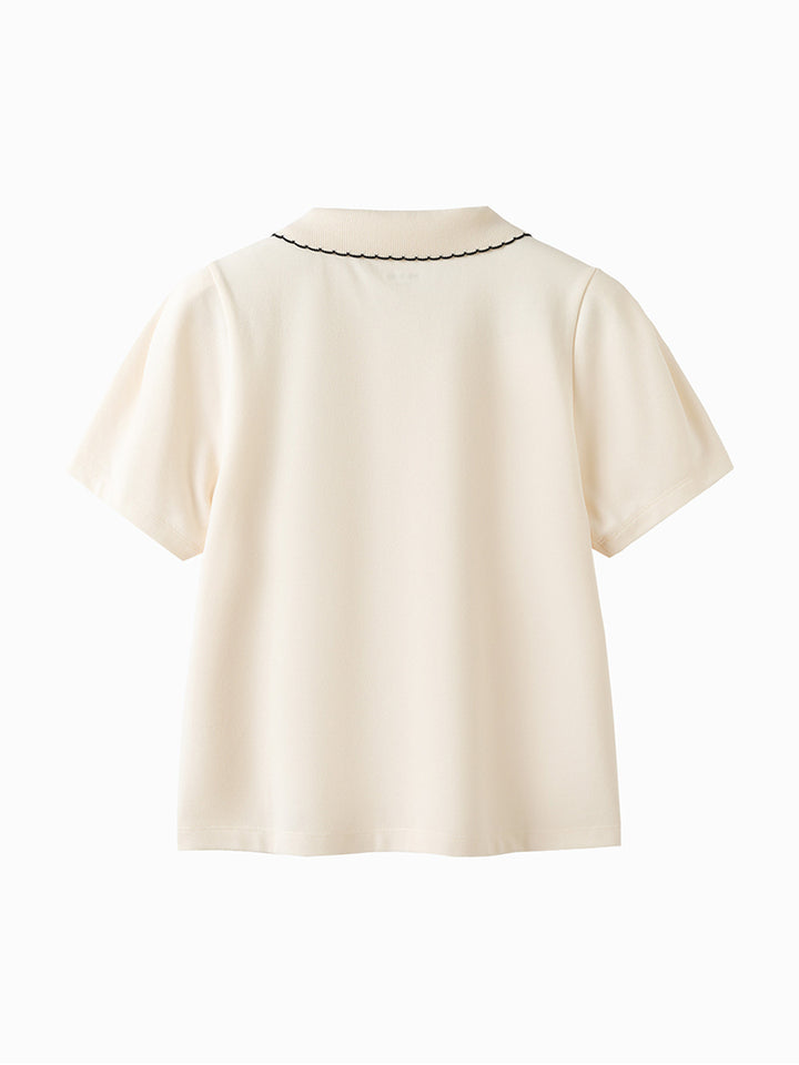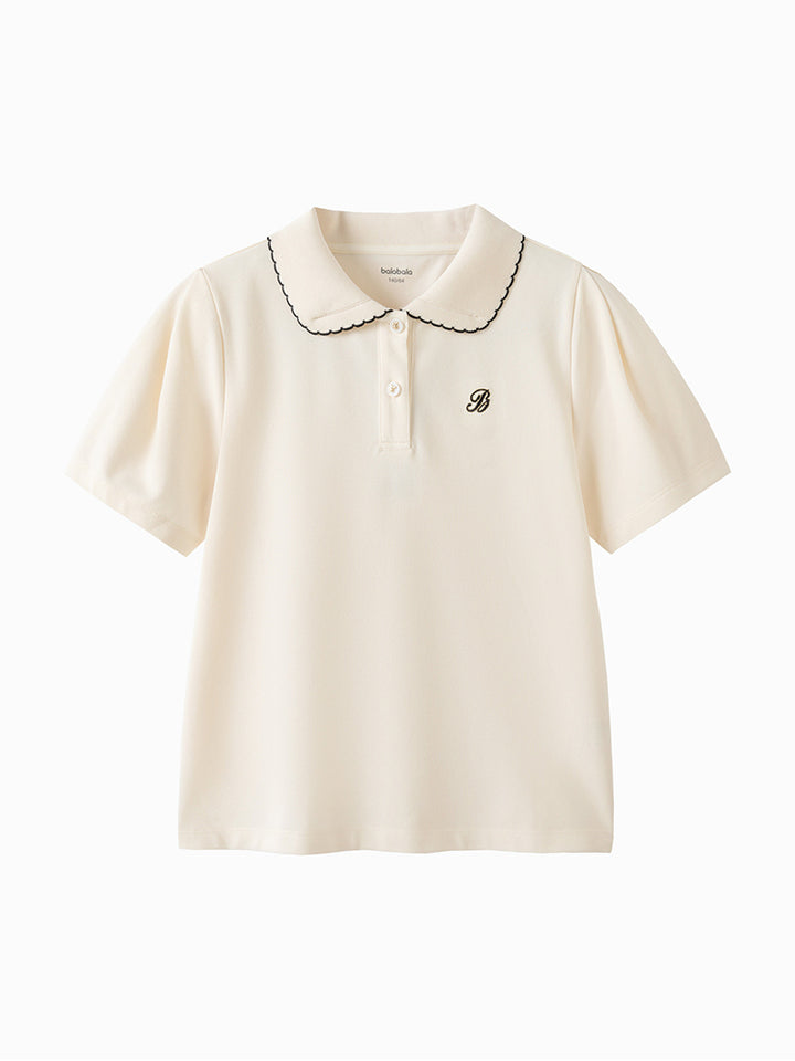 تيشيرت بولو بناتي كاجوال بأكمام قصيرة، مزين بطبعة تطريز صغيرة على الصدر من الجهة الأمامية، يأتي بأزرار للإغلاق من الجهة الأمامية وبياقة كلاسيكية عادية