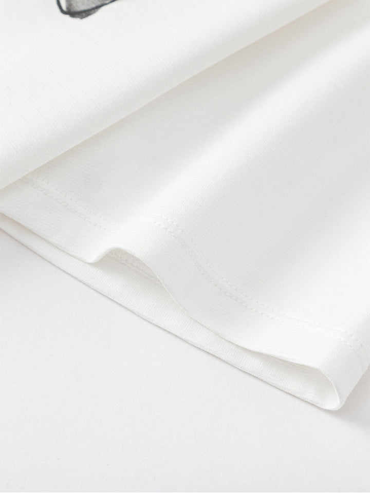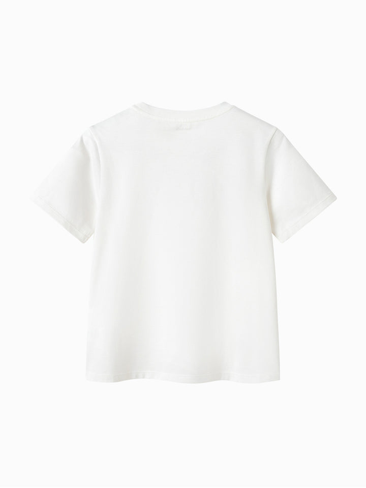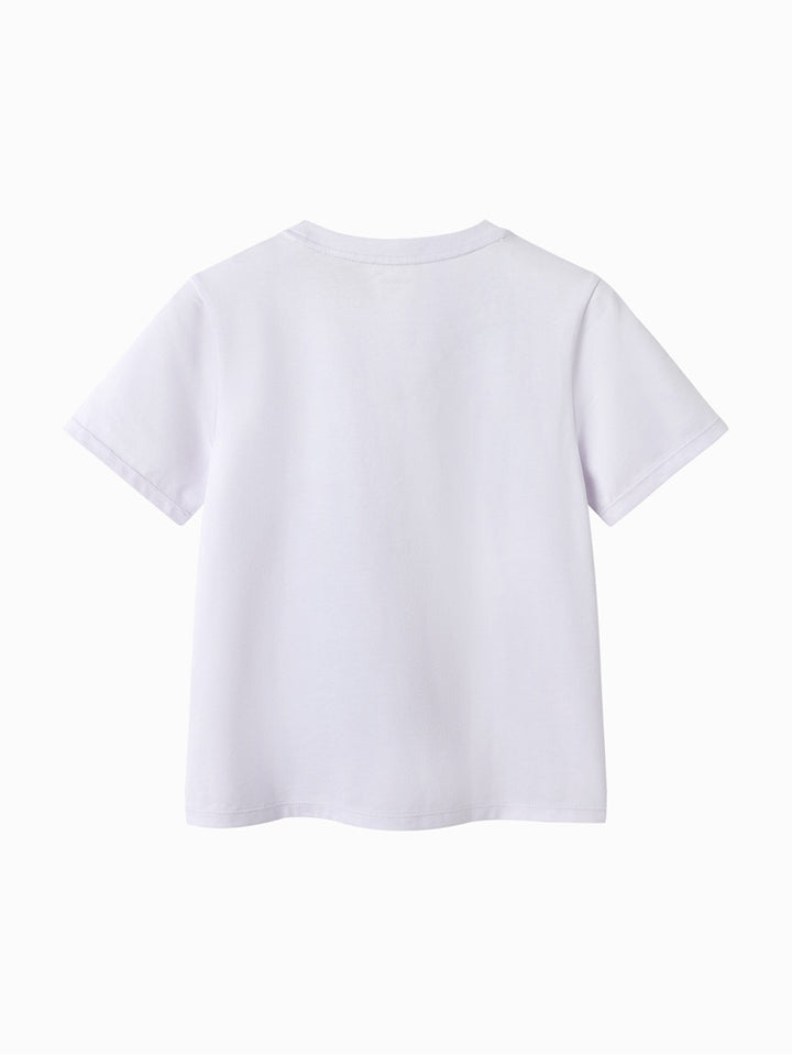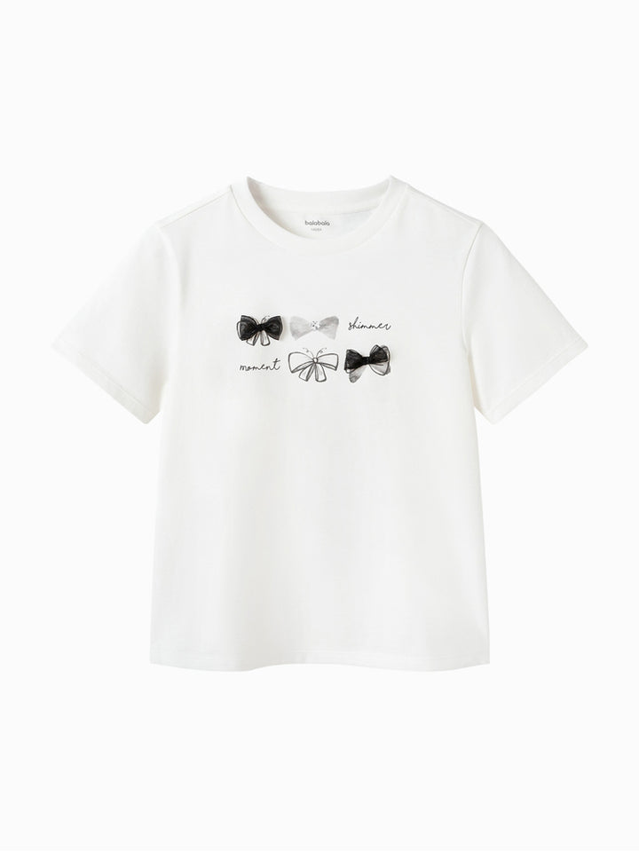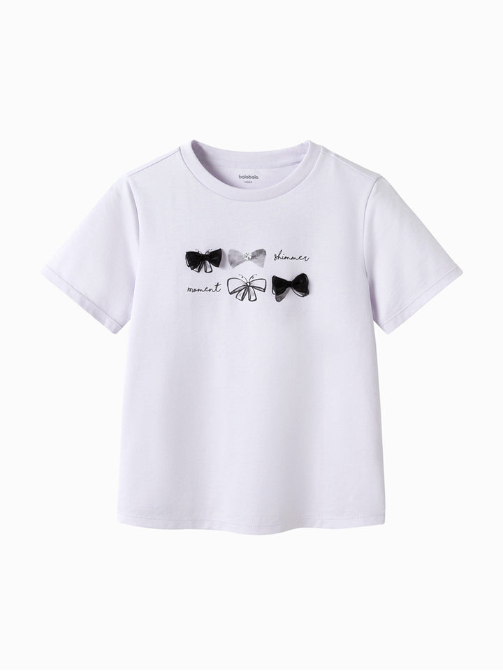 تيشيرت بناتي كاجوال بأكمام قصيرة، مزين بطبعة من الجهة الأمامية ويأتي بياقة مدورة الشكل