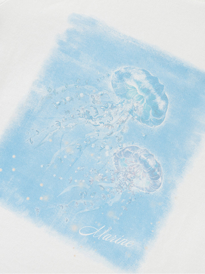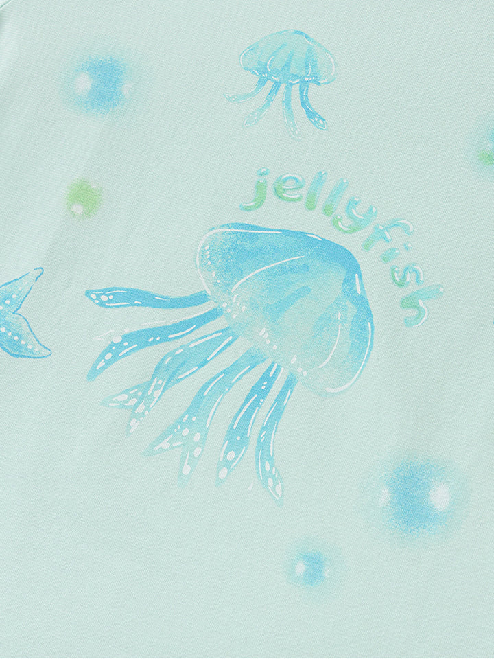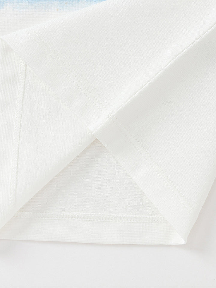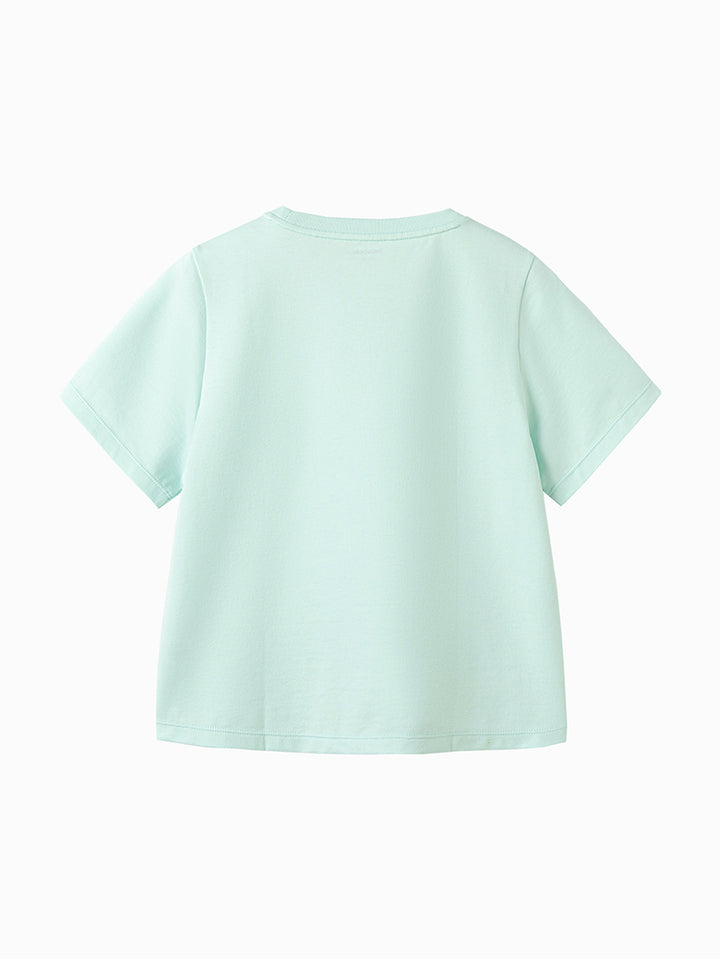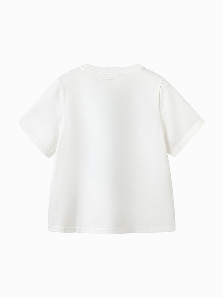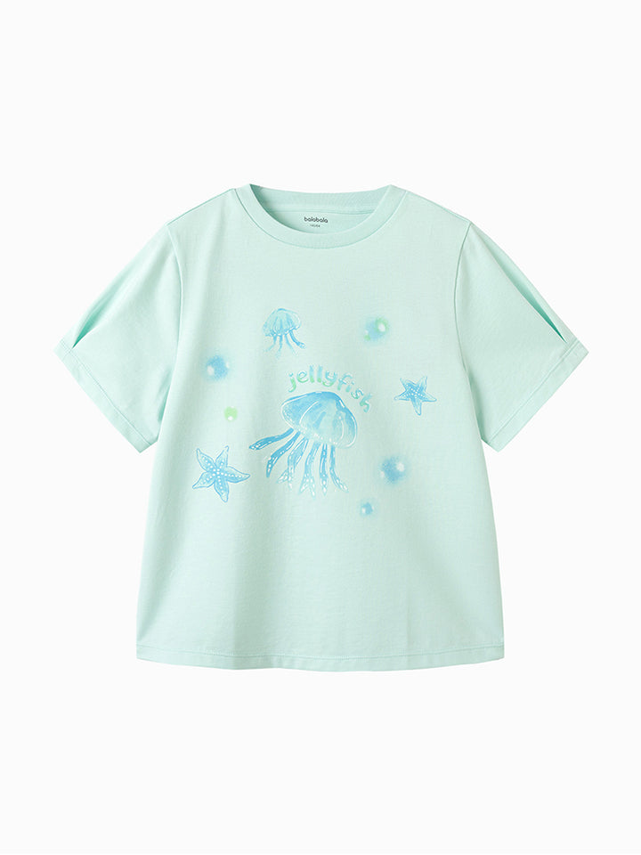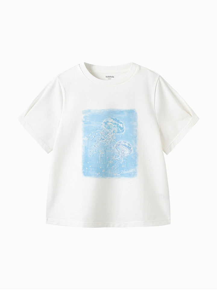 تيشيرت بناتي بأكمام قصيرة، مزينة بطبعة من الجهة الأمامية، تأتي بياقة مدورة الشكل