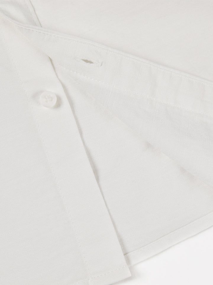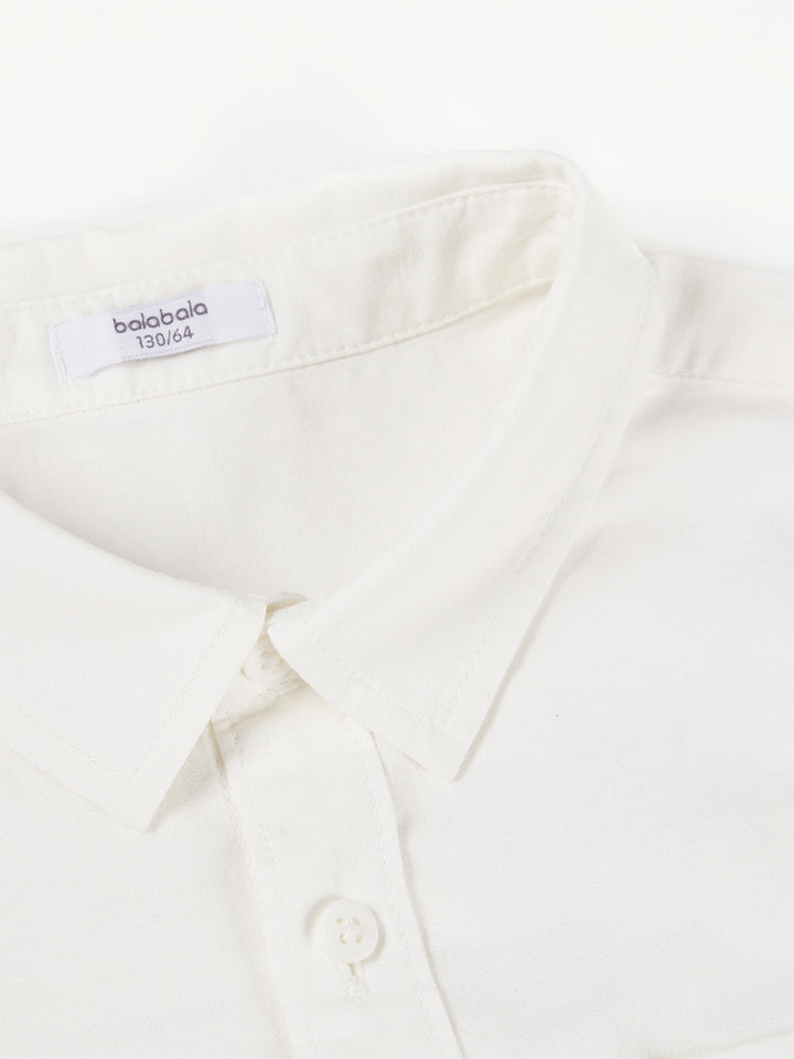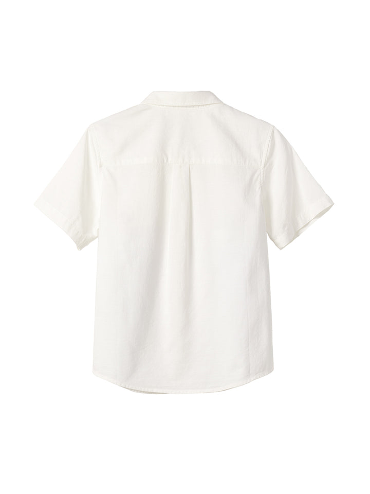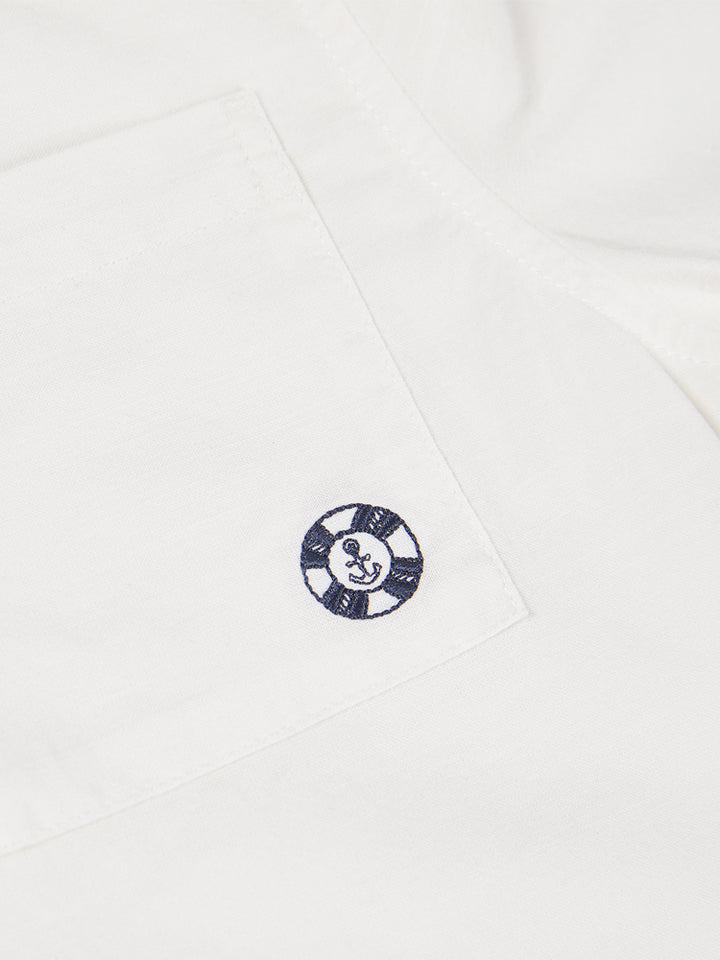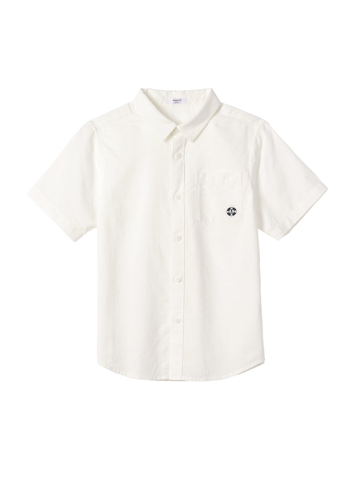 قميص كاجوال بأكمام قصيرة، مزين بتطريز صغير على الصدر من الجهة الأمامية، يأتي بجيب أمامي، أزرار للإغلاق من الجهة الأمامية وبياقة كلاسيكية عادية