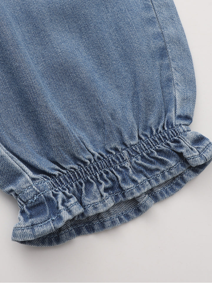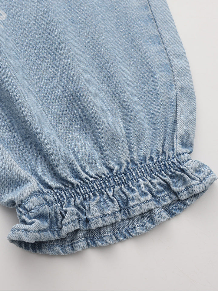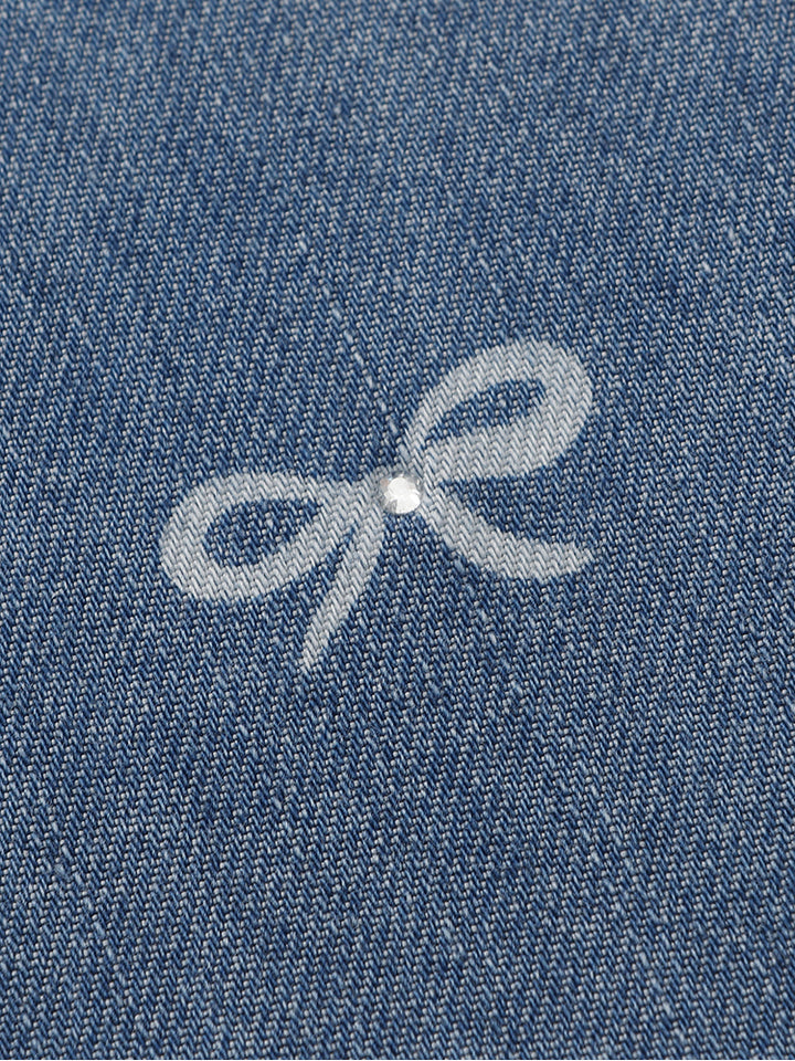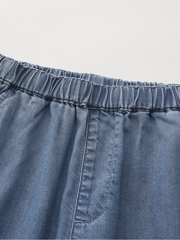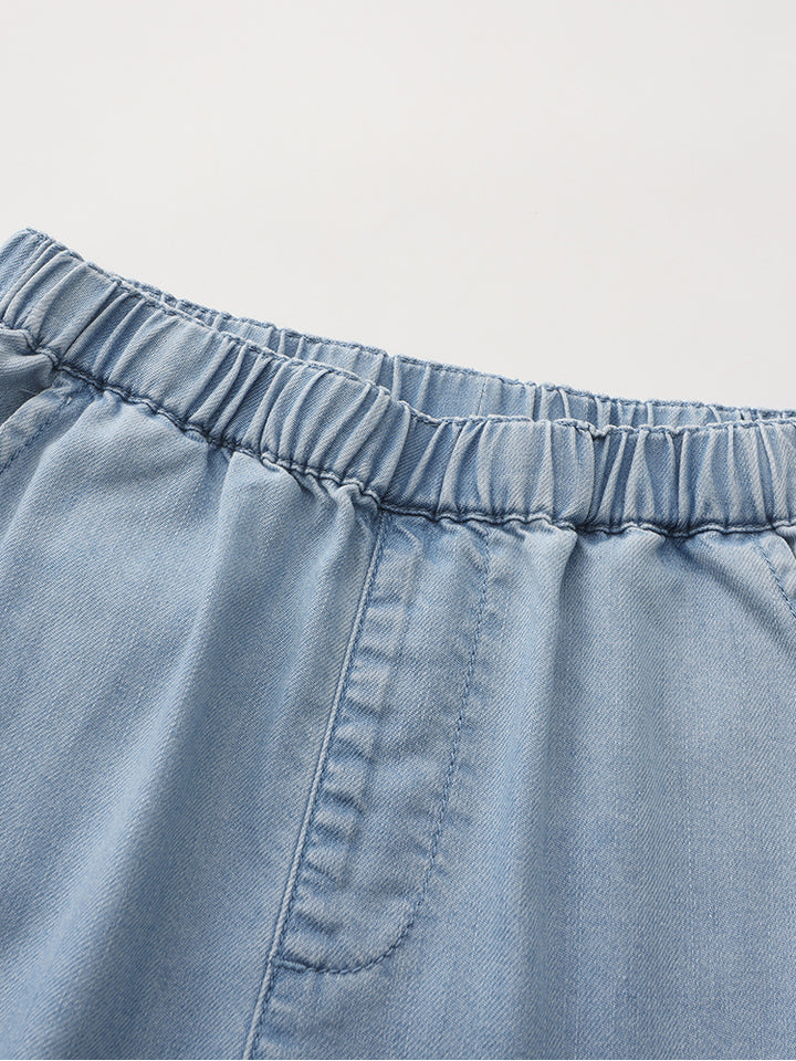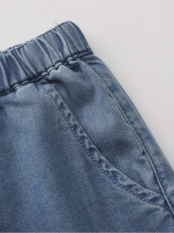بنطلون جينز مزين بنمط طبعات من الجهة الامامية، يأتي بجيوب أمامية وخصر مطاطي مريح