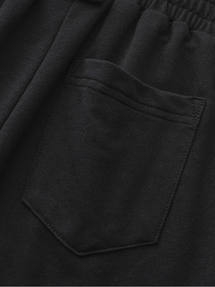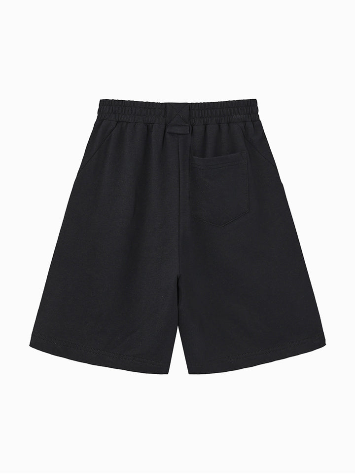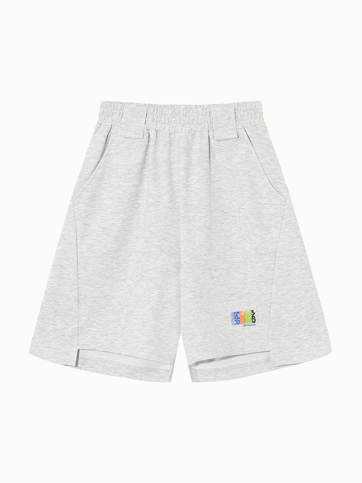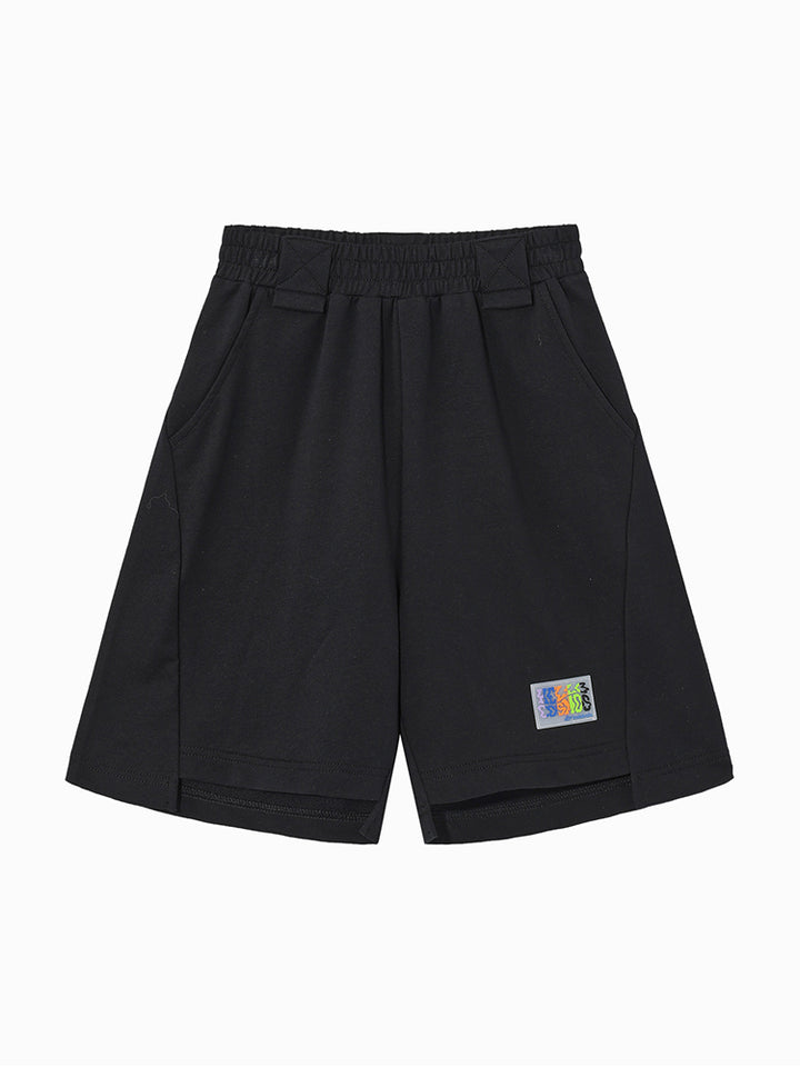 شورت رياضي بنمط ذو لون موحد ورقعة صغيرة من الجهة الأمامية، يأتي بجيوب أمامية وخلفية وخصر مطاطي مريح