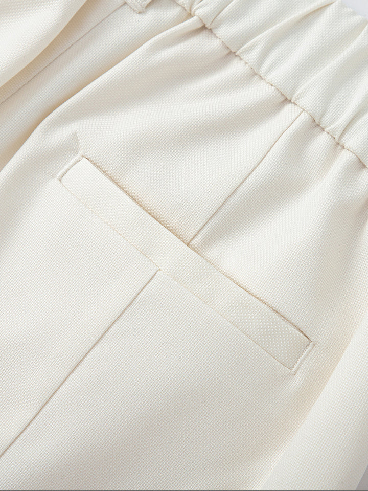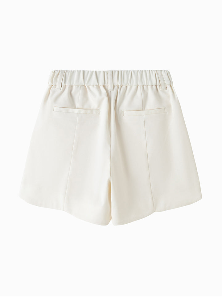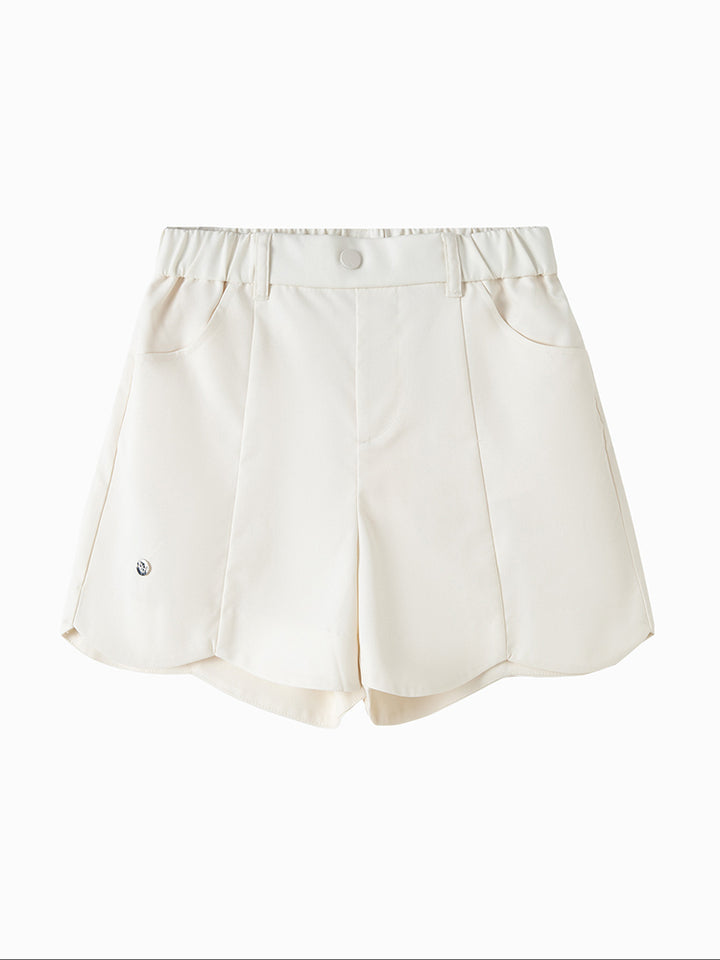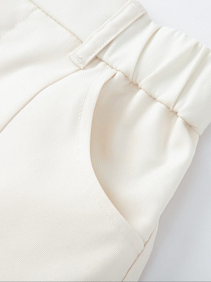 شورت جينز عصري للأطفال بتصميم بلون ثابت وحواف سفلية ملتوية لإضفاء لمسة أنيقة. الخصر المطاطي يضمن ملاءمة مريحة وآمنة، مما يجعله مثاليًا لأيام الصيف غير الرسمية
