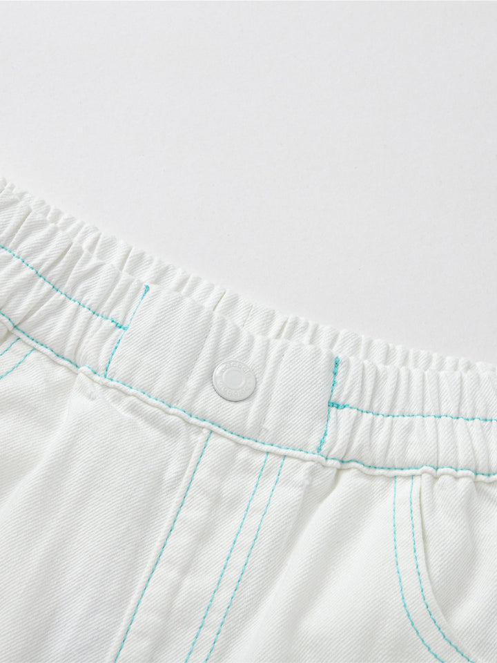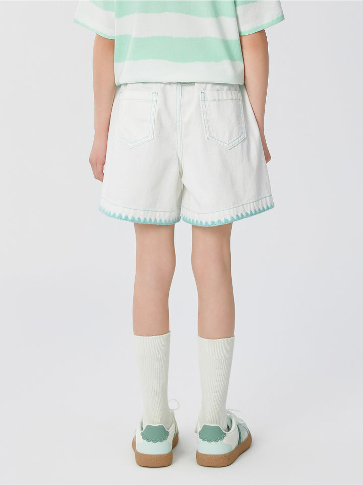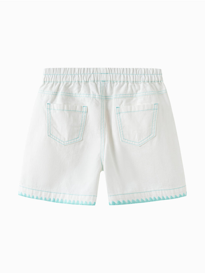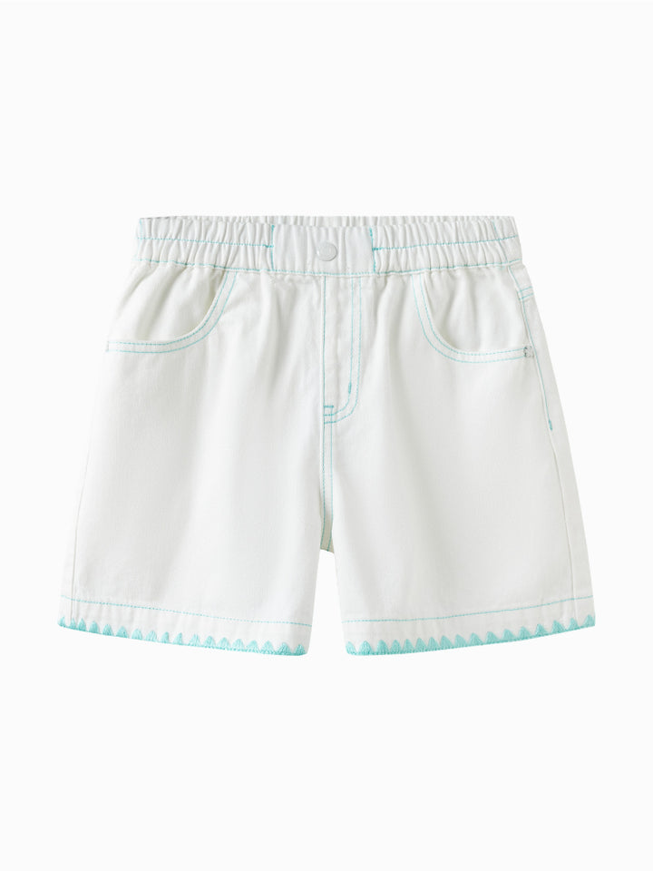 شورت مزين بتطريز - مع جيوب أمامية وخلفية وخصر مطاطي للبنات