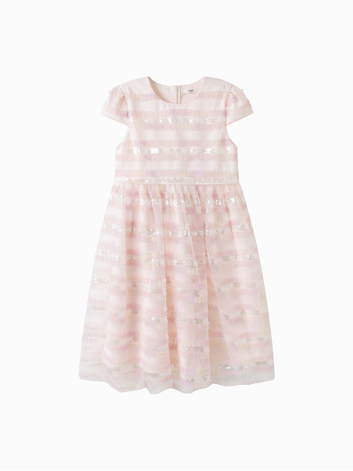 فستان بنمط خطوط تل وترتر للبنات