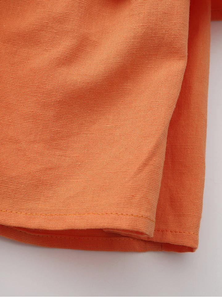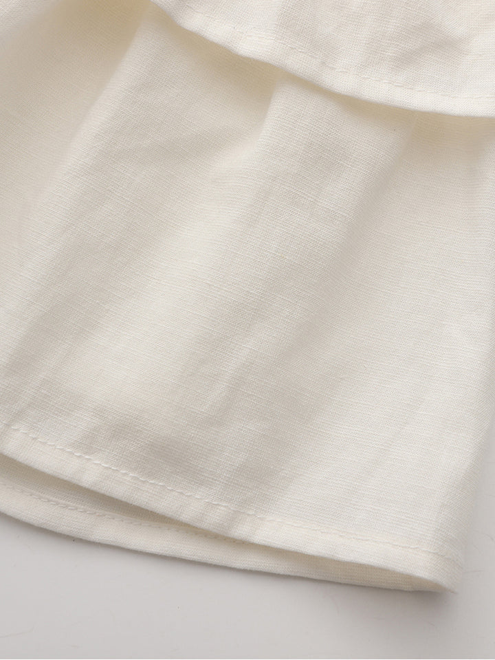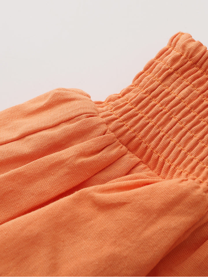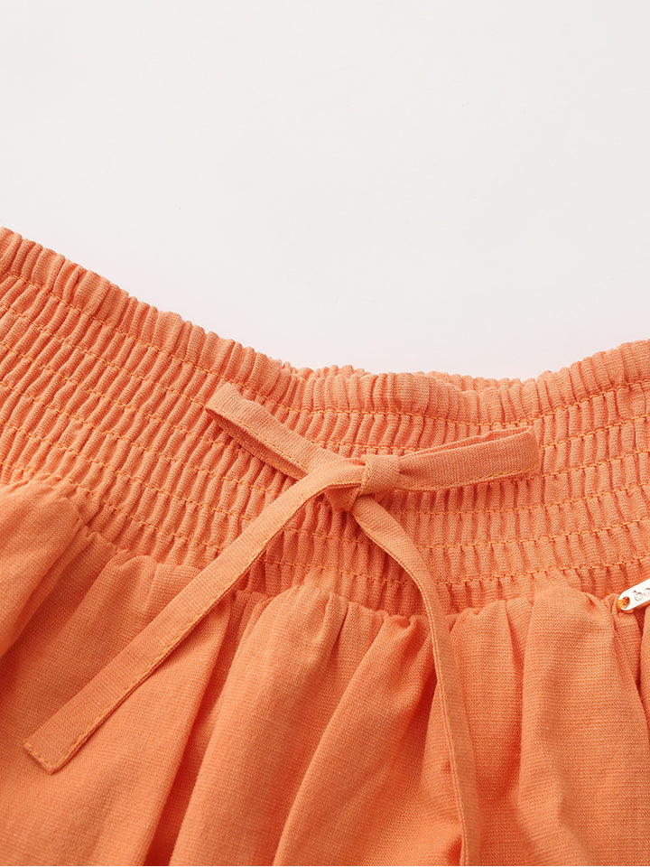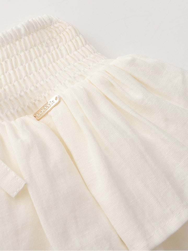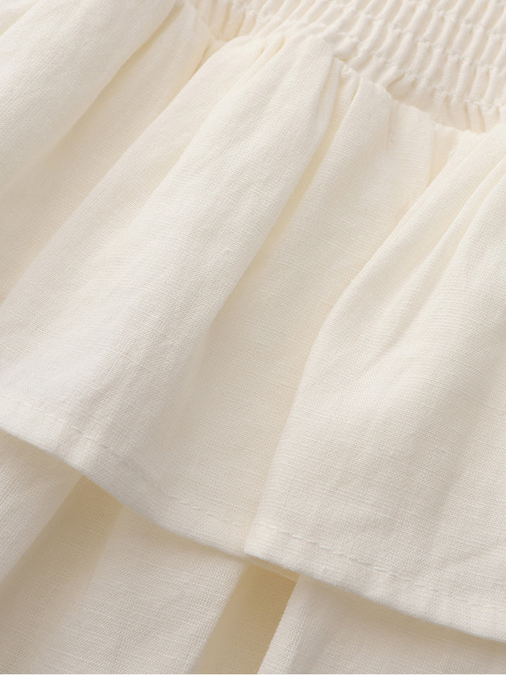 تنورة قصيرة بنمط لون موحد، مزينة بنمط طبقات مكشكشة وتأتي بخصر مطاطي مريح