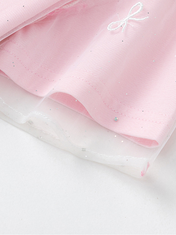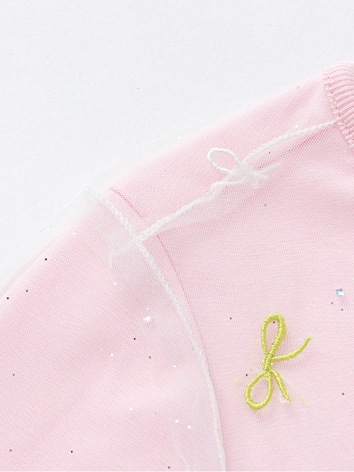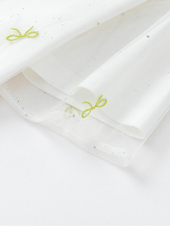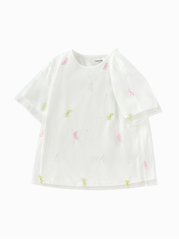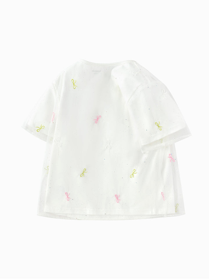 تيشيرت بطبقة تل منقط وتطريز للبنات