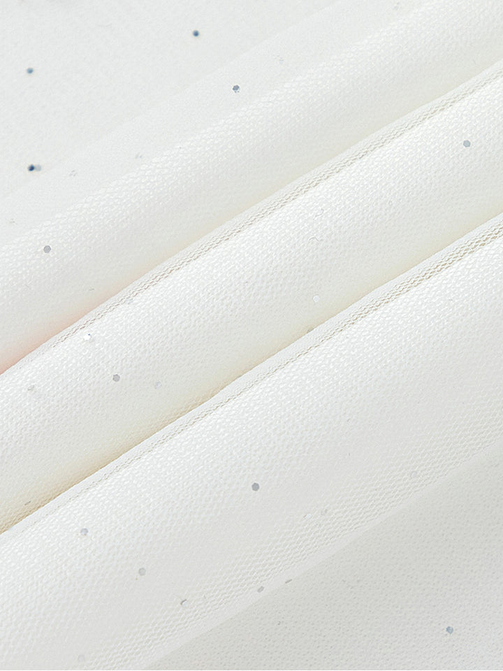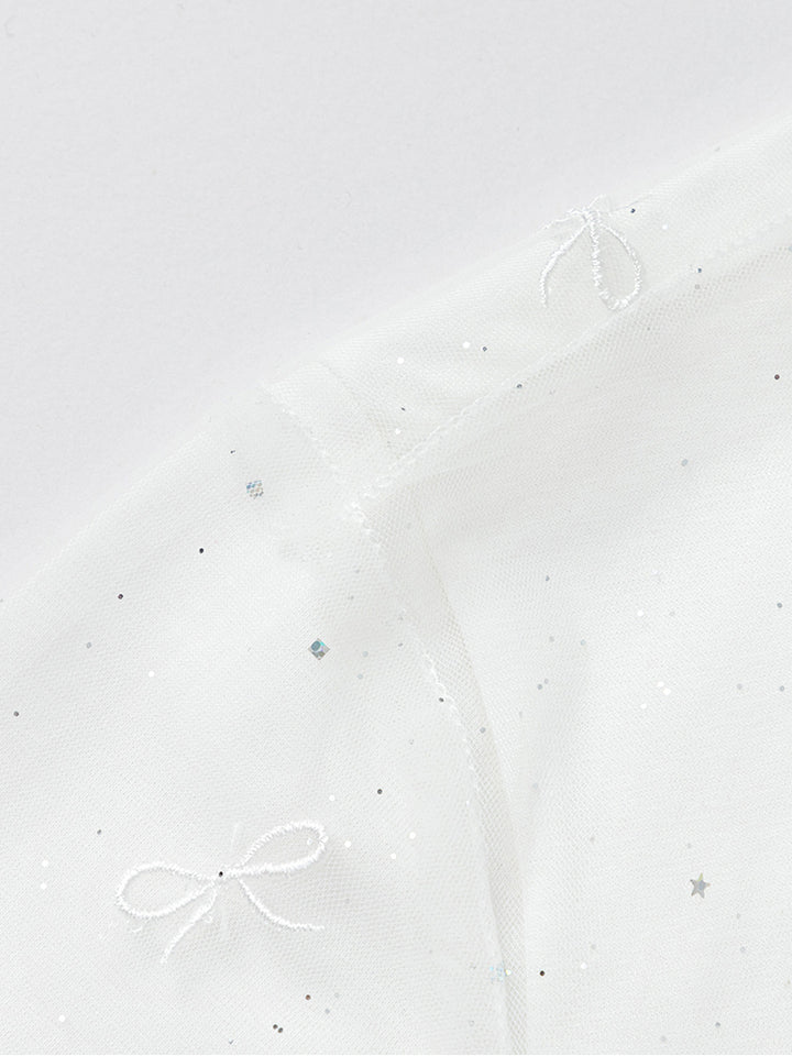 تيشيرت بأكمام قصيرة وطبقة خارجية بخامة تل بالكامل مزينة بطبعات منقطة وتطريز ملون، تأتي بياقة مدورة الشكل