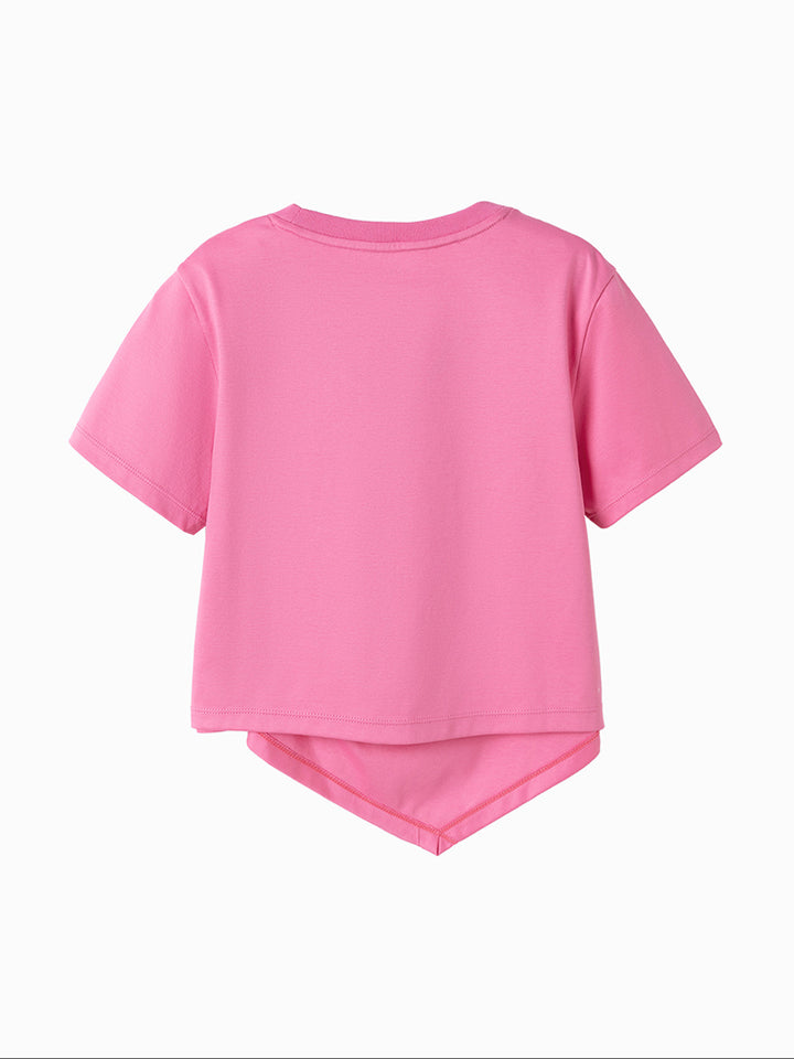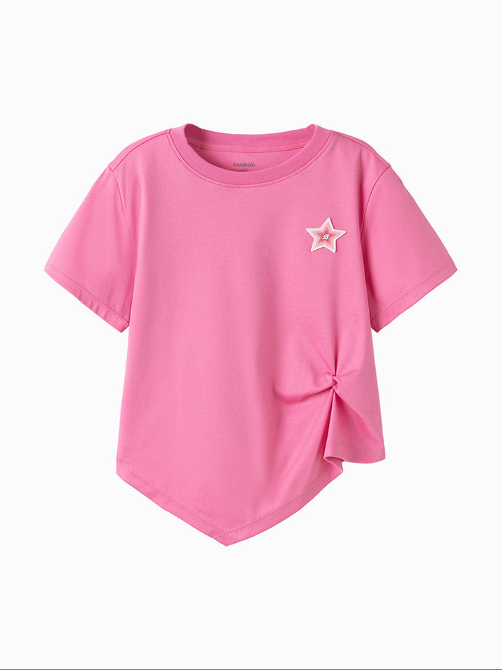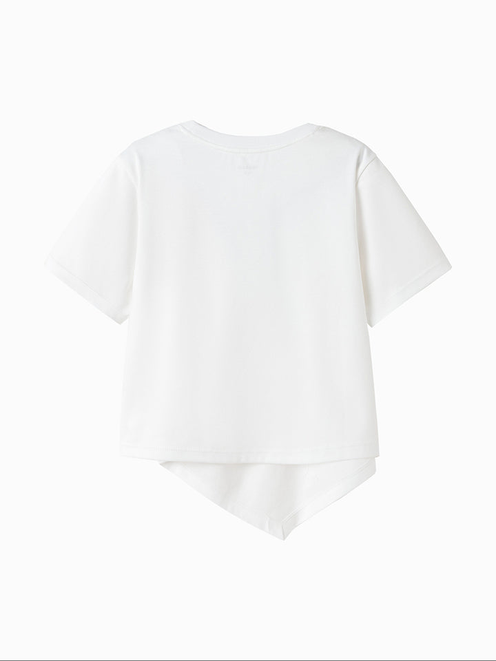 تيشيرت بتصميم غير متماثل وشفرة تطريز أمامية للبنات