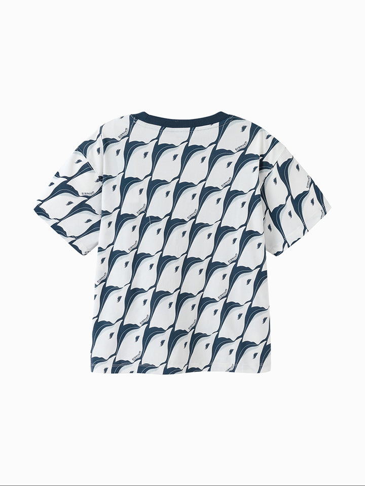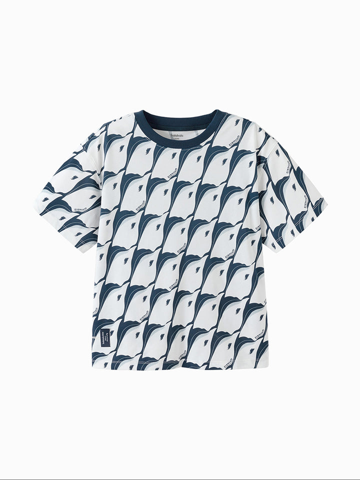 تي شيرت للأطفال يتميز بنقشة مطبوعة بالكامل، بأكمام قصيرة وفتحة رقبة دائرية مريحة. مثالي لإضافة لمسة من الألوان والمرح إلى خزانة ملابسهم. مناسب للارتداء اليومي