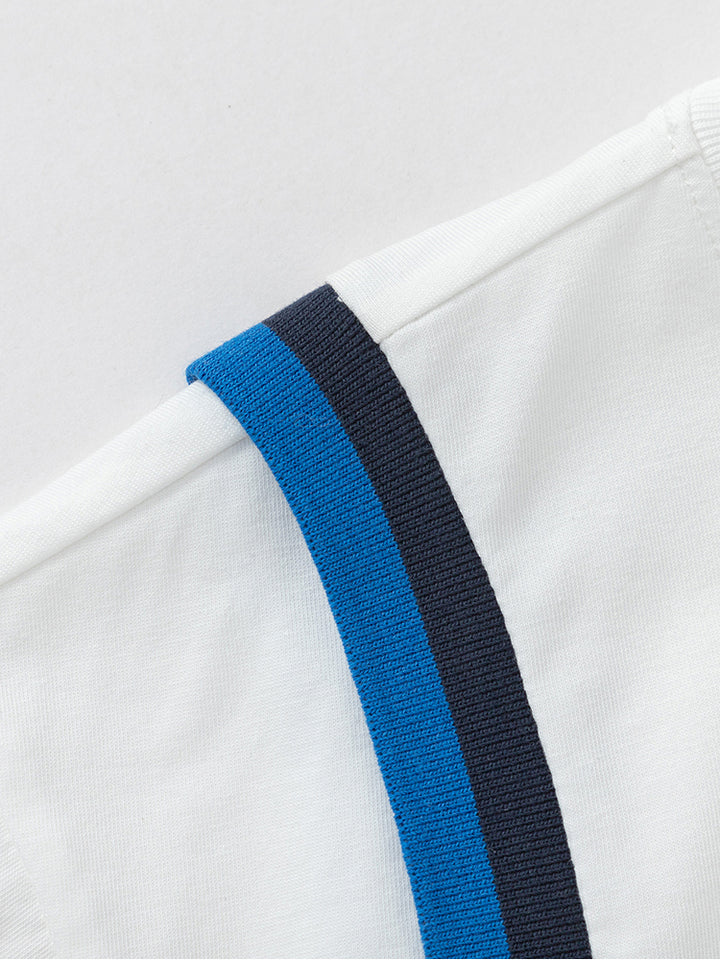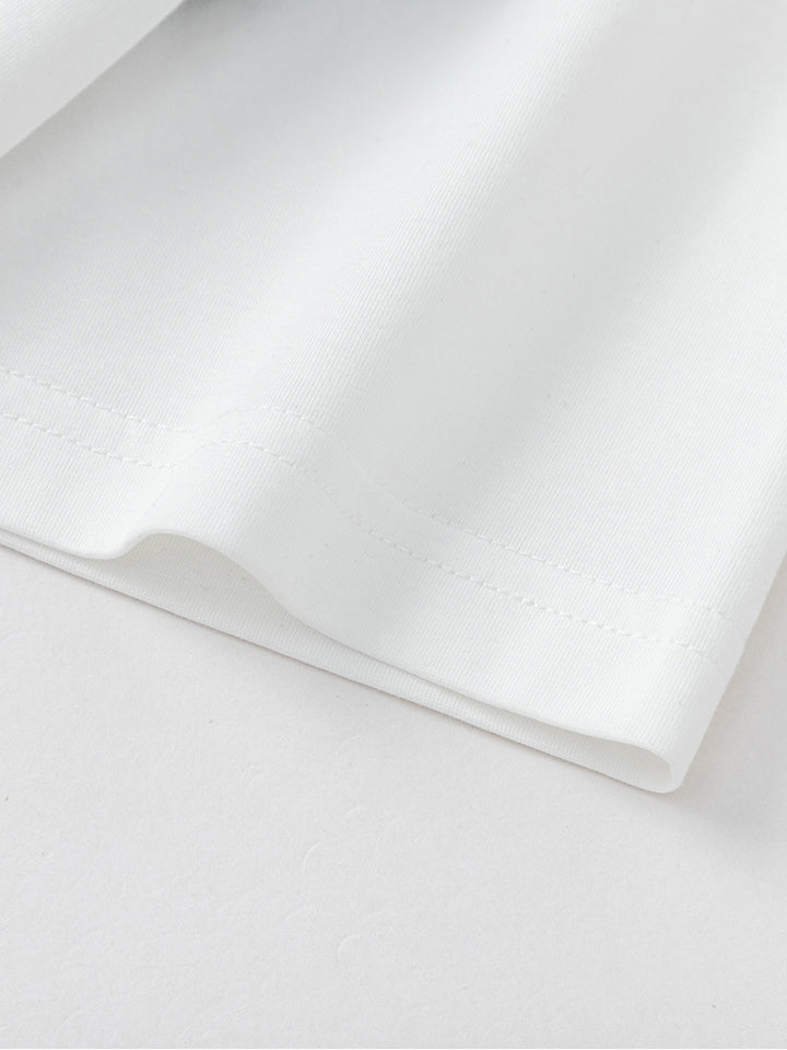 تيشيرت كاجوال بأكمام قصيرة، مزينة بطبعة من الجهة الأمامية وتفاصيل خطوط على الأكمام، يأتي بياقة مدورة الشكل