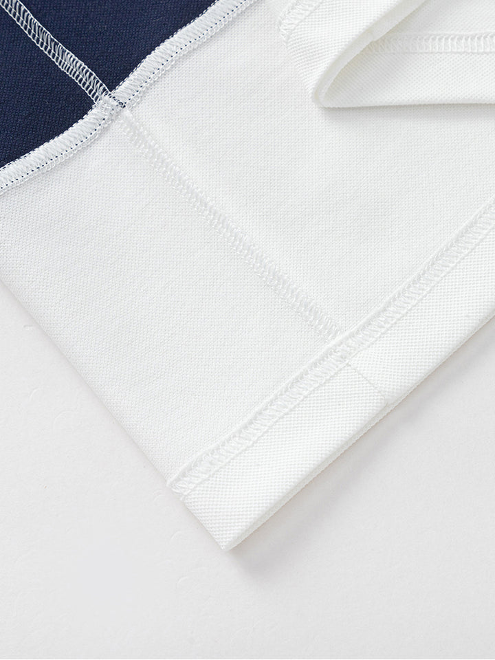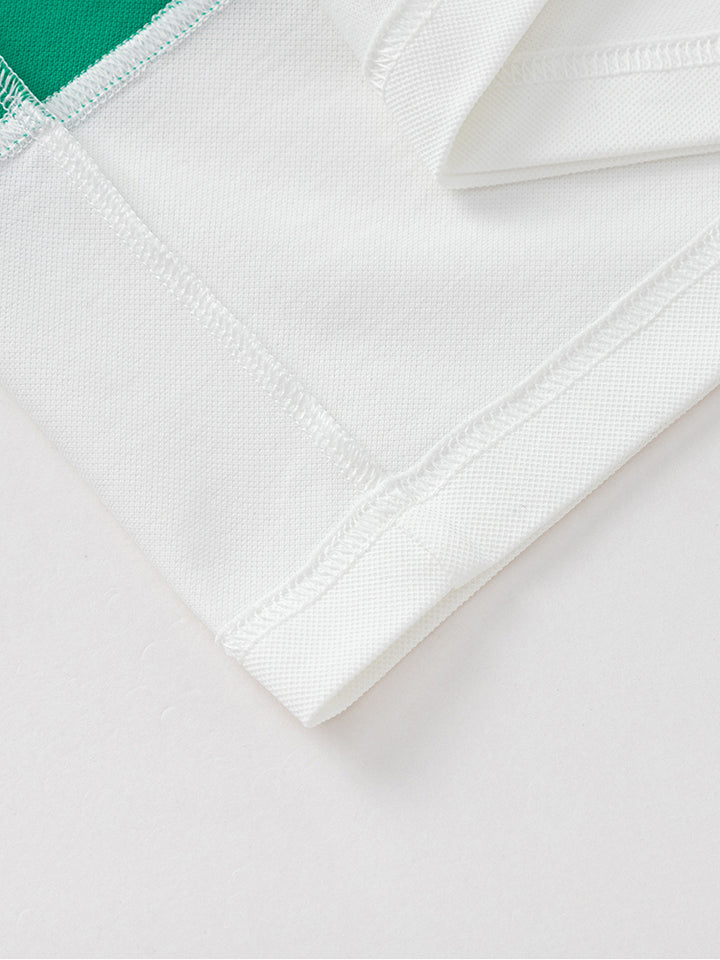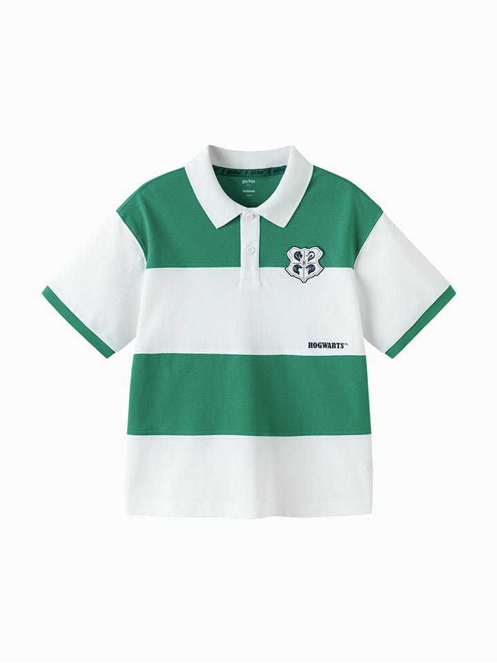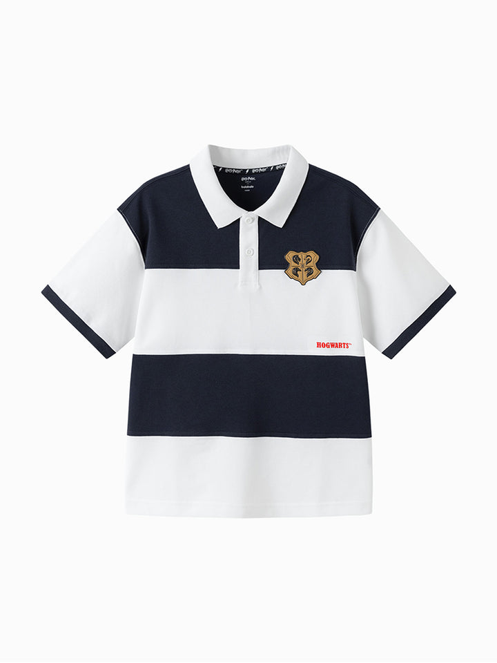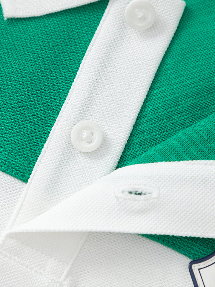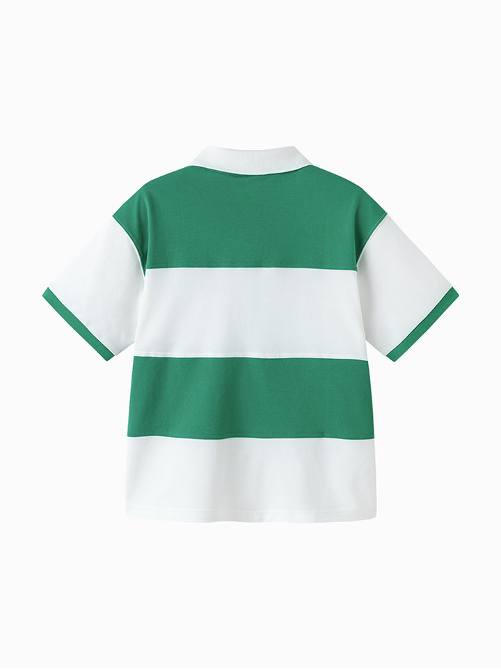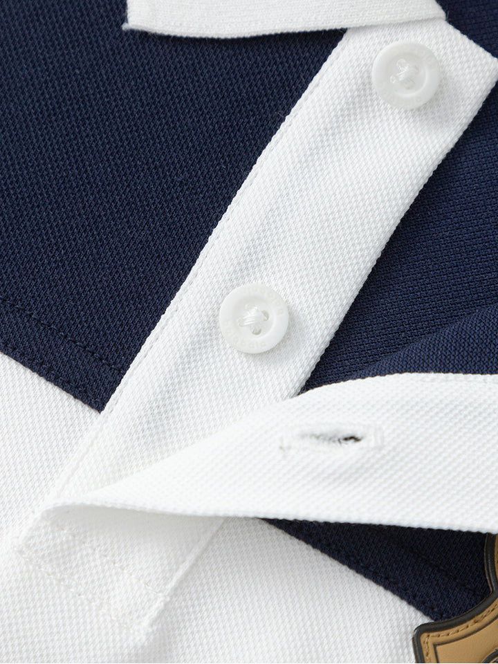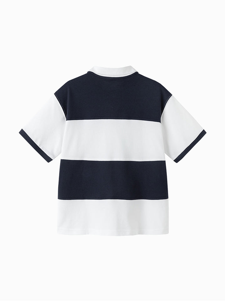 تيشيرت بولو كاجوال بأكمام قصيرة، مزين بنمط مخطط ورقعة صغيرة من الجهة الأمامية، يأتي بأزرار أمامية وبياقة كلاسيكية مطوية