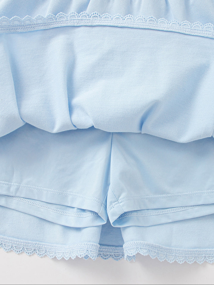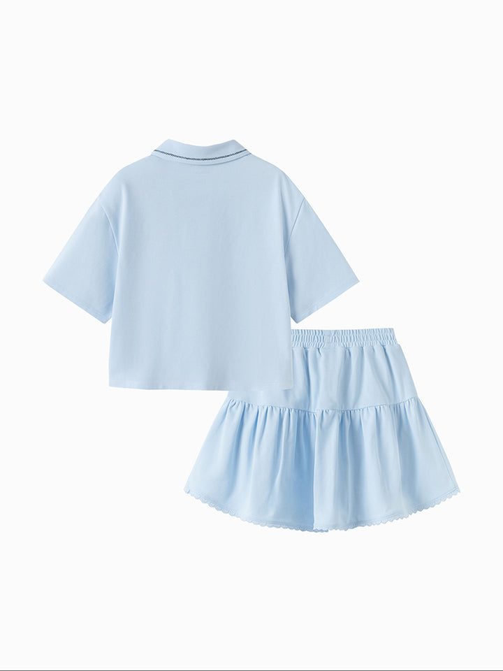 يتميز هذا الطقم المكون من قطعتين بقميص بأكمام قصيرة مع تفاصيل رباط أمامي، وأزرار إغلاق في الأمام وياقة كلاسيكية. يتضمن الطقم أيضًا تنورة بلون موحد مع خصر مرن لراحة وأناقة لا مثيل لها. مثالي للارتداء اليومي أو المناسبات الخاصة، يجمع هذا الطقم بين الأناقة والراحة بشكل رائع