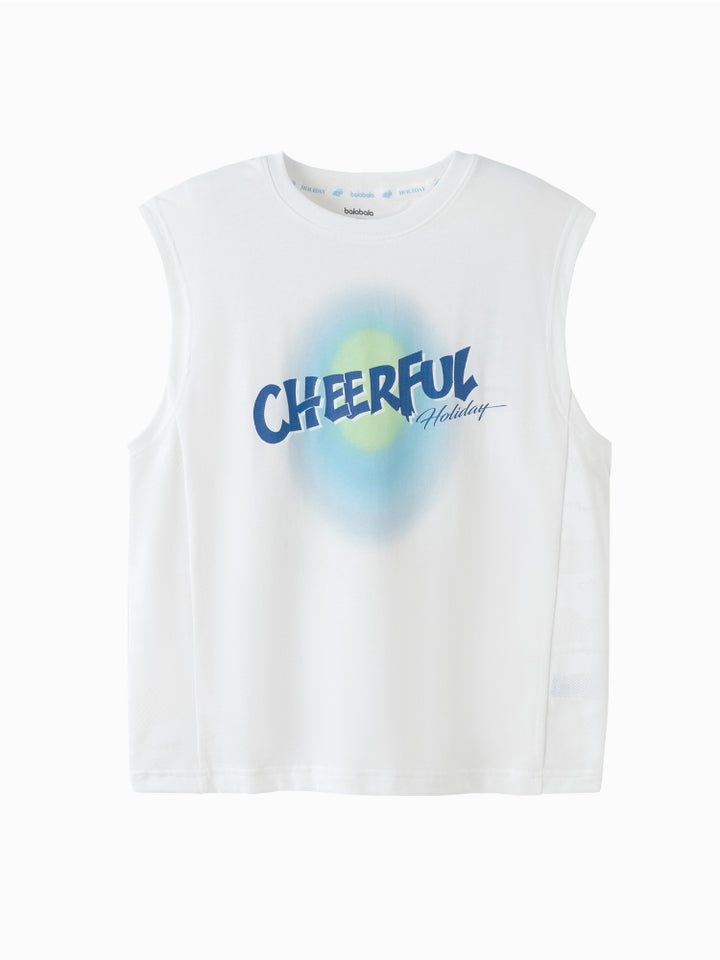 تيشيرت بدون أكمام - بطبعة أمامية وياقة دائرية للأولاد