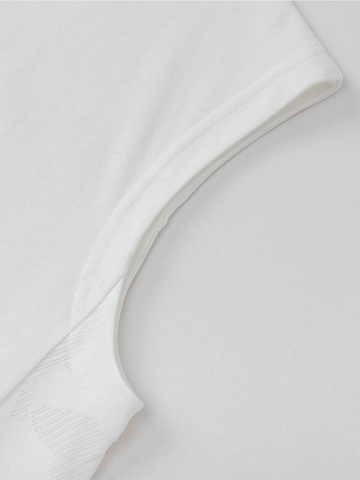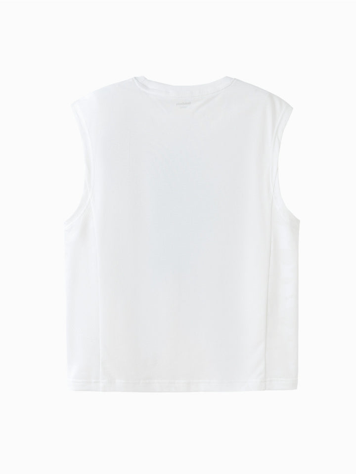 يتميز هذا التيشيرت بدون أكمام بطبعة أنيقة على الجهة الأمامية وتصميم بياقة دائرية كلاسيكية. مريح وسهل التنسيق، مثالي للإطلالات الكاجوال وأيام الطقس الدافئ.
