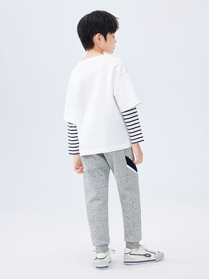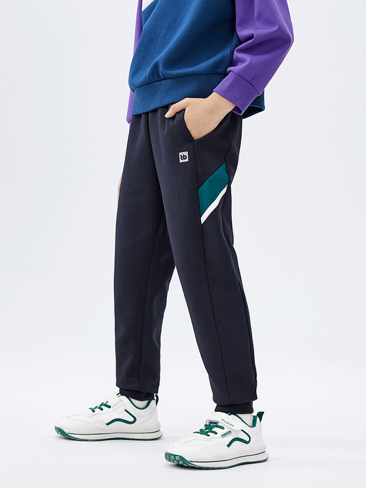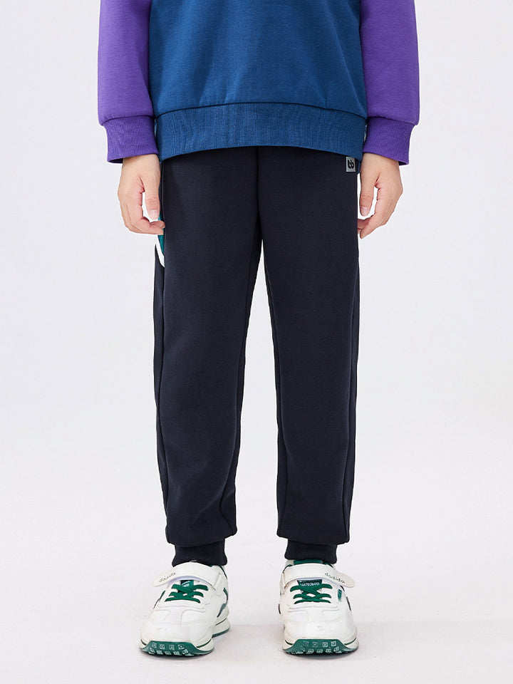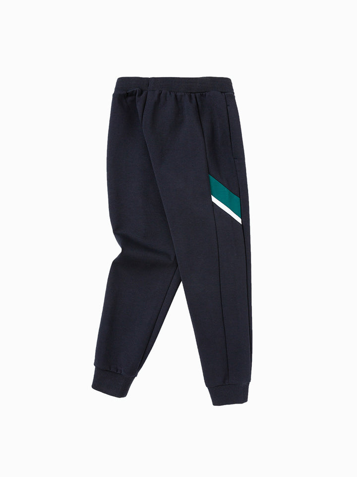 بنطلون رياضي ولادي كاجوال، مزين بتفاصيل خطوط جانبية صغيرة، يأتي بجيوب أمامية، وبخصر مطاطي مريح