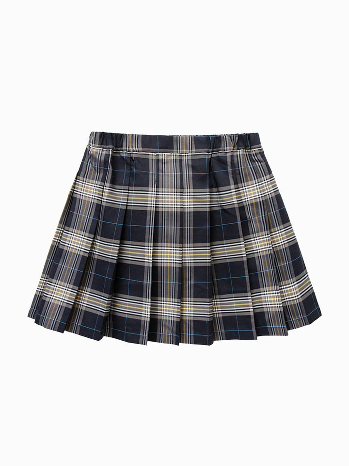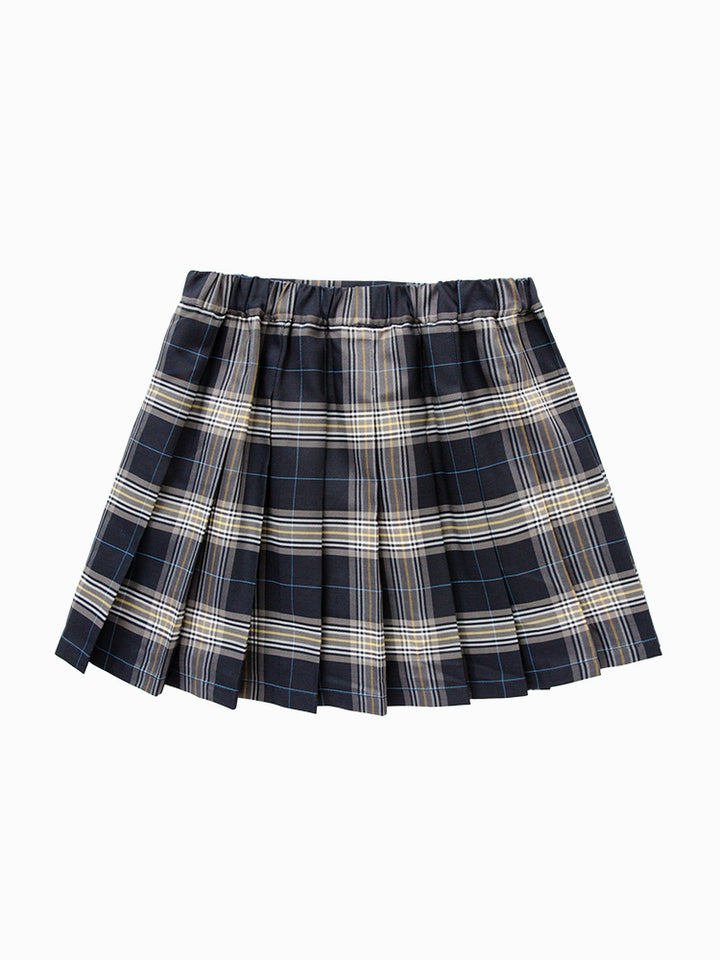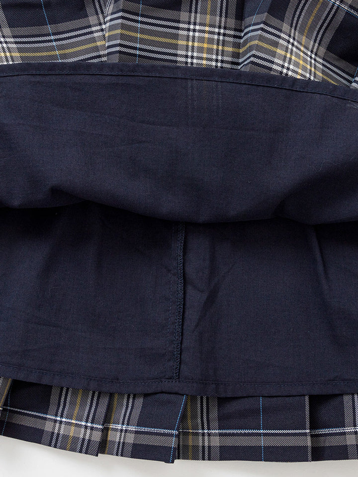تنورة بناتي مزينة بنمط طبعة مربعات على كامل التصميم وتفاصيل كسرات، تأتي بخصر مطاطي مريح مع ربطة ببيونة من نفس الخامة