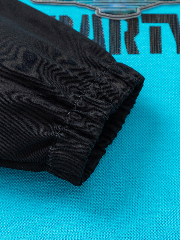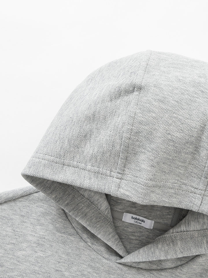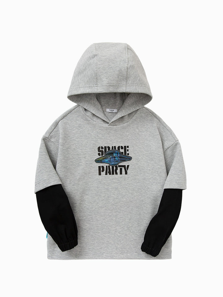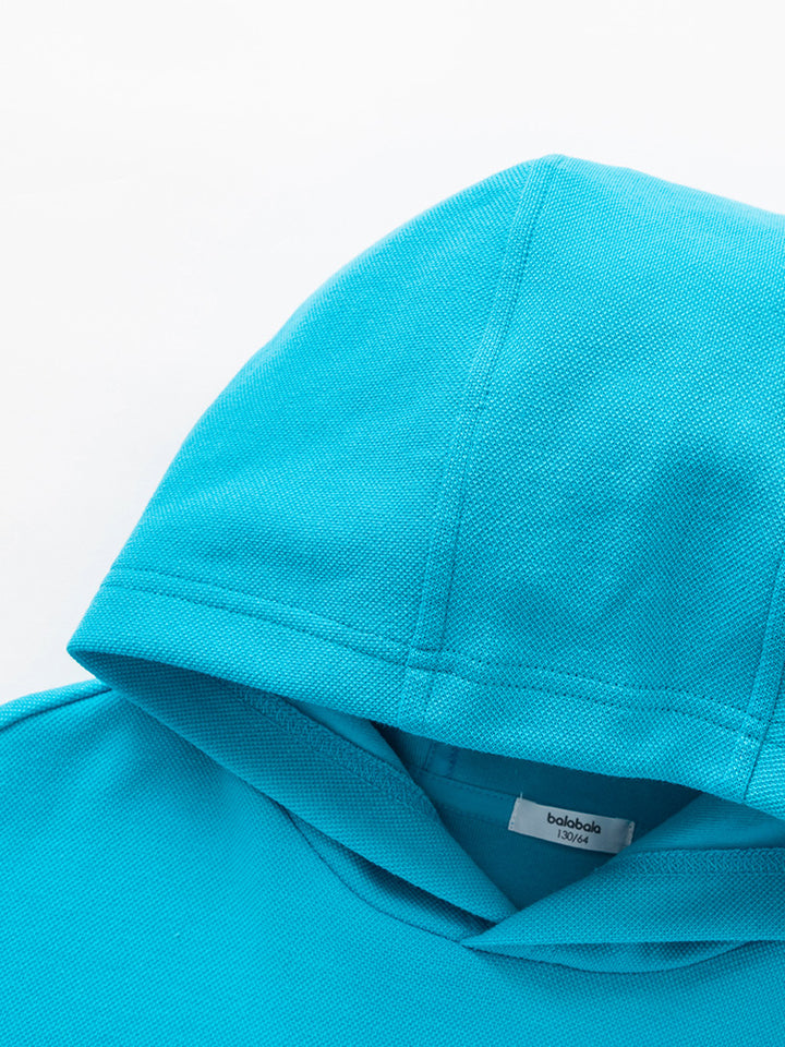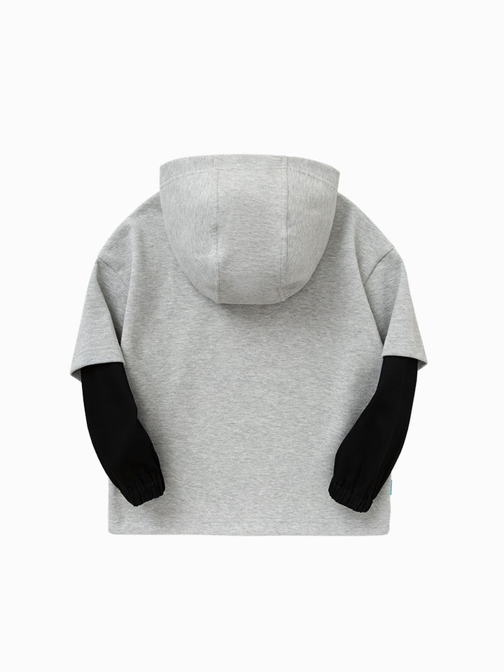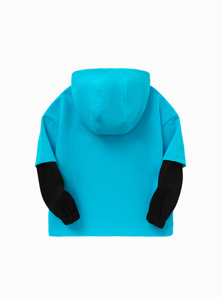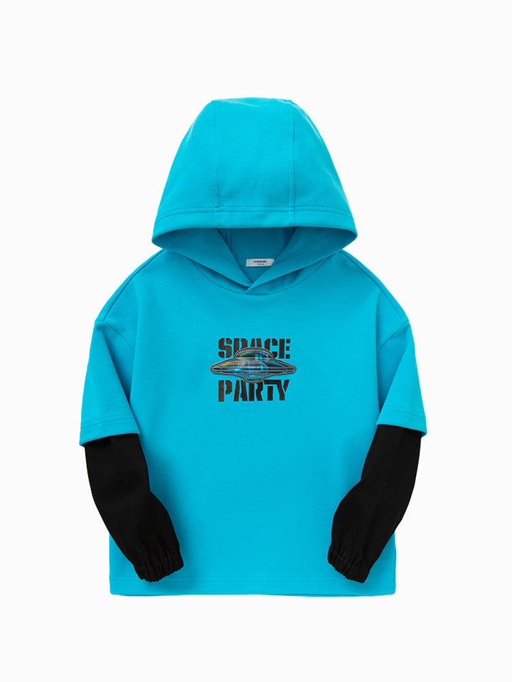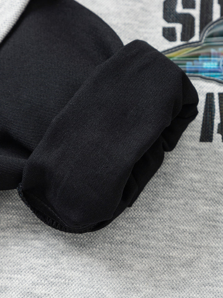 بلوزة سويت شيرت هودي ولادي كاجوال بأكمام طويلة مزينة بطبعة من الجهة الأمامية وأكمام متباينة اللون، تأتي بياقة هودي متصلة