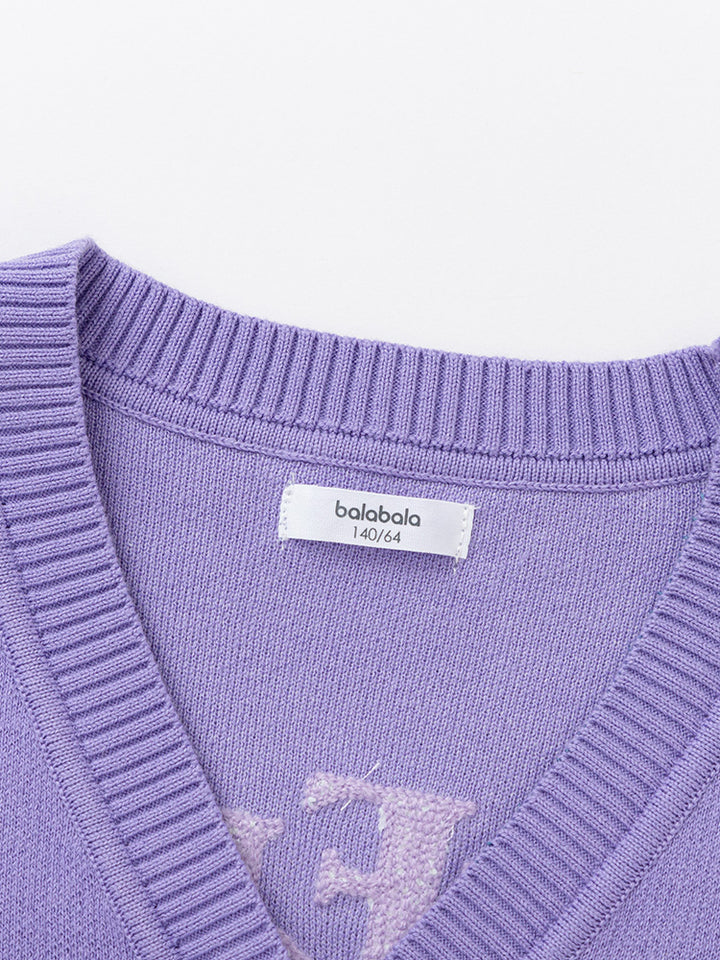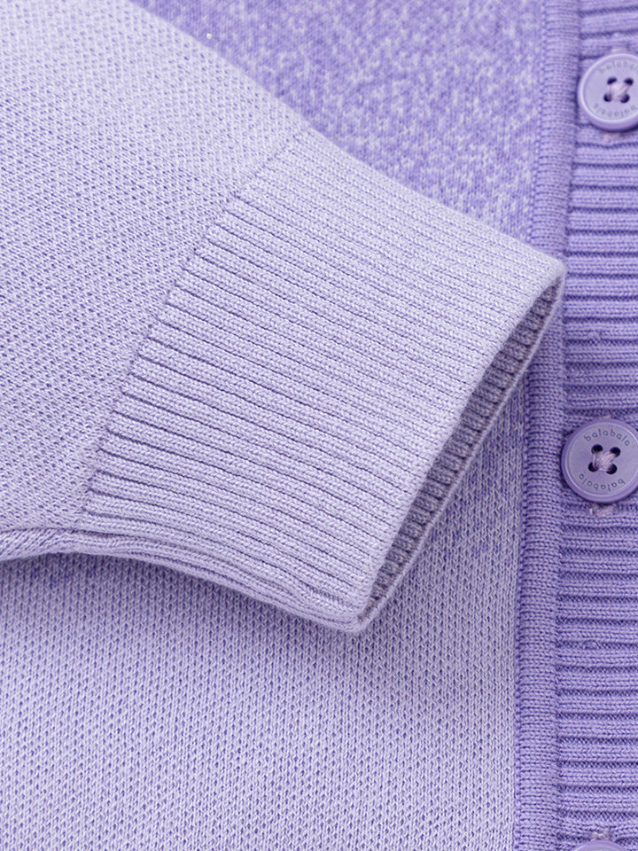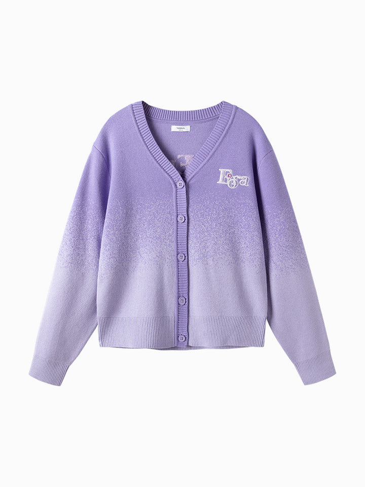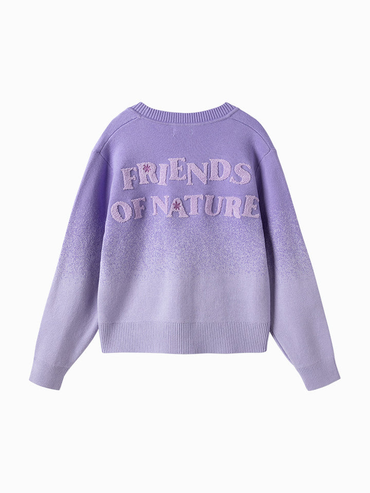 جاكيت كارديغان صوف بأكمام طويلة، مزين بطبعات من الجهتين الأمامية والخلفية، يأتي بأزرار للإغلاق من الجهة الأمامية وبياقة مدورة الشكل