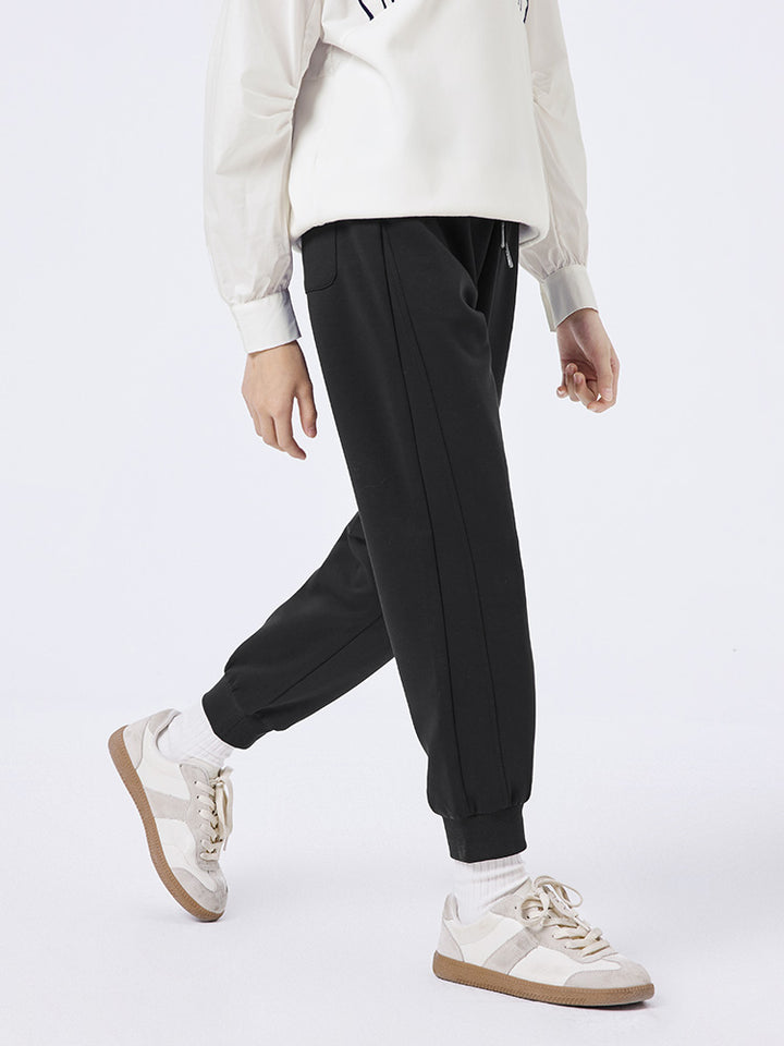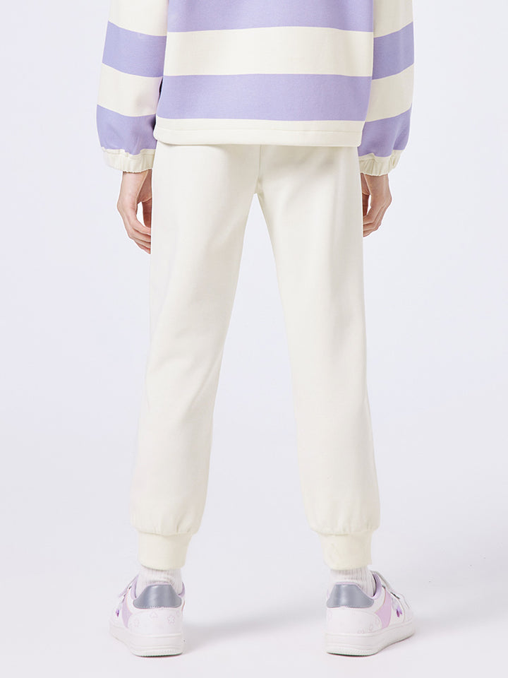 بنطلون رياضي كاجوال مزين بطبعة من الجهة الأمامية، وبجيوب من الجهتين الأمامية والخلفية، خصر مطاطي مرن ومريح وبرباط قابل للتعديل على الخصر