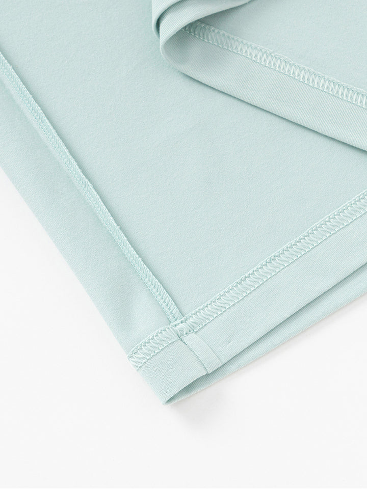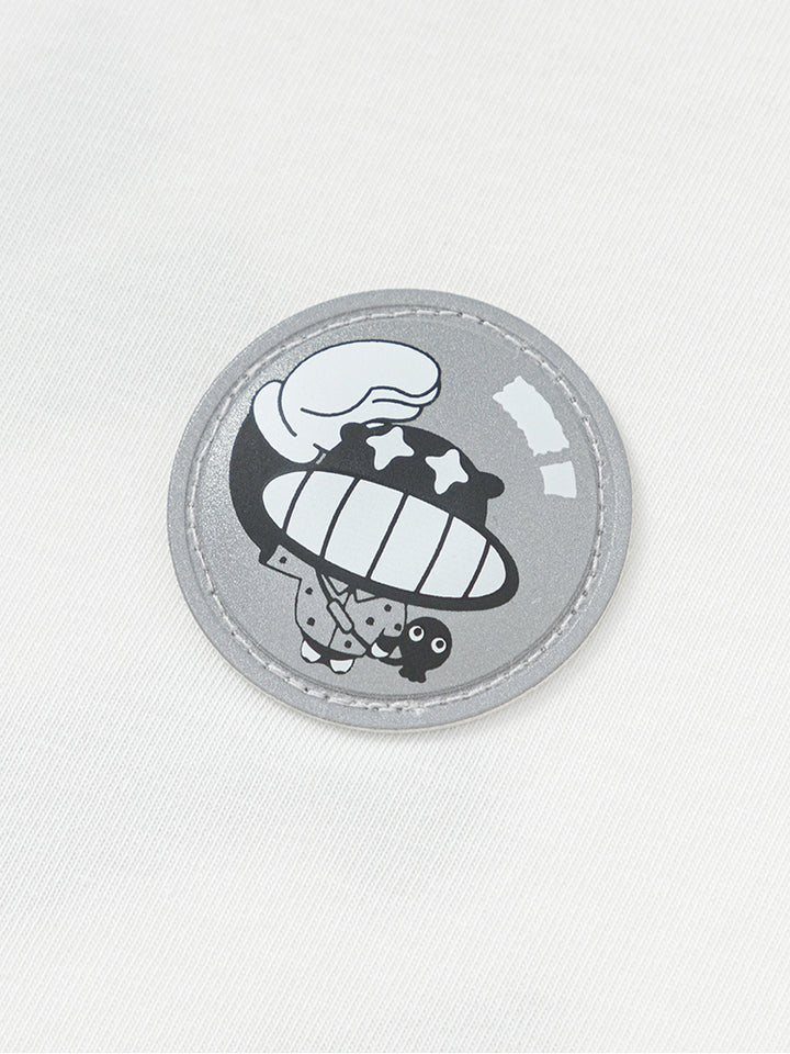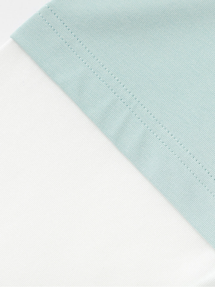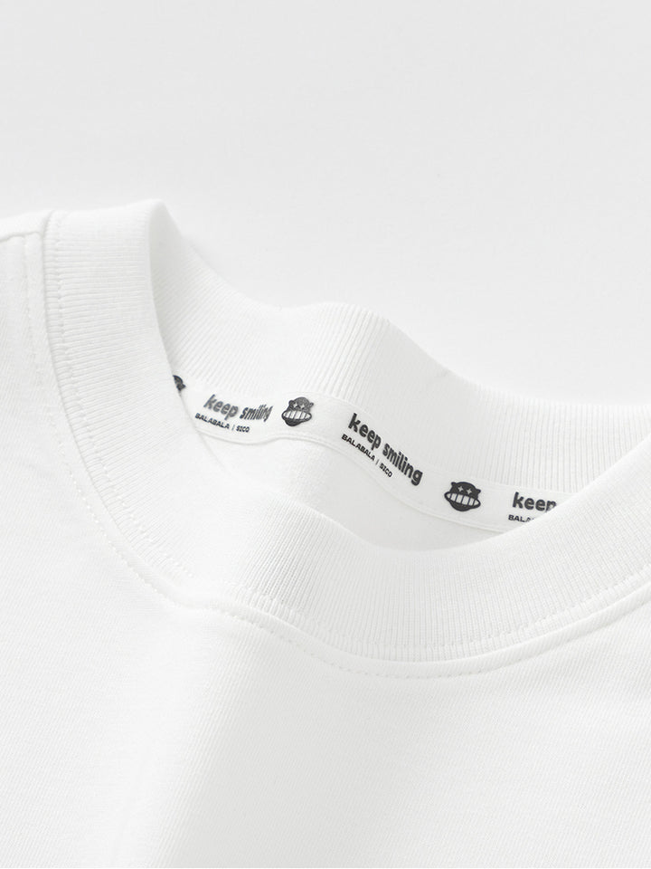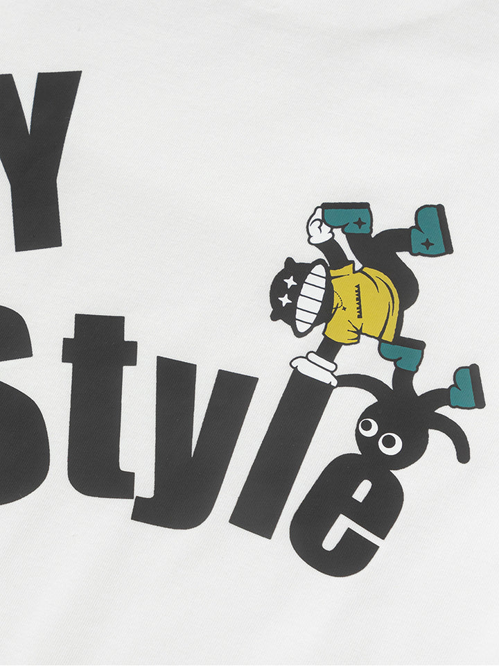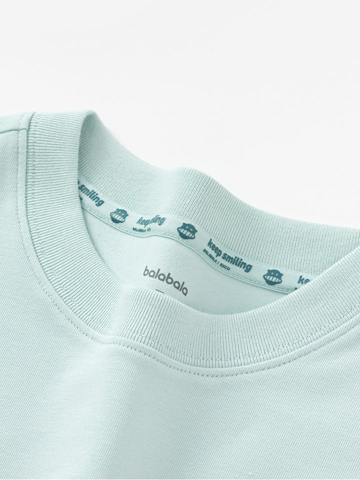 تيشيرت ولادي بأكمام طويلة مزينة بطبعة خلفية وأكمام متباينة اللون يأتي بياقة مدورة الشكل
