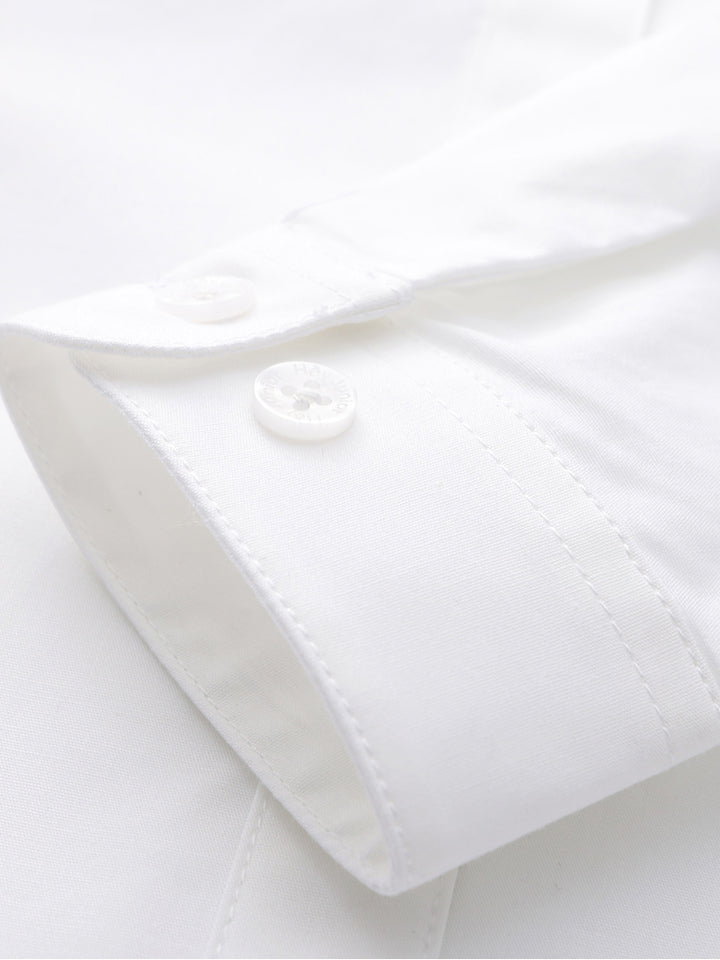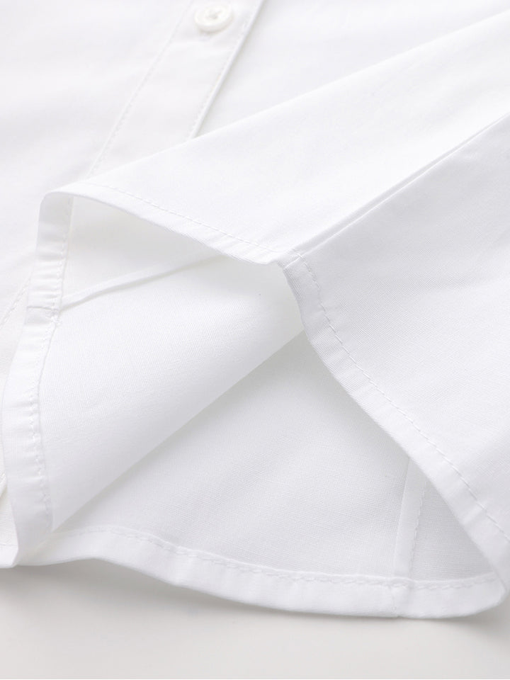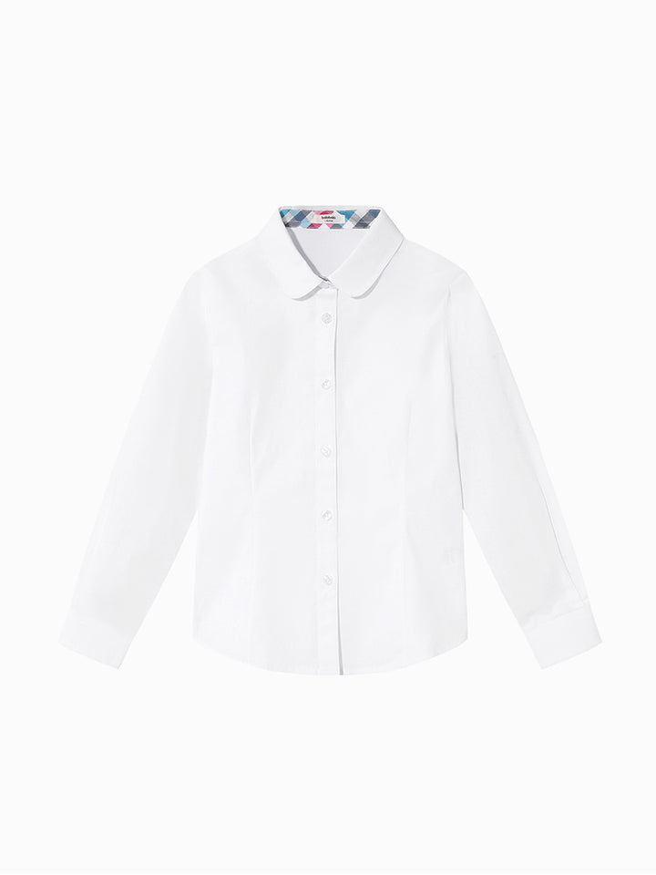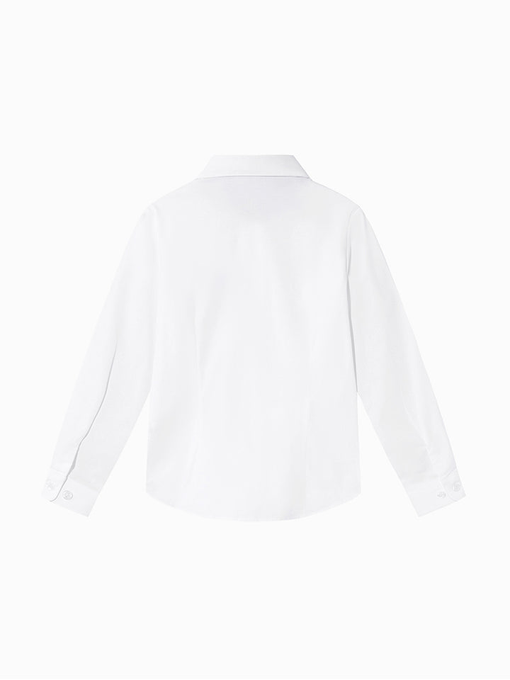 قميص بناتي كاجوال بأكمام طويلة وبلون موحد سادة، يأتي بأزرار للإغلاق من الجهة الأمامية وبياقة كلاسيكية عادية